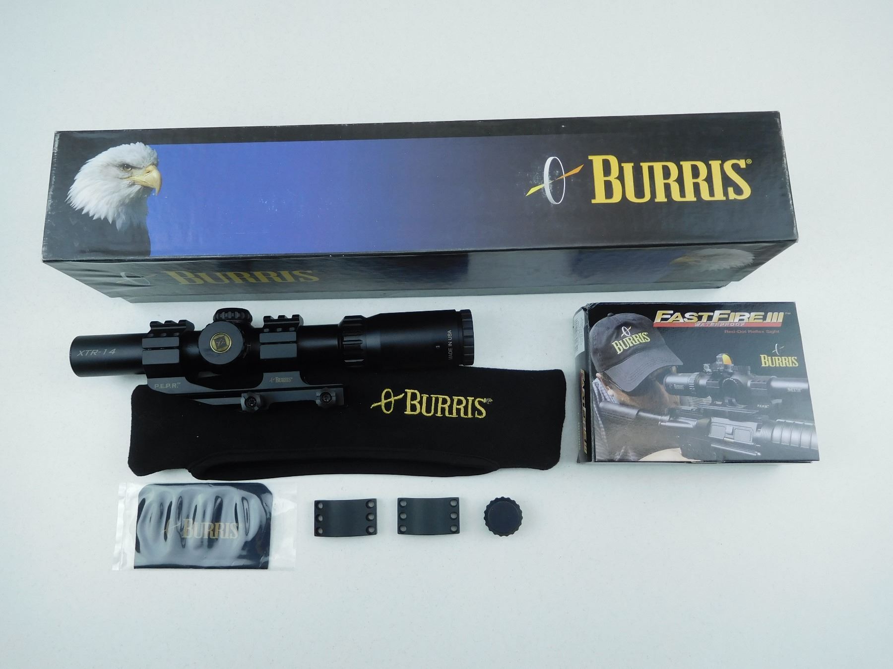 SCOPE IS 1X - 4X - 24MMM, XTR BALLISTIC 5.56, MATTE BLACK WITH TACTICAL KNOBS AND MOUNT, BURRIS RE-DOT REFLEX SIGHT IS ALSO IN THIS LOT, HOWEVER NOT ALL COMPONETS ARE IN THE BOX, BUT MAYBE ALREADY MOUNTED ON SCOPE. PLEASE SEE PHOTO FOR WHAT IS INCLUDED. RETAIL TAG FOR THE SCOPE WAS $1049.00 APPEARS AS NEW TO VERY GENTLY USED