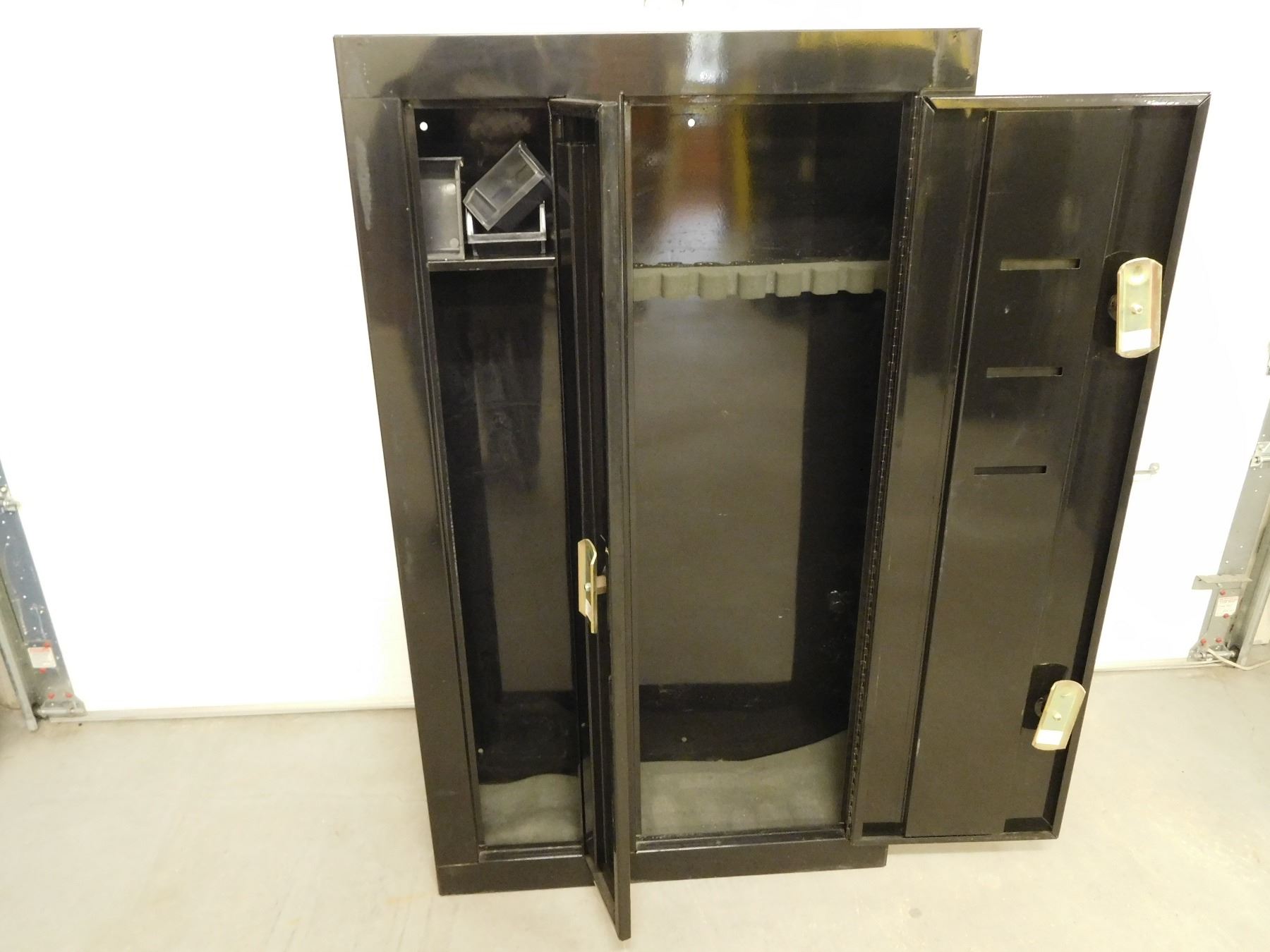 APPROX 55" X 32" X 10" COMES WITH KEYS, BLACK, NO SHIPPING ON THIS ITEM