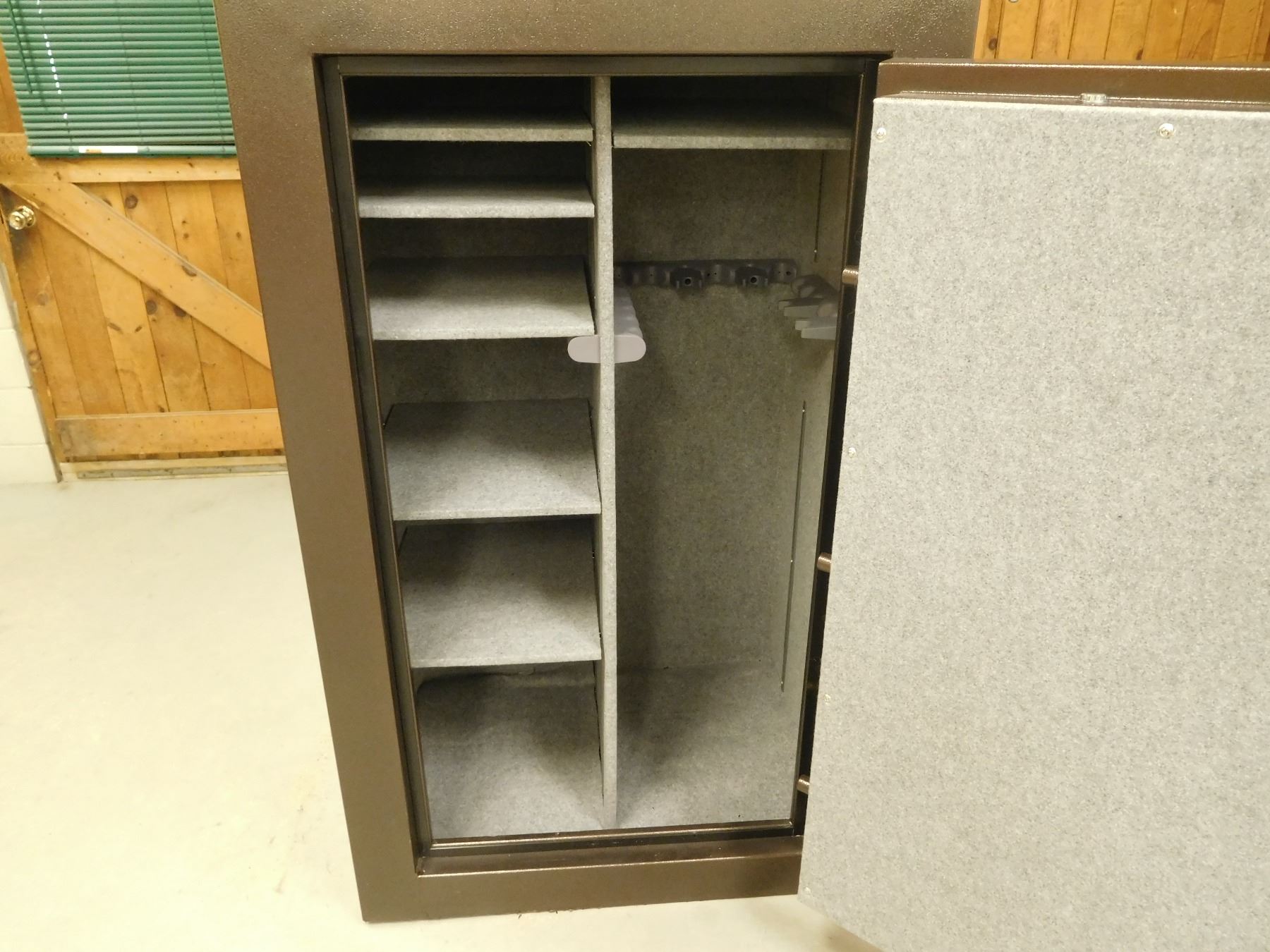APPROX 59" X 35" X 27" , COMES WITH COMBINATION, BROWN IN COLOUR, NO SHIPPING ON THIS ITEM
