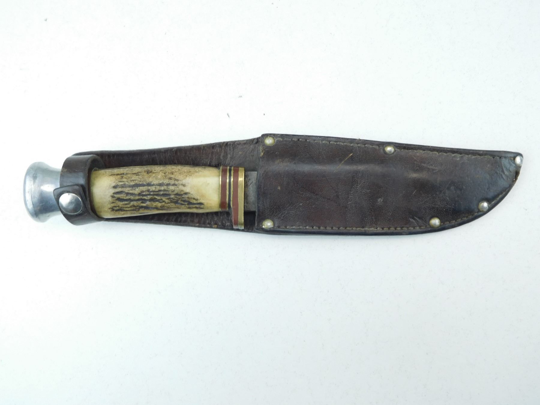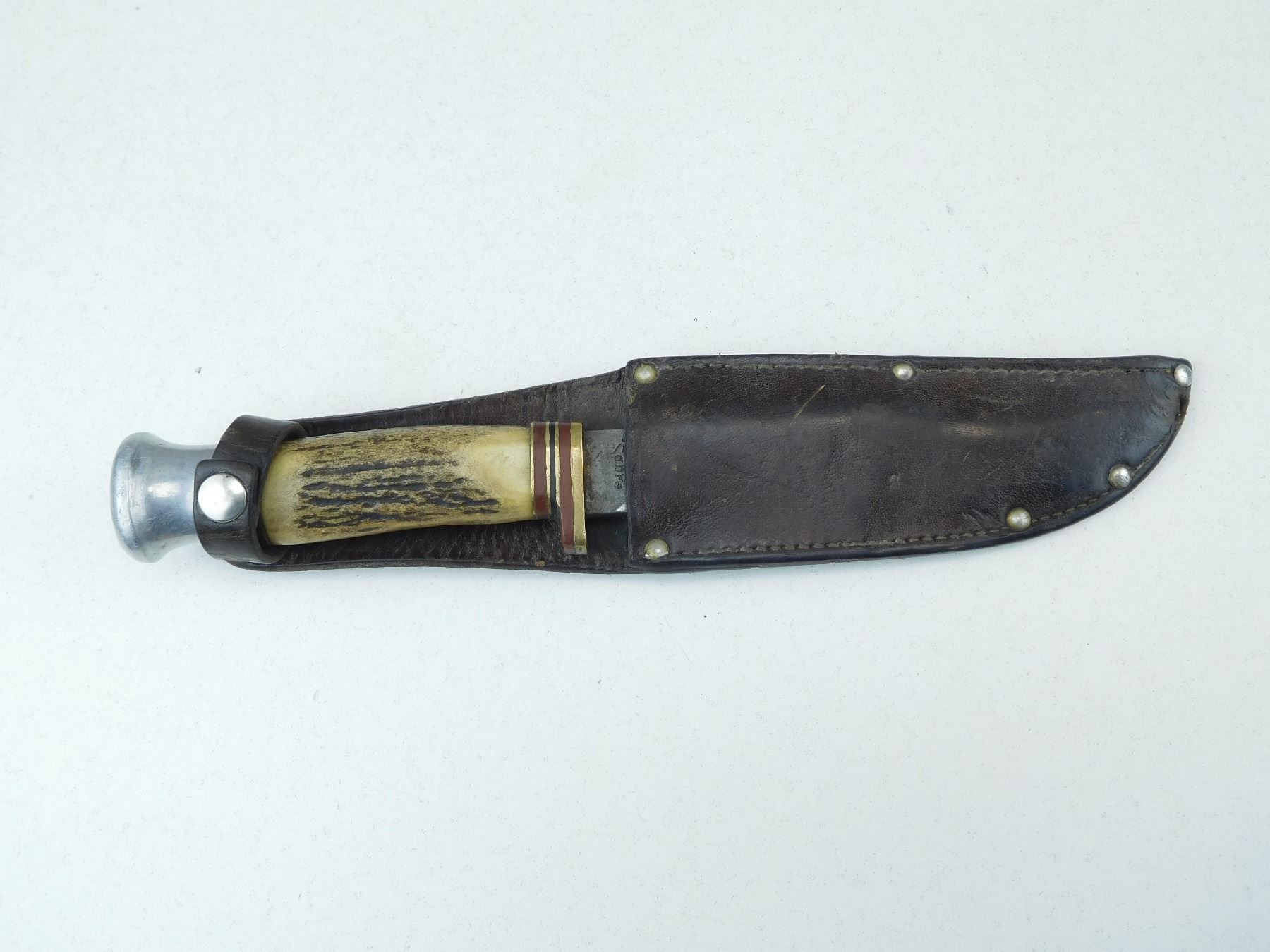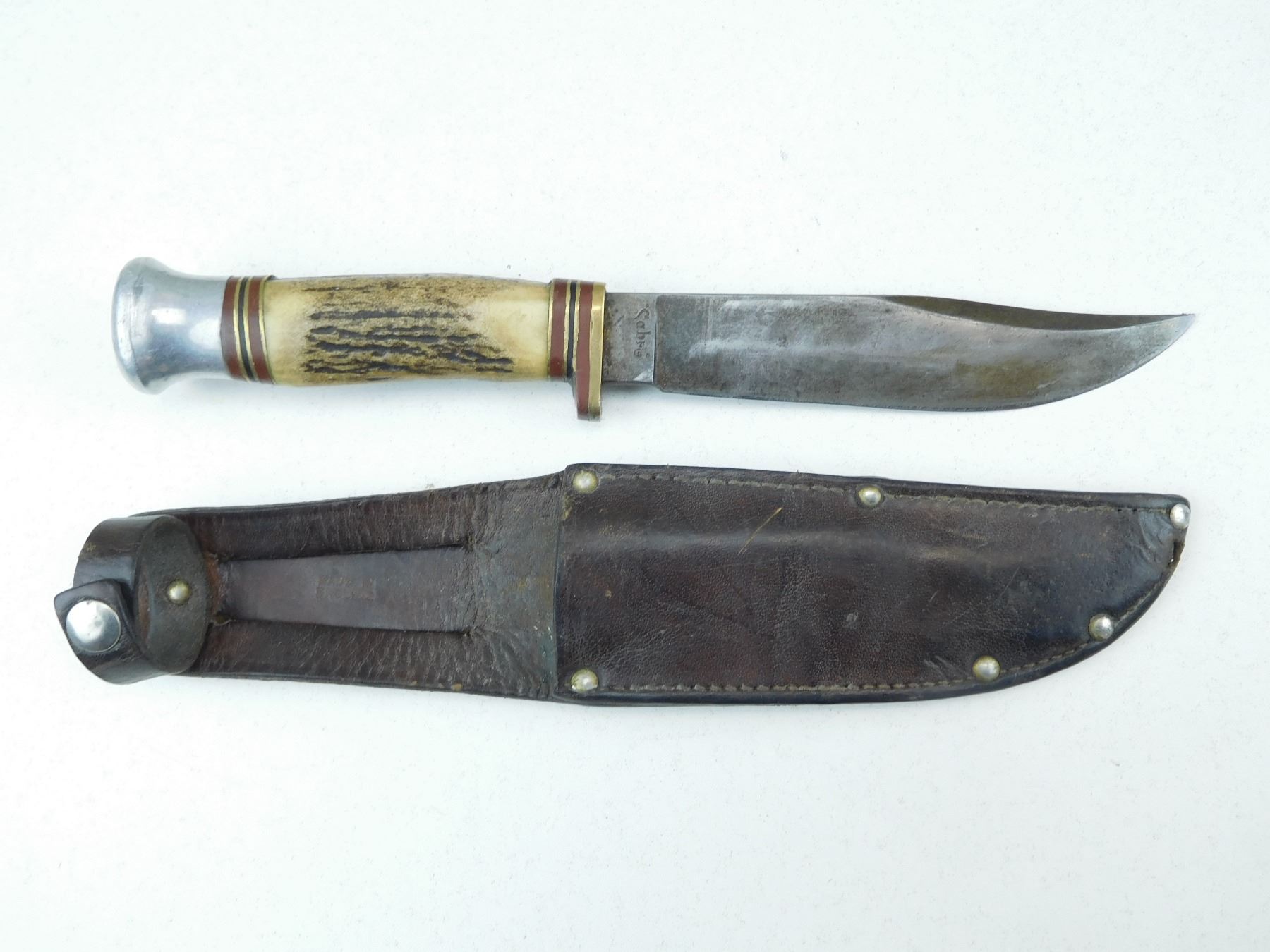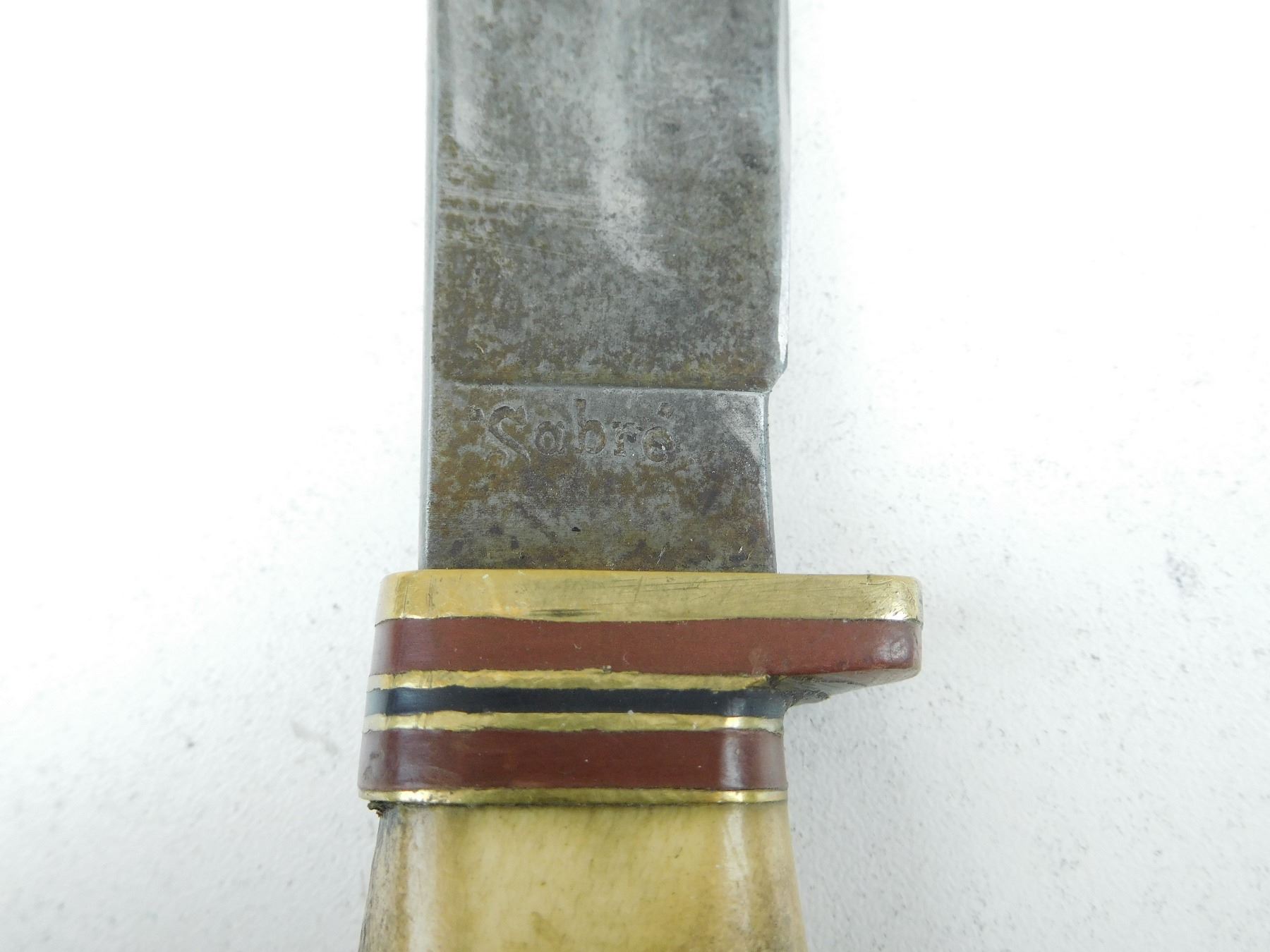 KNIFE IS STAMPED SABRE, SHEFIELD ENGLAND, LEATHER SHEATH