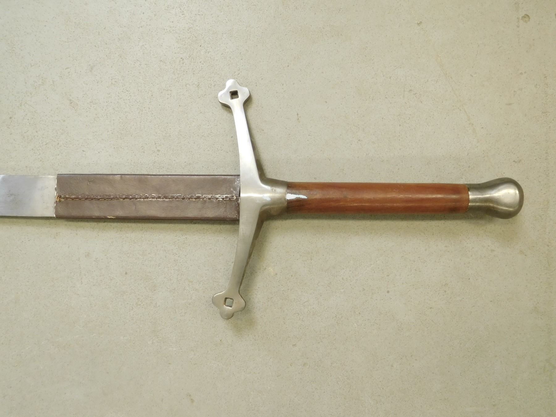 THERE IS LEATHER ON PART OF THE BLADE AND A WOOD AND STEEL HANDLE