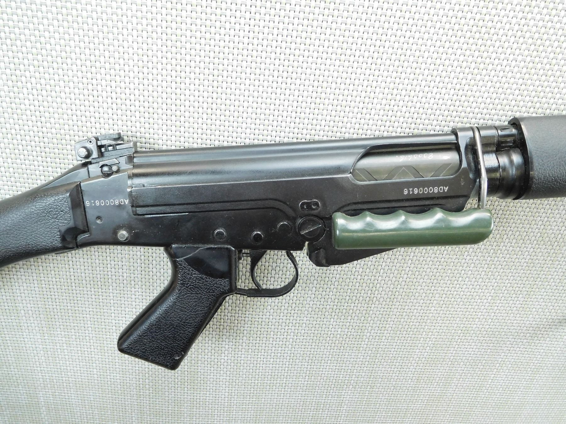 DOES NOT COME WITH A MAGAZINE, REQUIRES 12.5 PROHIBITED STATUS TO BUY, COMBINED FLASH HIDER, MUZZLE BREAK AND BAYONET LUG, BARLEY CORN FRONT SIGHT AND PEEP ADJUSTABLE REAR SIGHT, SYNTHETIC FOREND AND BUTT STOCK, SLING SWIVEL LOOPS, COMES WITH ORIGINAL CARRY HANDLE, BORE IS GOOD, SHOWS VERY LITTLE HANDLING MARKS , SERIAL # AD8000616 , ACTION: SEMI AUTOMATIC RIFLE , BARREL LENGTH: 22" , CONDITION: 8/10 , STOCK # P2028 , CLASS: CANADIAN PROHIBITED CLASS