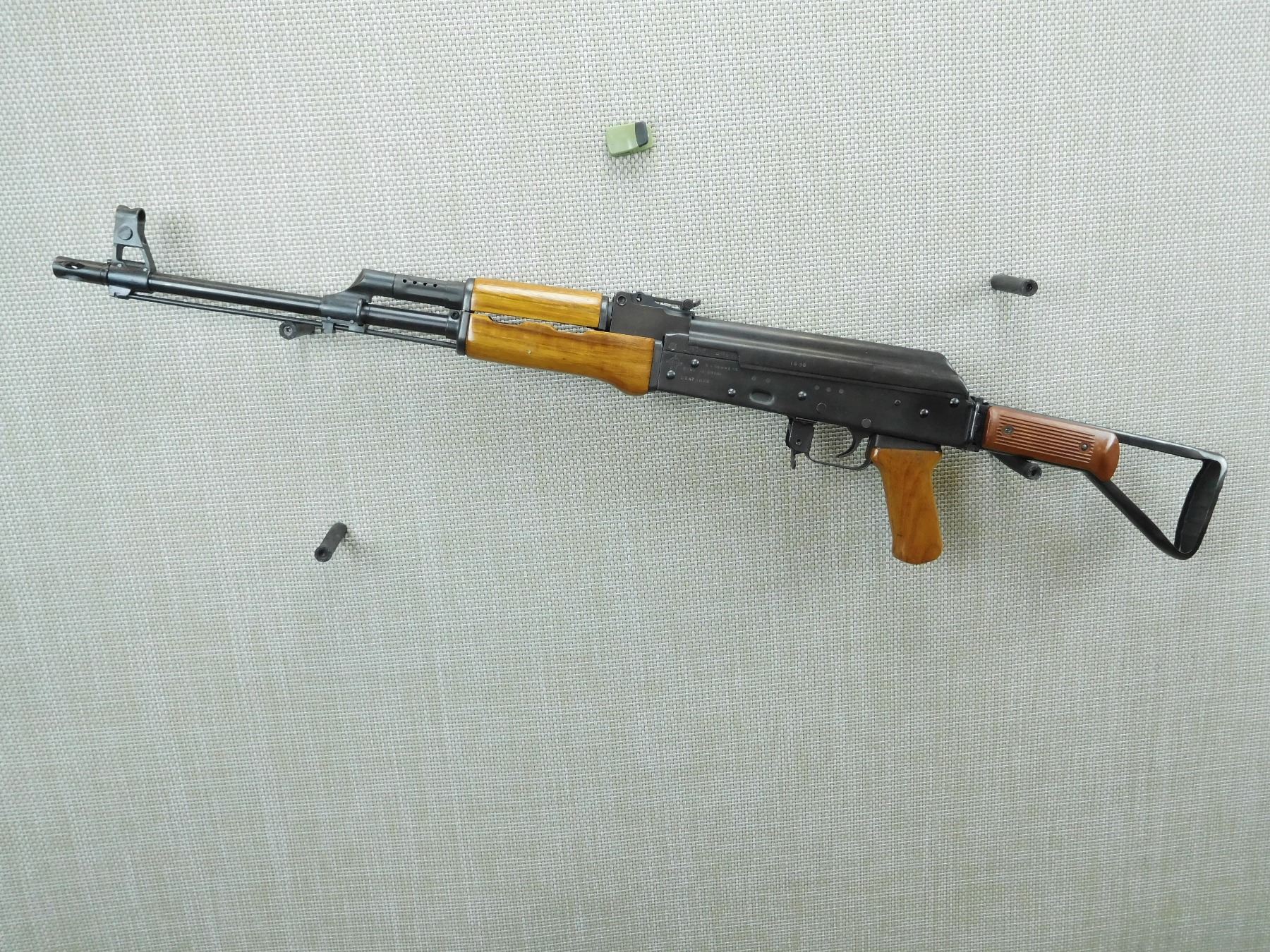 NO MAGAZINE, COMES WITH BOX, CANVAS SLING AND INSTRUCTION MANUAL, REQUIRES 12.5 PROHIBITED STATUS TO PURCHASE, BIRD CAGE FLASH HIDER, HOODED FRONT SIGHT AND FULLY ADJUSTABLE APERTURE REAR SIGHT, GREEN SYNTHETIC FURNITURE, SLING SWIVELS, SHOWS SOME HANDLING MARKS, BORE IS GOOD, MADE IN FACTORY 66 IN CHINA , RAISED HOODED FRONT AND FULLY ADJUSTABLE REAR SIGHT, FOLDING BUTT STOCK, FULL PISTOL GRIP, DARK BORE,ORIGINAL CLEANING ROD, STAMPED RECEIVER, SLING SWIVEL LOOPS, SHOWS SOME HANDLING MARKS , SERIAL # 411606 , ACTION: SEMI AUTOMATIC RIFLE , BARREL LENGTH: 18 1/2" , CONDITION: 8/10 , STOCK # P2029 , CLASS: CANADIAN PROHIBITED CLASS