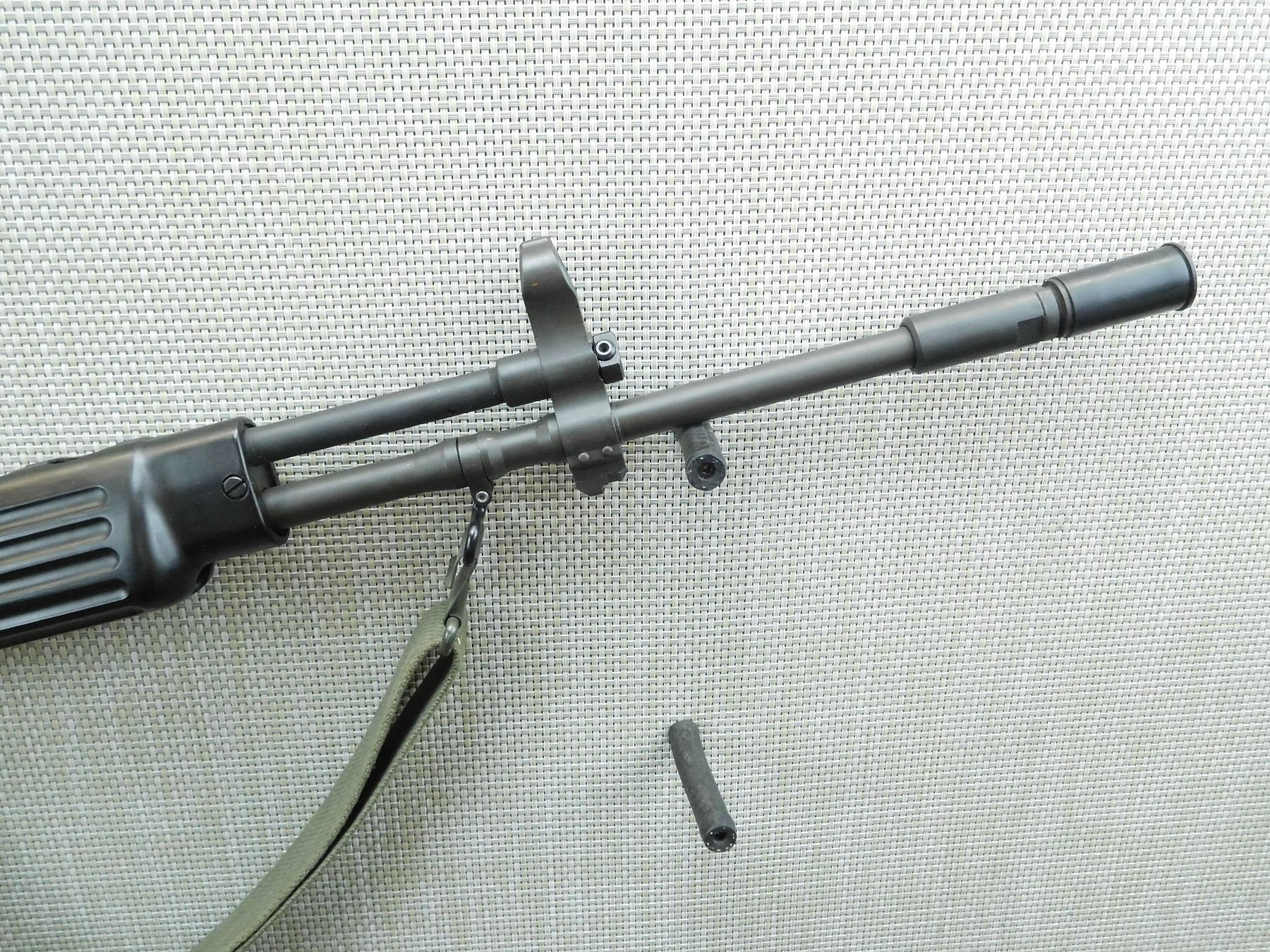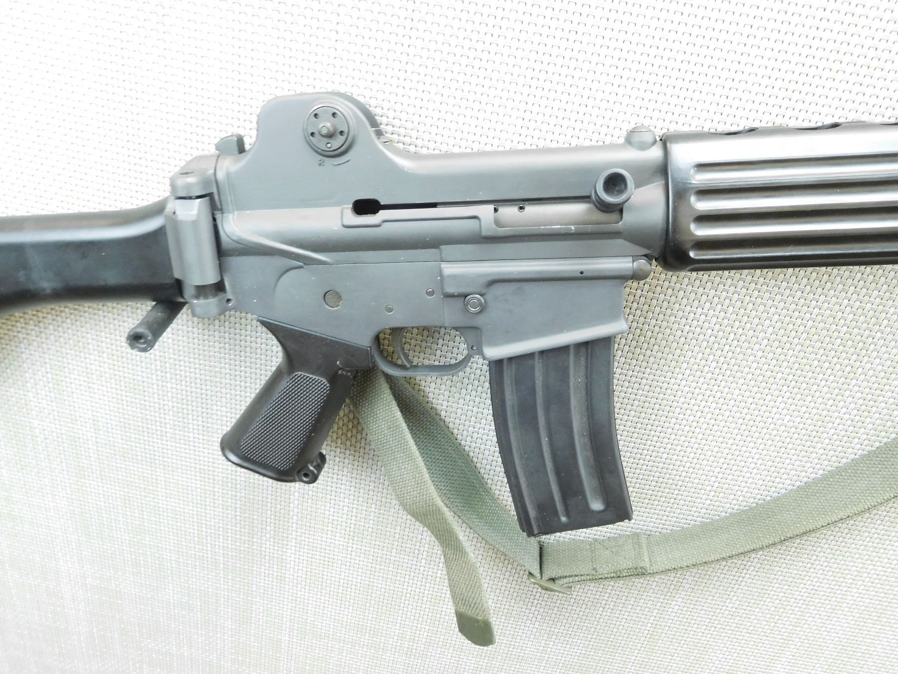 COMES WITH MAGAZINE THAT IS PINNED TO 5, REQURIES 12-5 PROHIBITED LICENSE TO PURCHASE, EXCELLENT BORE, ADJUSTABLE REAR SIGHT, FIXED HOODED FRONT BLADE SIGHT, SYNTHETIC STOCK, PISTOL GRIP AND HEAT SHIELD, REAR STOCK IS FOLDING, SLING LOOPS, CANVAS SLING, FLASH SUPRESSOR, BAYONET LUG, AS NEW , SERIAL # 304989 , ACTION: SEMI AUTOMATIC RIFLE CLASS 12.5 , BARREL LENGTH: 510MM , CONDITION: 9/10 , STOCK # P2058 , CLASS: CANADIAN PROHIBITED CLASS