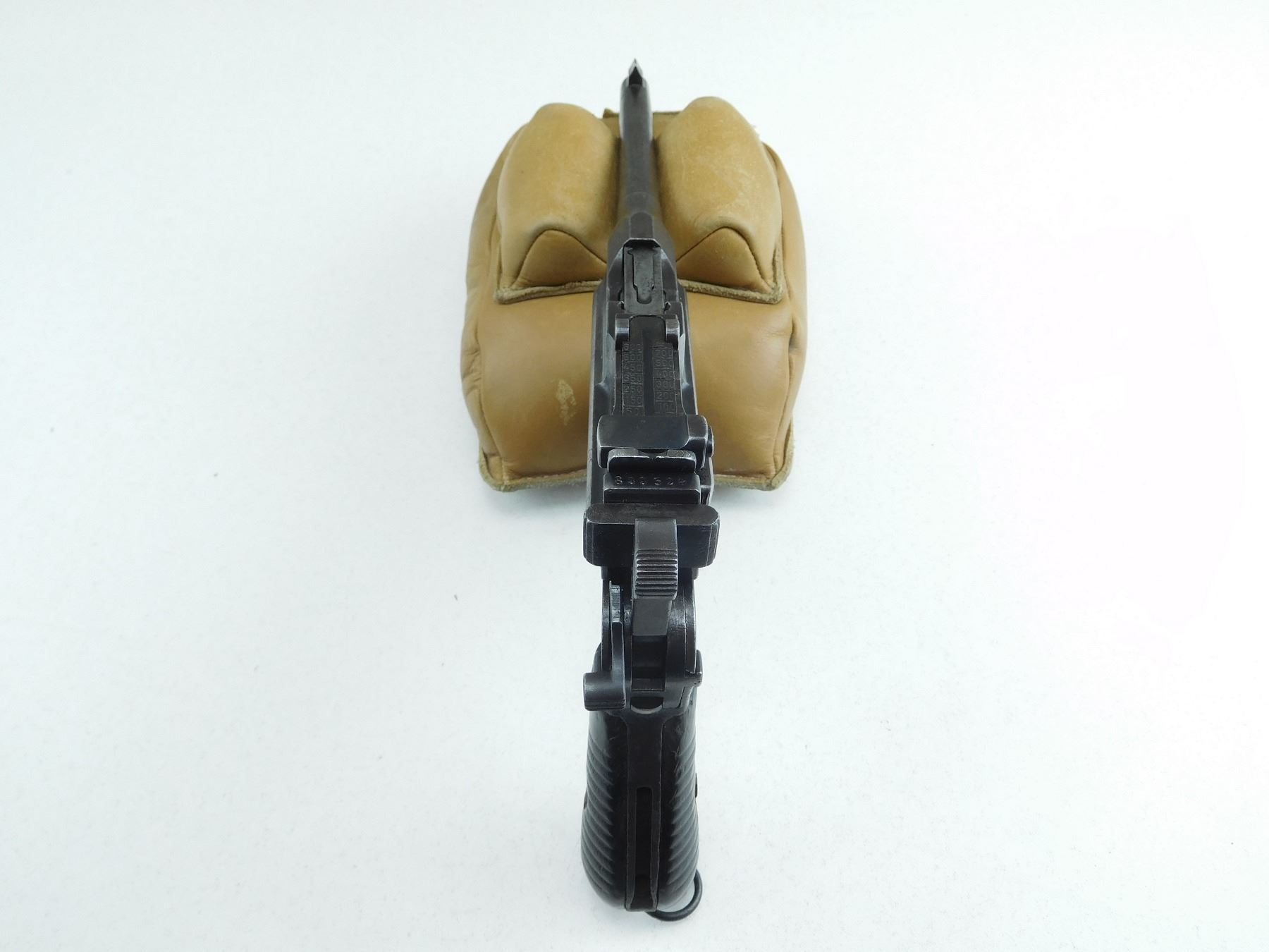 BLADE FRONT AND ADJUSTABLE REAR SIGHT, ORIGINAL GRIPS SHOW EXTENSIVE WEAR, BORE IS GOOD, SHOWS EXTENSIVE HANDLING MARKS AND LIGHT SURFACE PITTING , SERIAL # 899524 , ACTION: SEMI AUTOMATIC HANDGUN , BARREL LENGTH: 140MM , CONDITION: 5/10 , STOCK # R2563 , CLASS: CANADIAN RESTRICTED CLASS