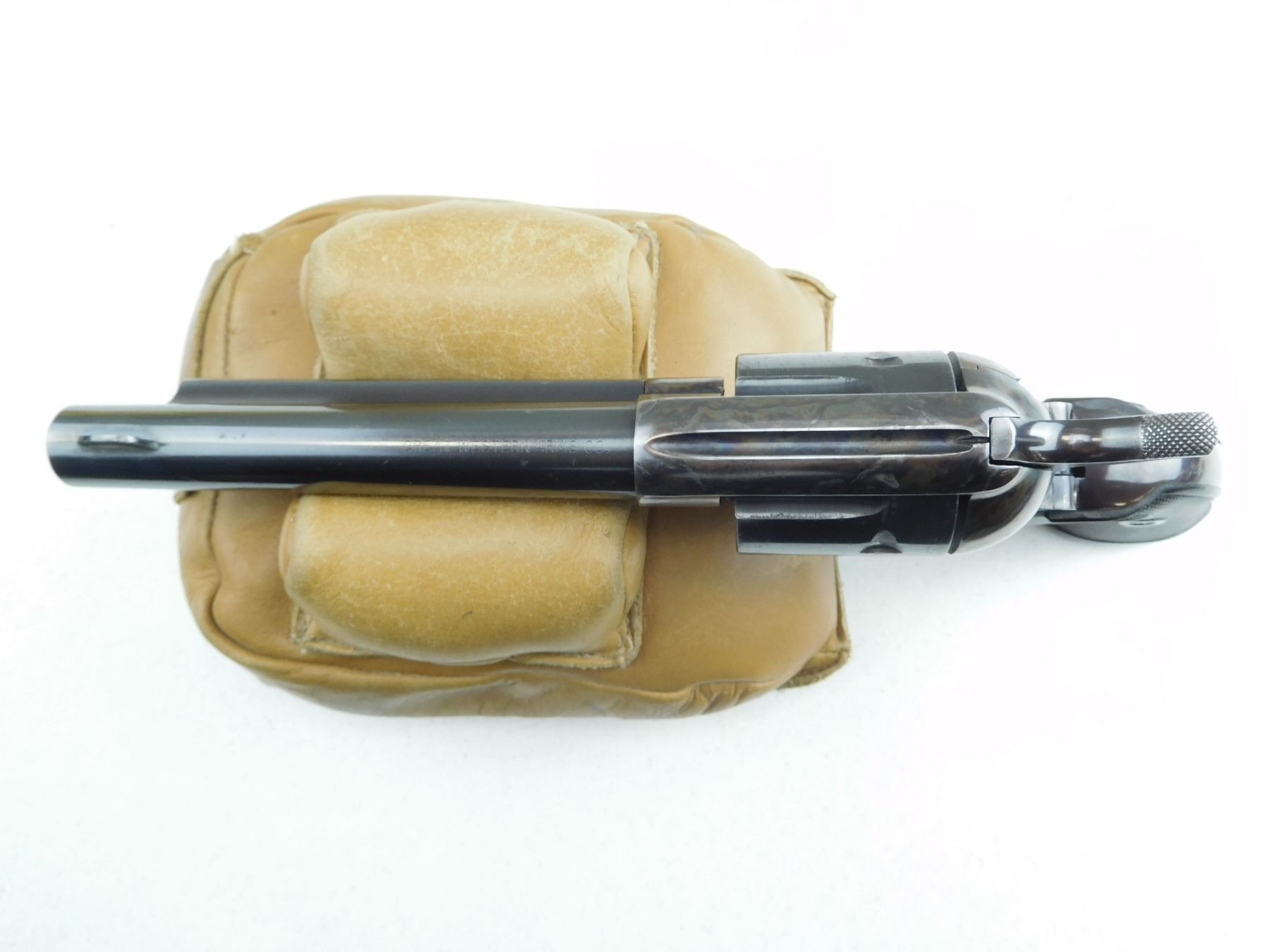 ORIGINAL CHECKERED PLASTIC GRIPS, BLADE FRONT AND NOTCH REAR SIGHT, CASE HARDENED RECEIVER, GOOD BORE, SHOWS VERY LITTLE HANDLING MARKS, LOCKS UP TIGHT AND INDEXES , SERIAL # GW9681 , ACTION: REVOLVER , BARREL LENGTH: 140MM , CONDITION: 8/10 , STOCK # R2565 , CLASS: CANADIAN RESTRICTED CLASS