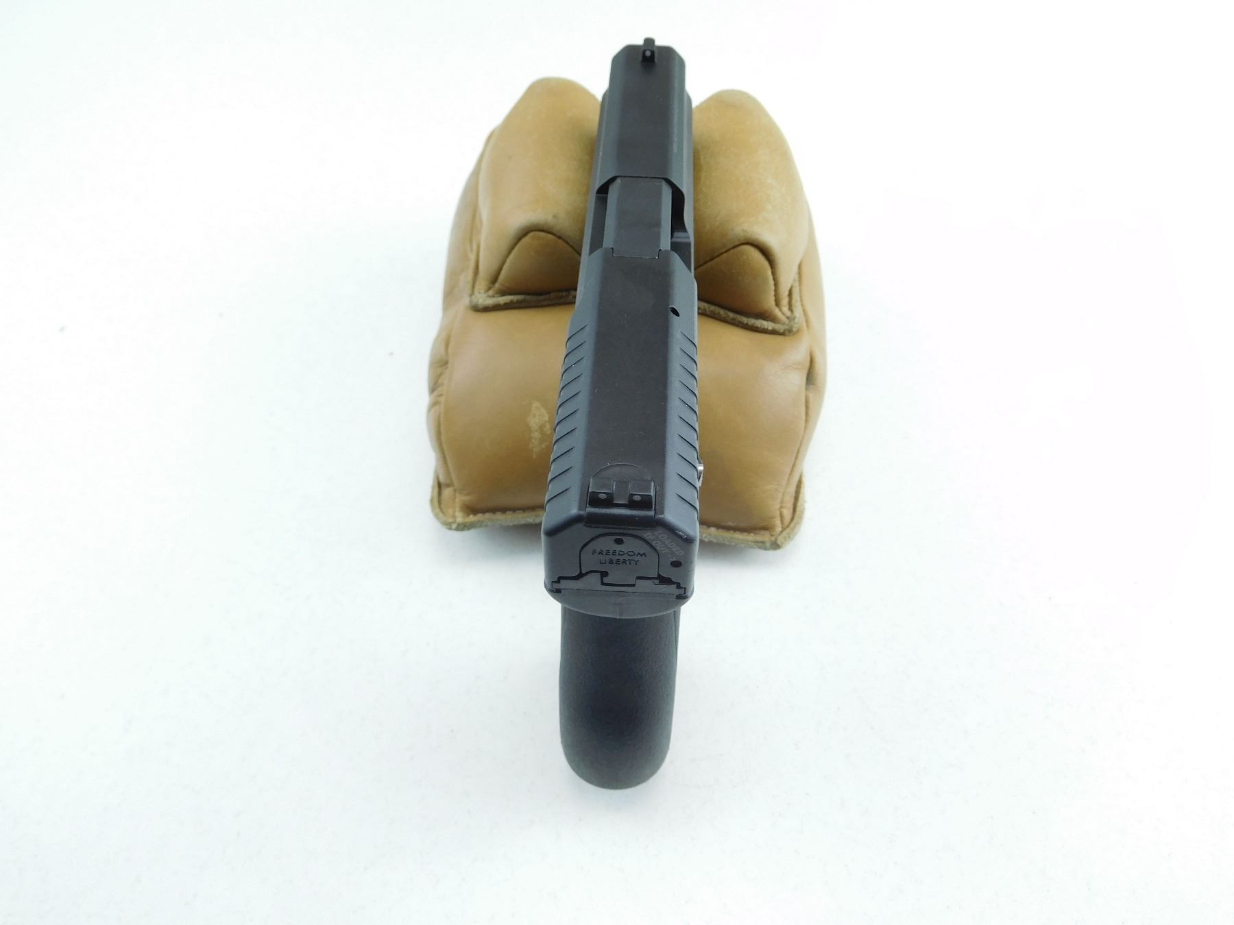 COMES CASE, 2 MAGS, MANUAL, AND EXTRA SIGHTS, RUBBER GRIPS, BLADE FRONT AND ADJUSTABLE REAR SIGHT, POLYMER FRAME, MATTE BLACK FINISH, TRIGGER SAFETY, EXCELLENT BORE , SERIAL # A3152 , ACTION: SEMI AUTOMATIC HANDGUN , BARREL LENGTH: 106MM , CONDITION: AS NEW , STOCK # R2570 , CLASS: CANADIAN RESTRICTED CLASS