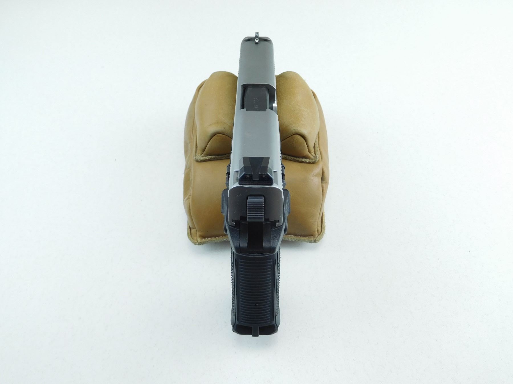 COMES WITH CASE, 3 MAGAZINES, AND ACCESSORIES, WHITE DOT FRONT AND REAR SIGHTS, POLYMER FRAME WITH TWO TONE SLIDE, COMBAT TRIGGER, ACCESSORY MOUNT AHEAD OF TRIGGER GUARD, BEVELLED MAGAZINE WELL, EXCELLENT BORE , SERIAL # 61DZZ11074 , ACTION: SEMI AUTOMATIC HANDGUN , BARREL LENGTH: 106MM , CONDITION: AS NEW , STOCK # R2571 , CLASS: CANADIAN RESTRICTED CLASS