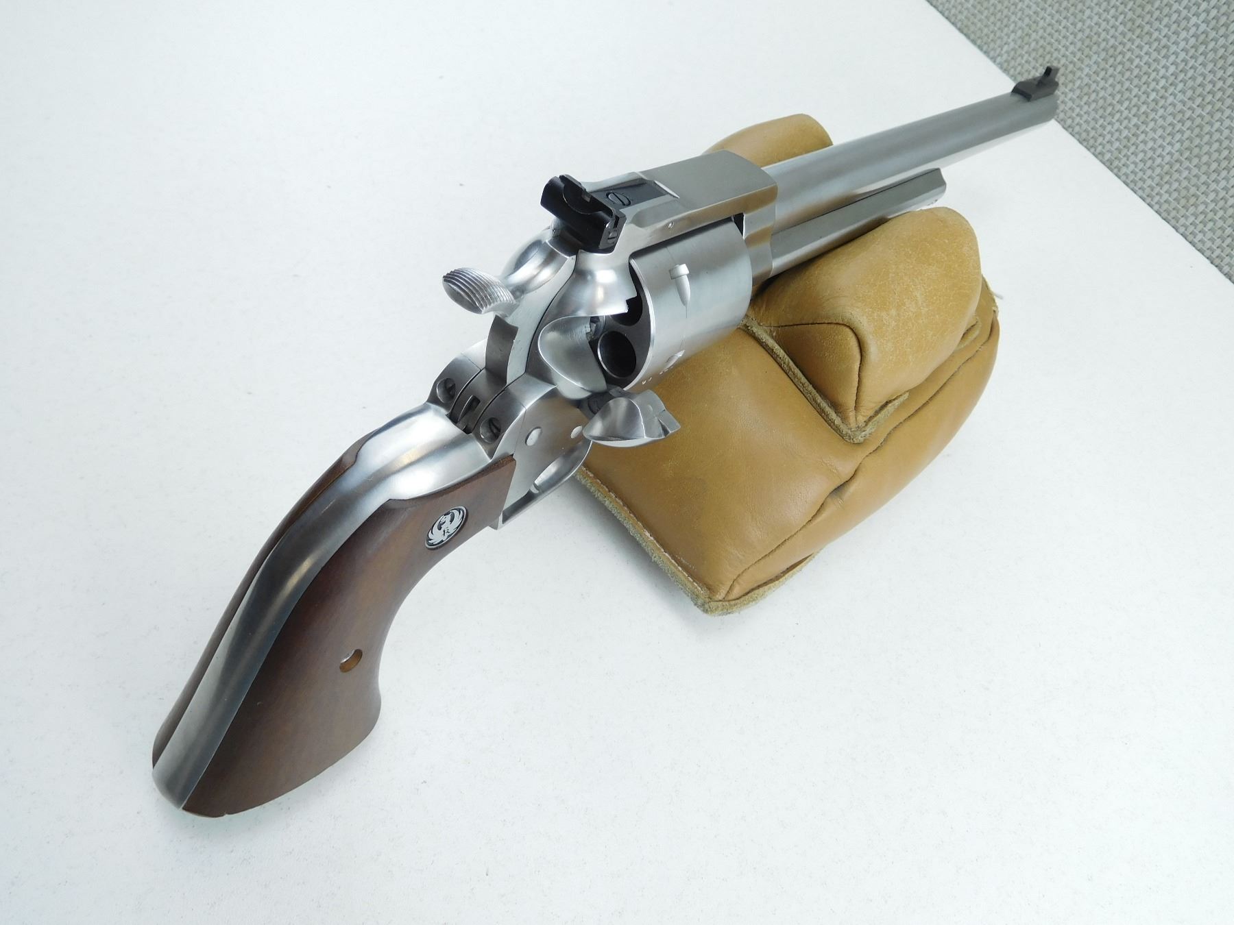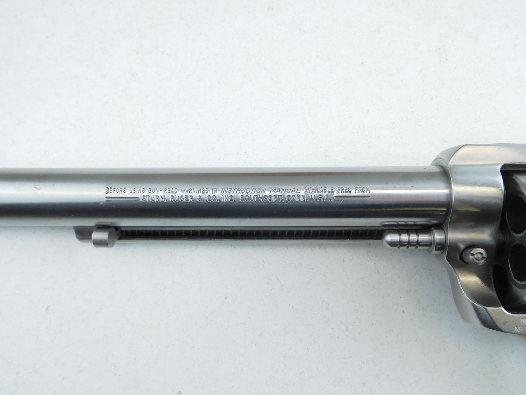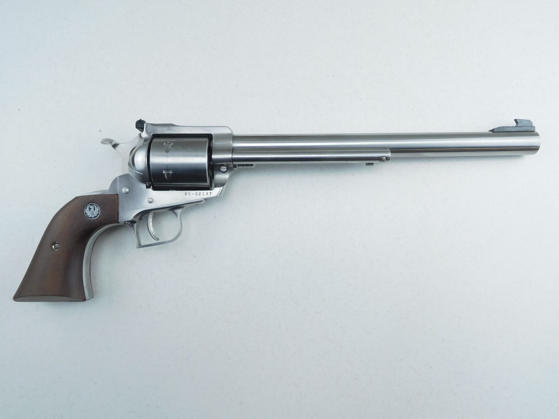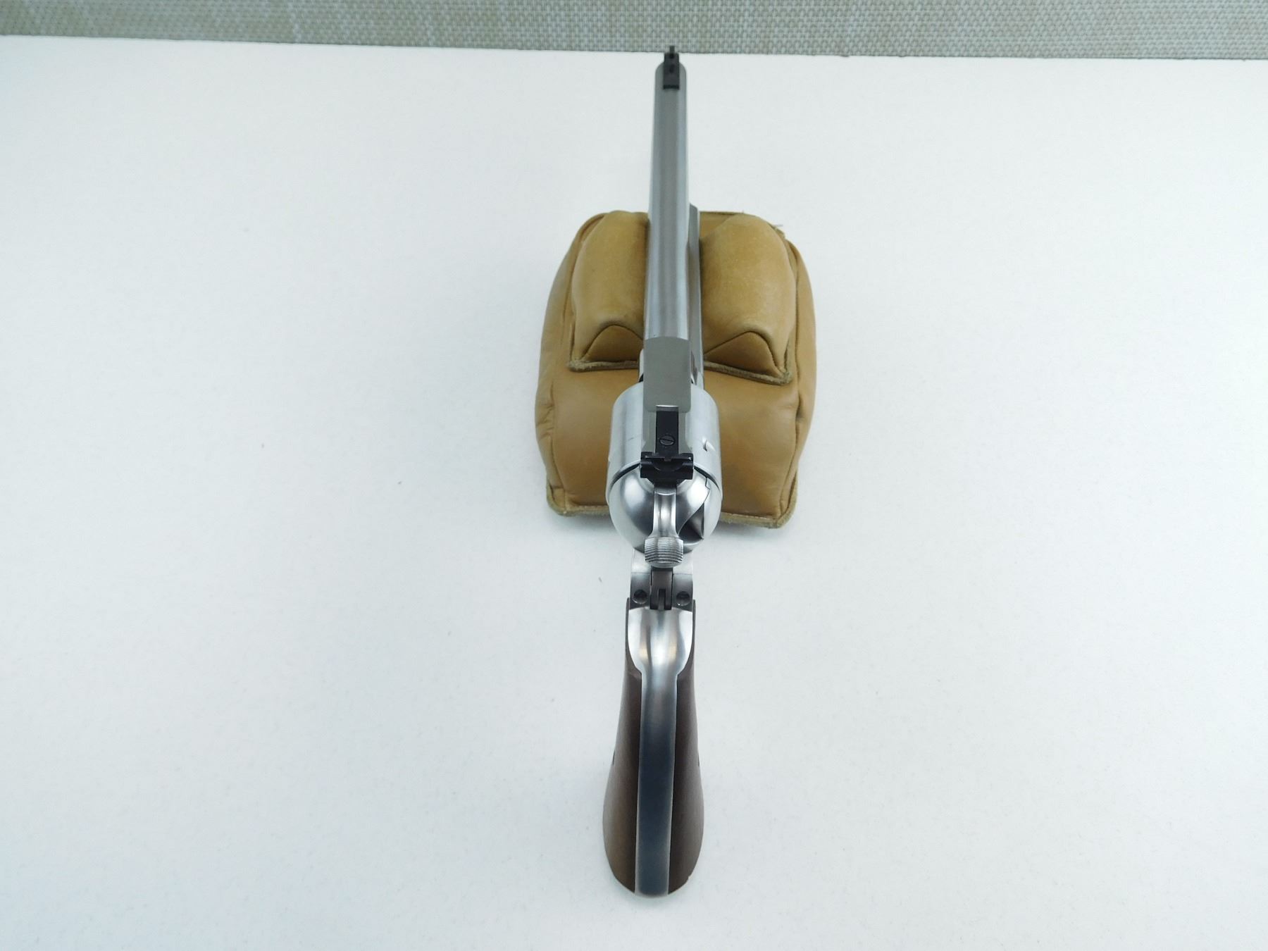 RAMP FRONT AND ADJUSTABLE REAR SIGHTS, ORIGINAL RUGER WOOD GRIPS, STAINLESS STEEL FINISH, GOOD BORE, SHOWS SOME HANDLING MARKS , SERIAL # 8502147 , ACTION: REVOLVER , BARREL LENGTH: 267MM , CONDITION: 8/10 , STOCK # R2577 , CLASS: CANADIAN RESTRICTED CLASS