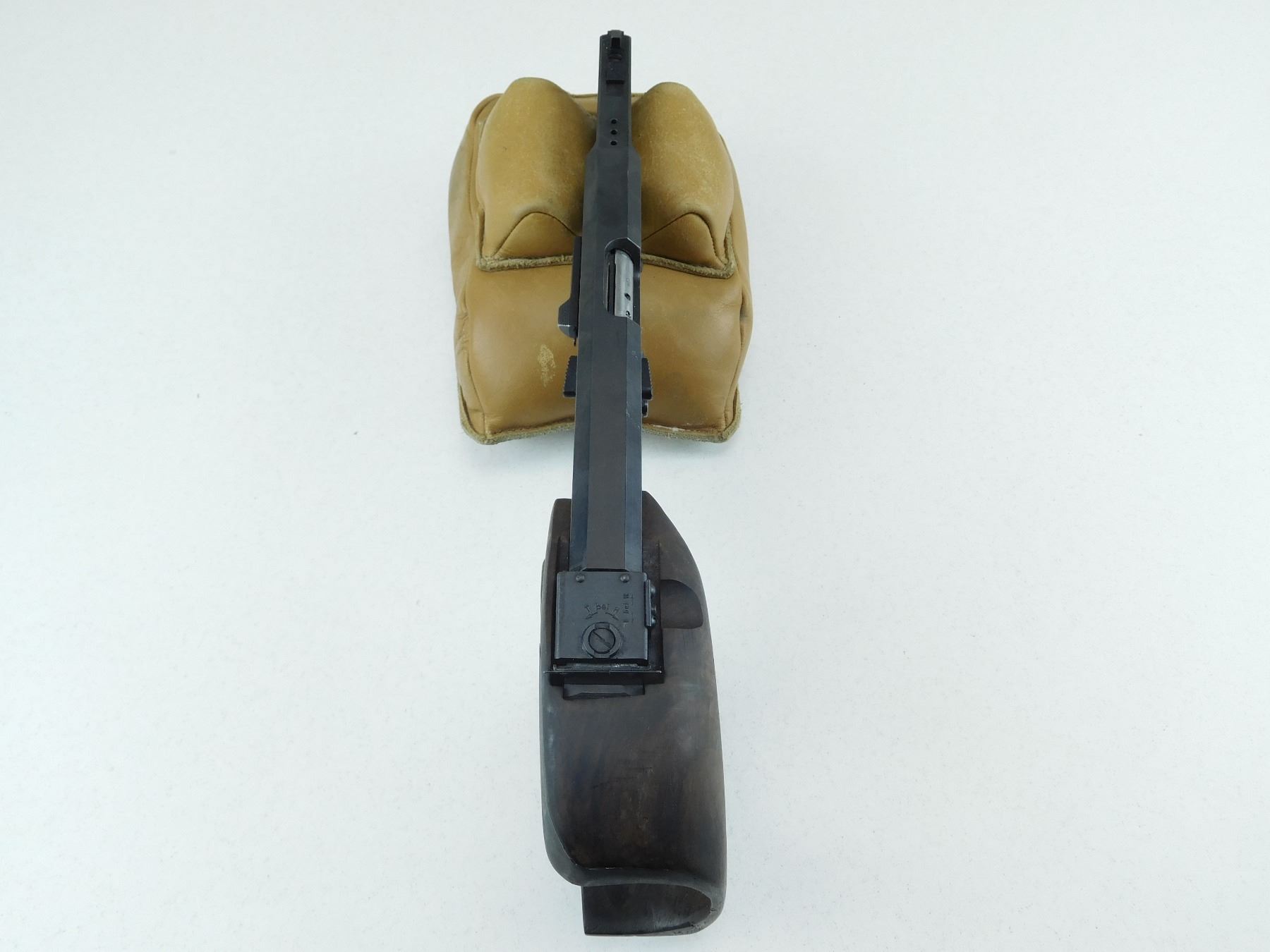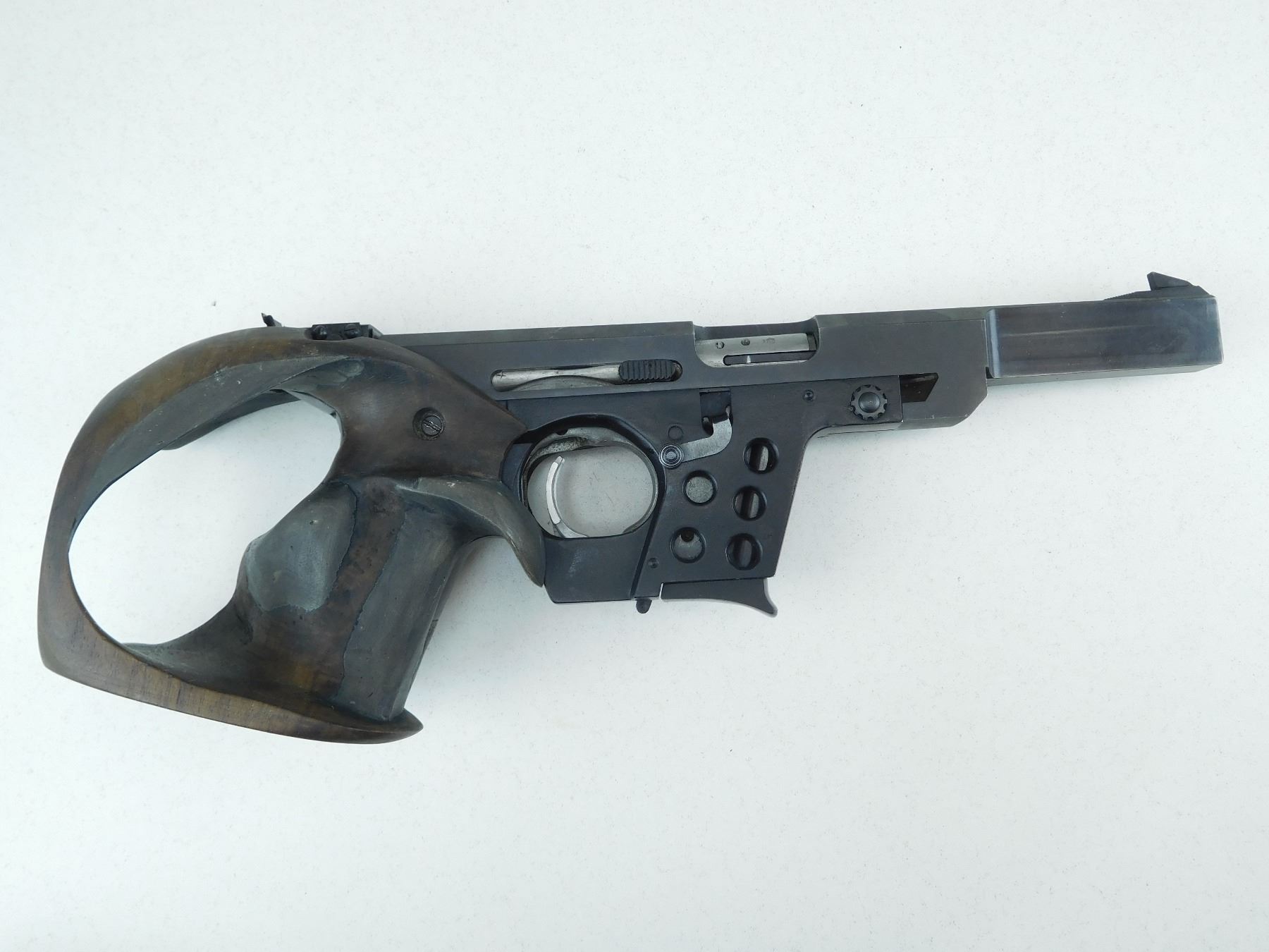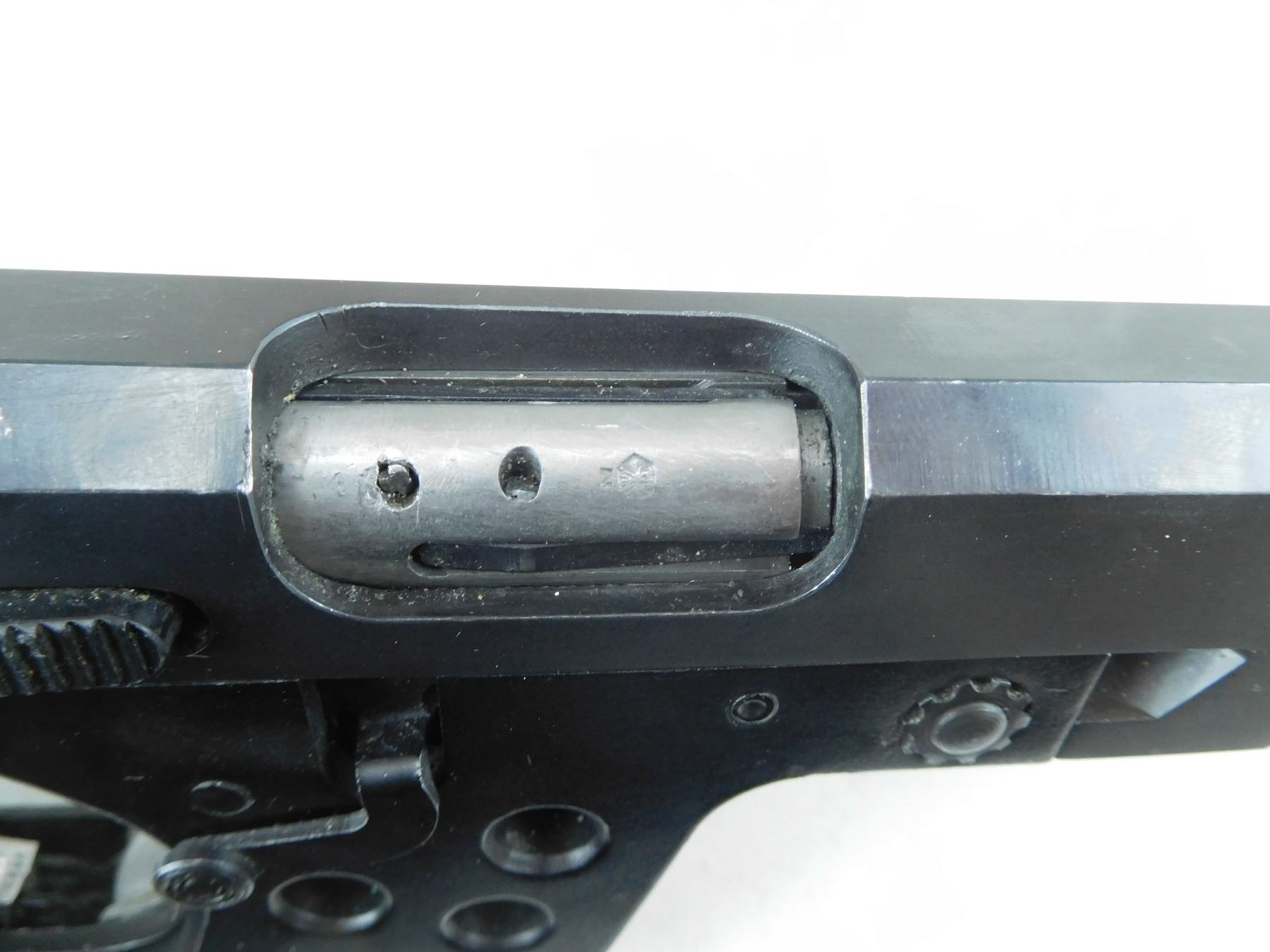 COMES WITH MAGAZINE, GOOD BORE, DAMAGED BARREL (PLEASE SEE PHOTO) BLADE FRONT AND FULLY ADJUSTABLE REAR SIGHTS, ERGONOMIC WOOD GRIPS, SHOWS SOME HANDLING MARKS , SERIAL # 14458 , ACTION: SEMI AUTOMATIC HANDGUN , BARREL LENGTH: 114MM , CONDITION: 5/10 , STOCK # R2587 , CLASS: CANADIAN RESTRICTED CLASS