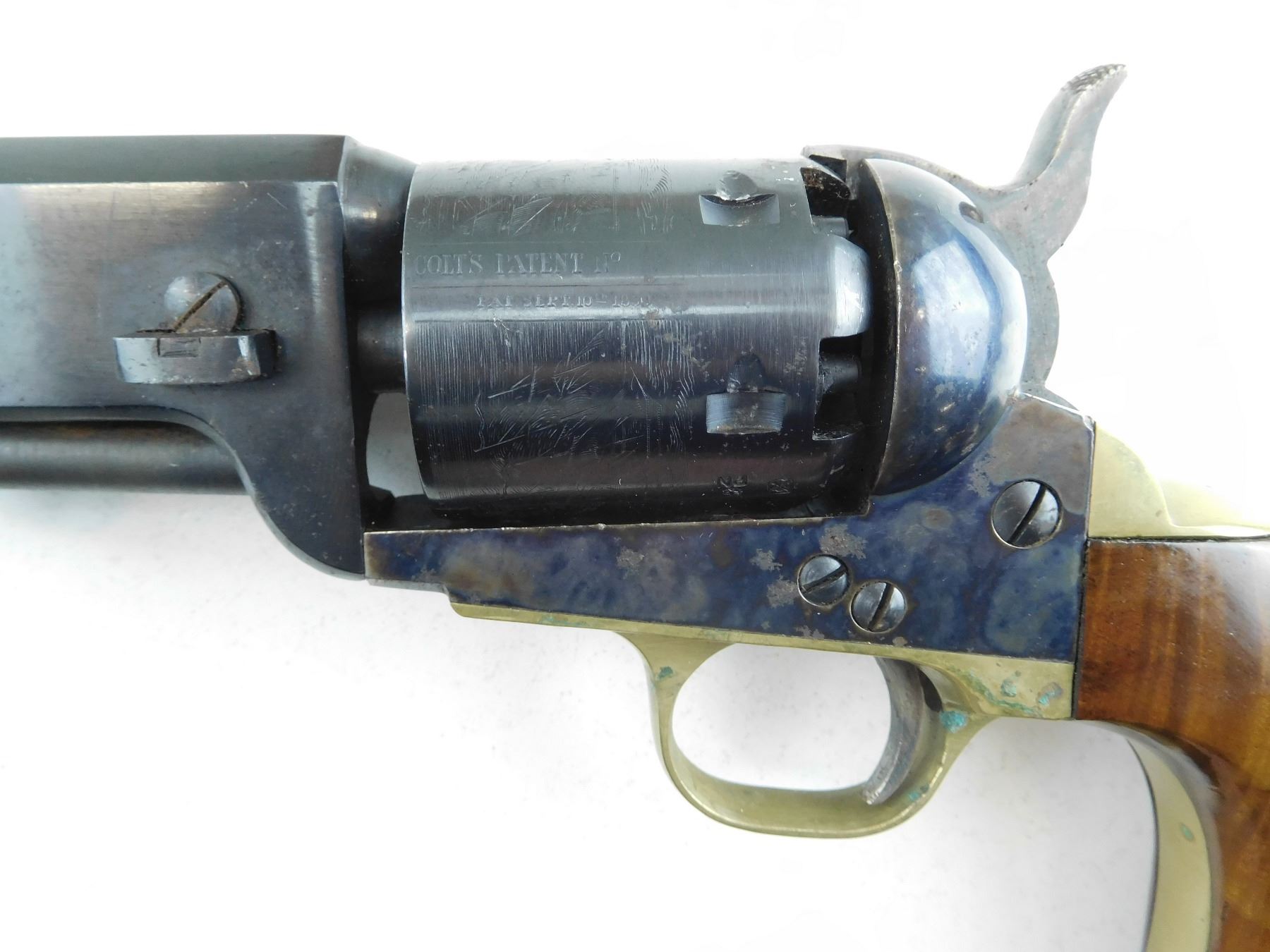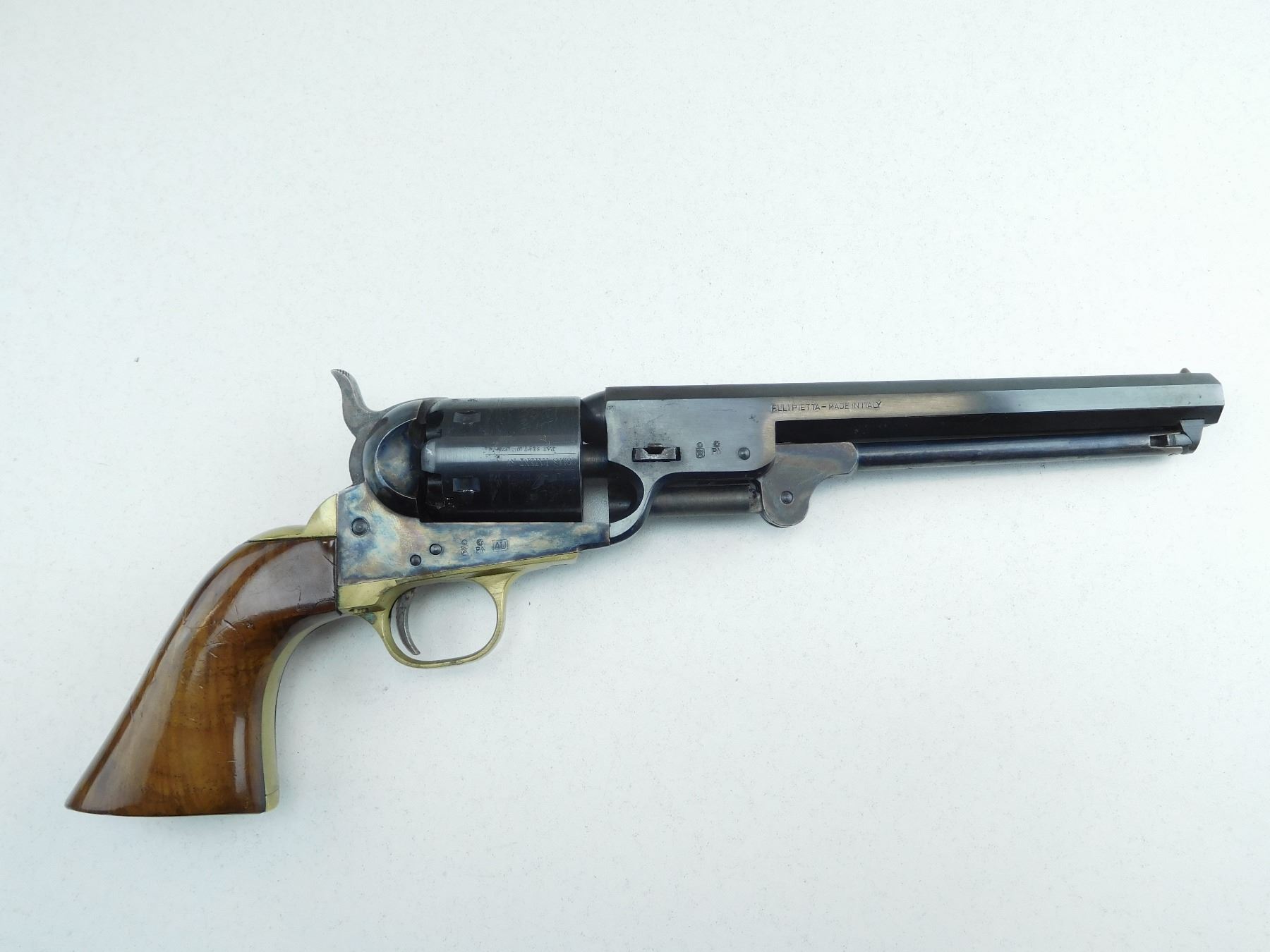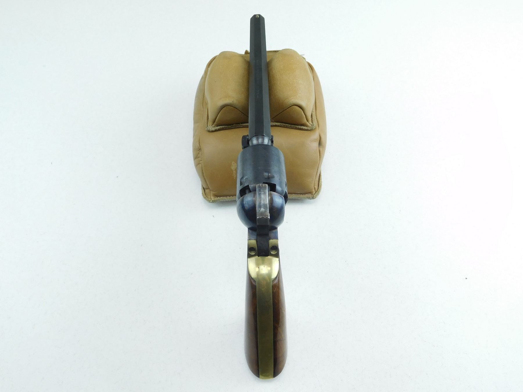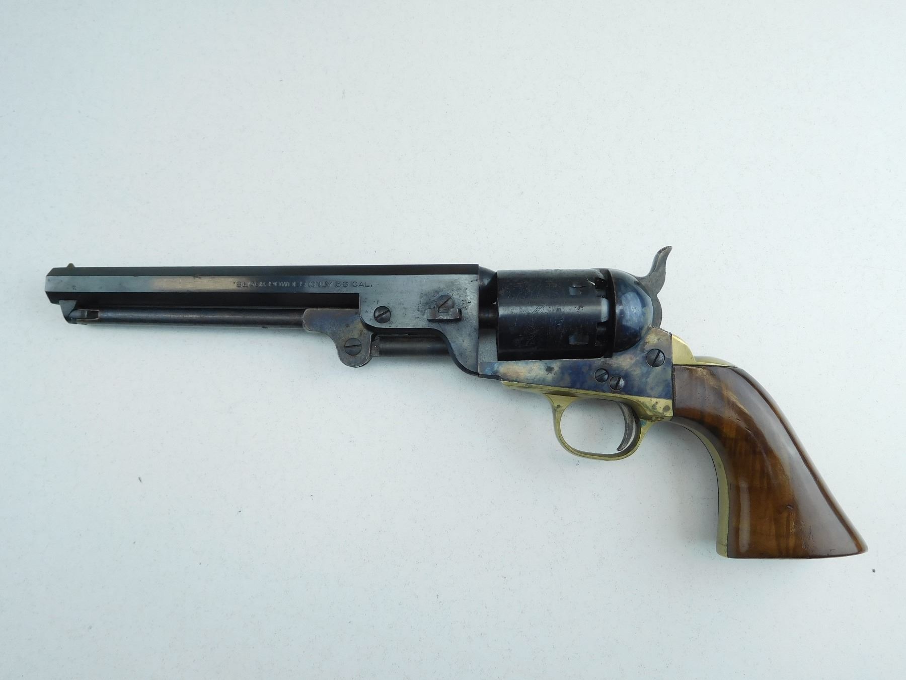 MANUFACTURED BY NAVY ARMS, 6 SHOT CAPACITY, FIXED NOTCH AND BEAD SIGHT, CASE COLOURED ON RECEIVER HAMMER AND TRIGGER, SOME BRASS FURNITURE, WOODEN GRIPS, SHOWS SOME MINOR PITTING ON THE BARREL, ACTION IS TIGHT, COCKS HOLDS AND FIRES, SHOWS SOME MINOR HANDLING WEAR , SERIAL # 285815 , ACTION: REVOLVER , BARREL LENGTH: 191MM , CONDITION: 8/10 , STOCK # R2601 , CLASS: CANADIAN RESTRICTED CLASS