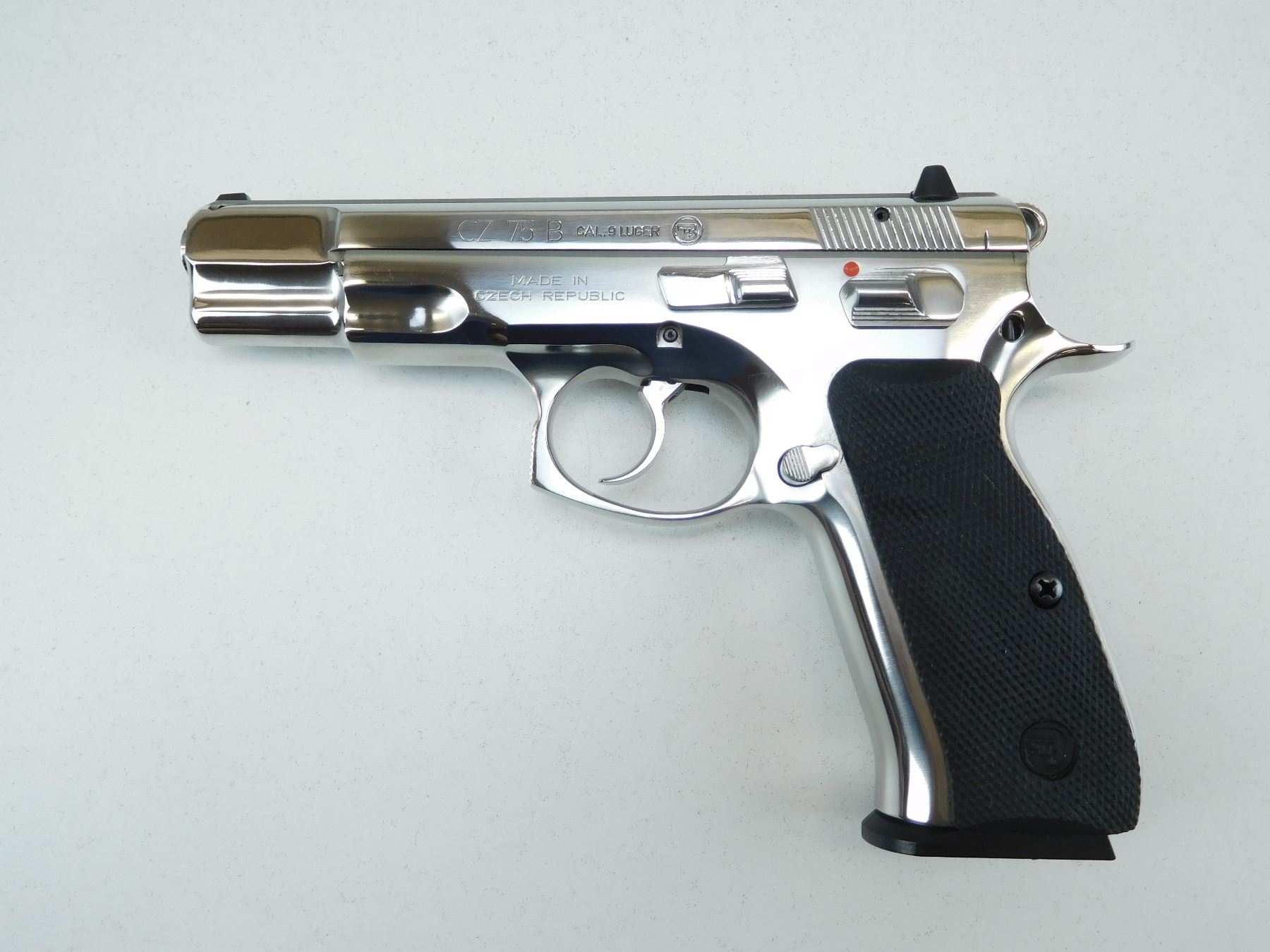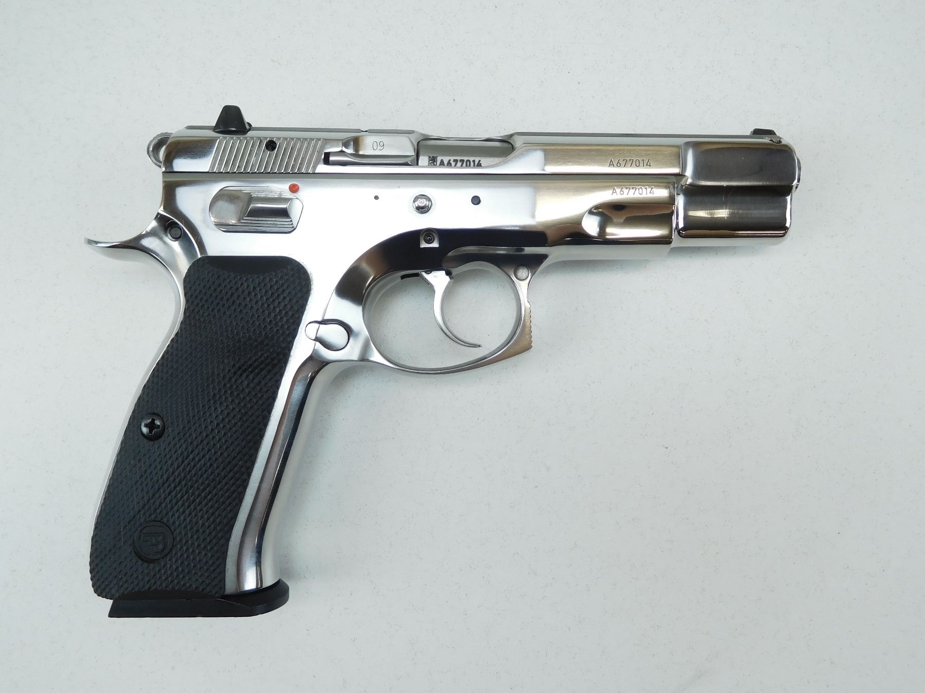 COMES WITH A CASE AND 3 MAGAZINES, CHROME FINISH, BORE IS EXCELLENT, AS NEW CONDITION APPEARS UNFIRED, WHITE DOT FRONT AND ADJUSTABLE REAR SIGHTS, CHECKERED PLASTIC GRIPS , SERIAL # A677014 , ACTION: SEMI AUTOMATIC HANDGUN , BARREL LENGTH: 121MM , CONDITION: 9+/10 , STOCK # R2625 , CLASS: CANADIAN RESTRICTED CLASS