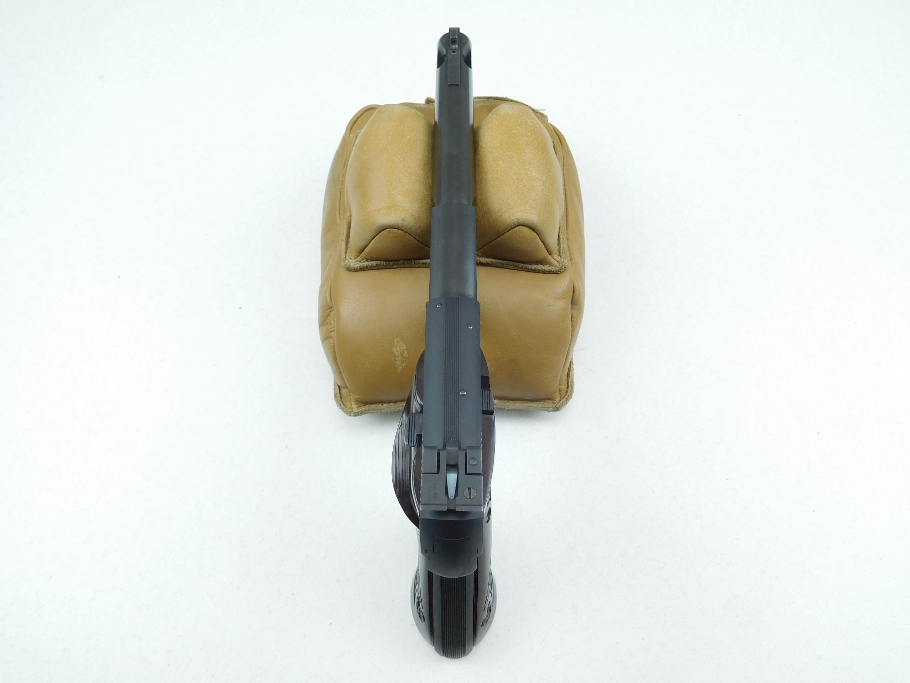 COMES CASE AND 2 MAGAZINES, HAS EXTRA BARREL WEIGHTS, BLADE FRONT AND FULLY ADJUSTABLE REAR SIGHTS, SHOWS VERY LITTLE HANDLING MARKS , BORE IS EXCELLENT, PLASTIC GRIPS WITH THUMB REST , SERIAL # 697427 , ACTION: SEMI AUTOMATIC HANDGUN , BARREL LENGTH: 172MM , CONDITION: 9/10 , STOCK # R2665 , CLASS: CANADIAN RESTRICTED CLASS