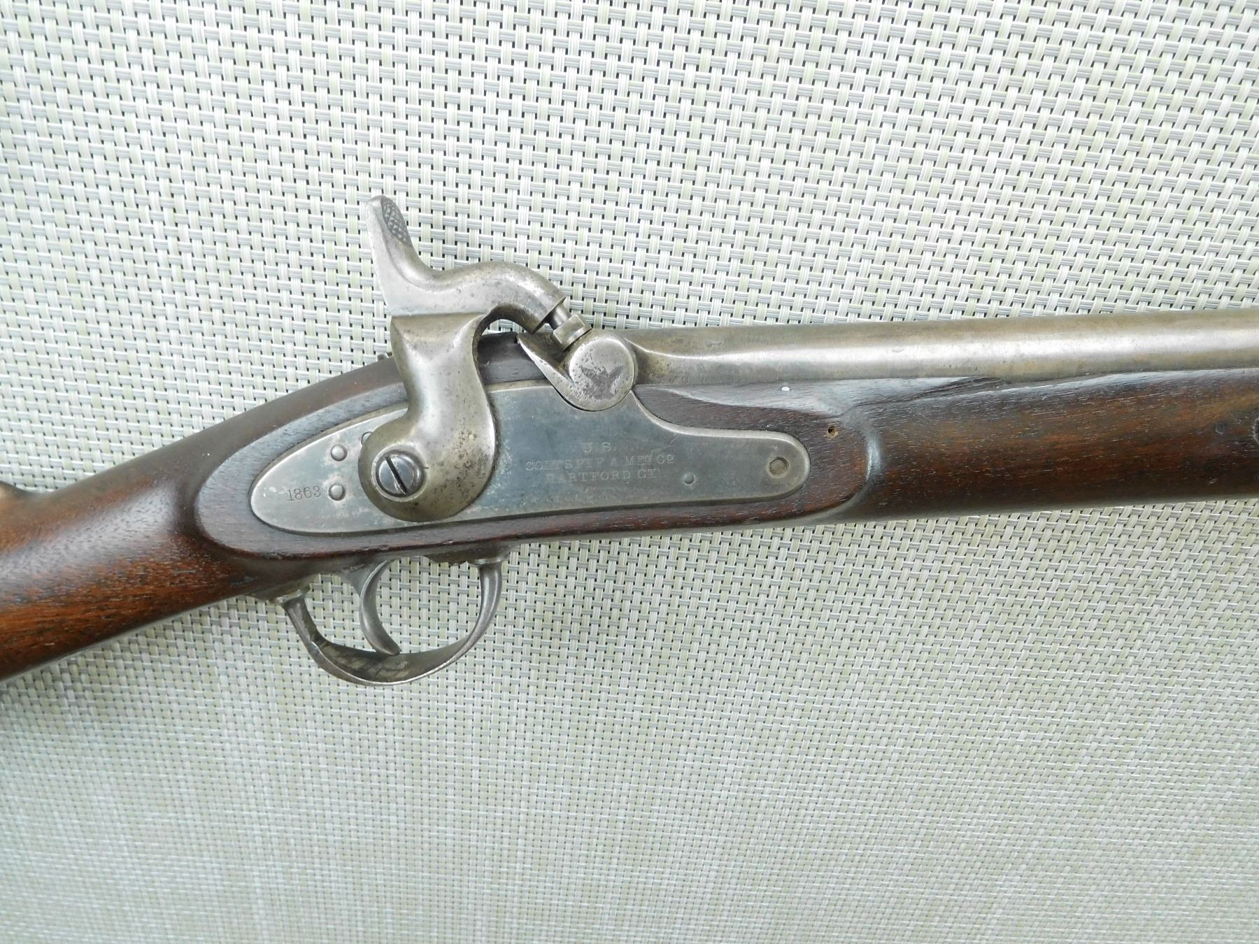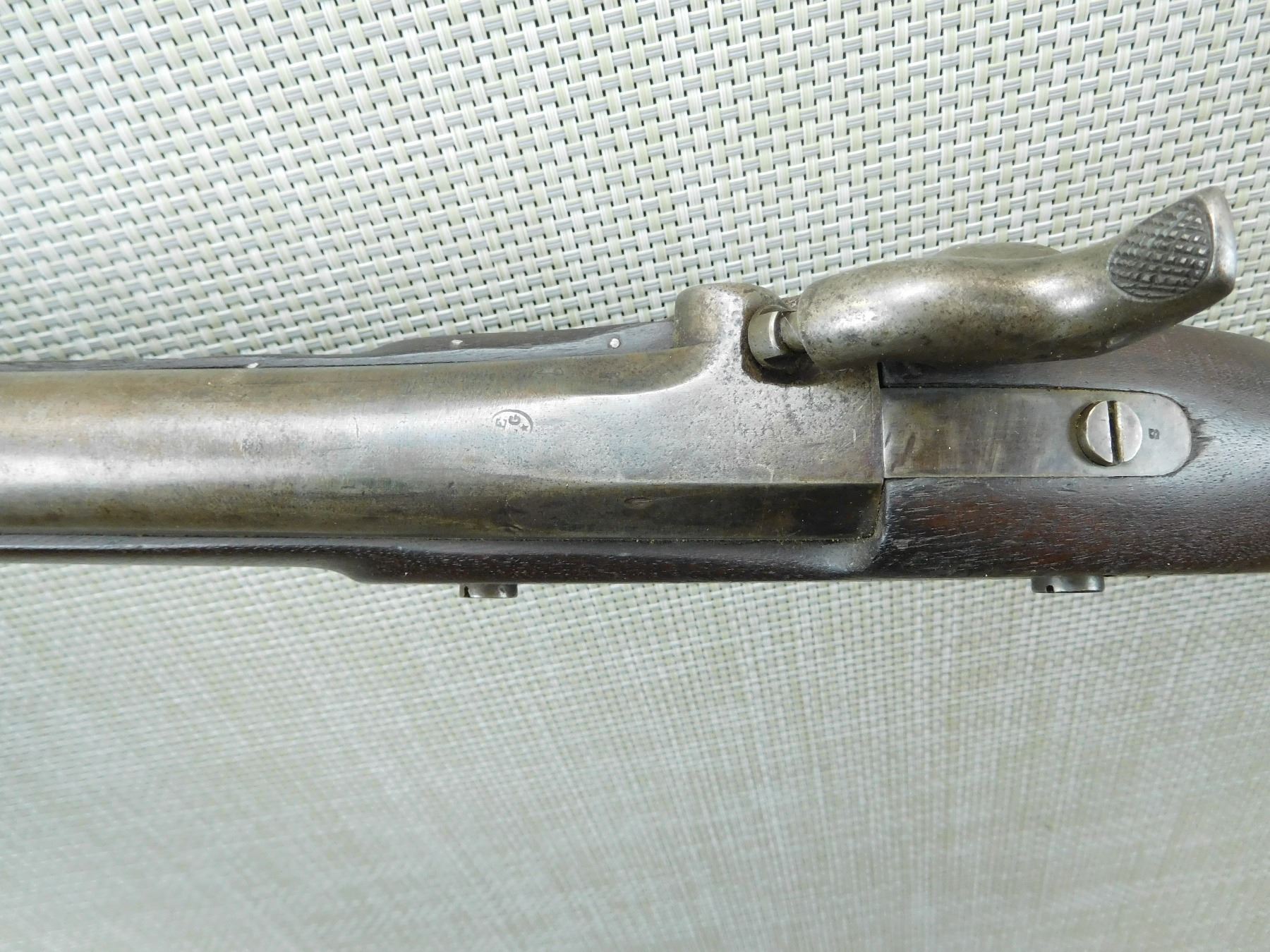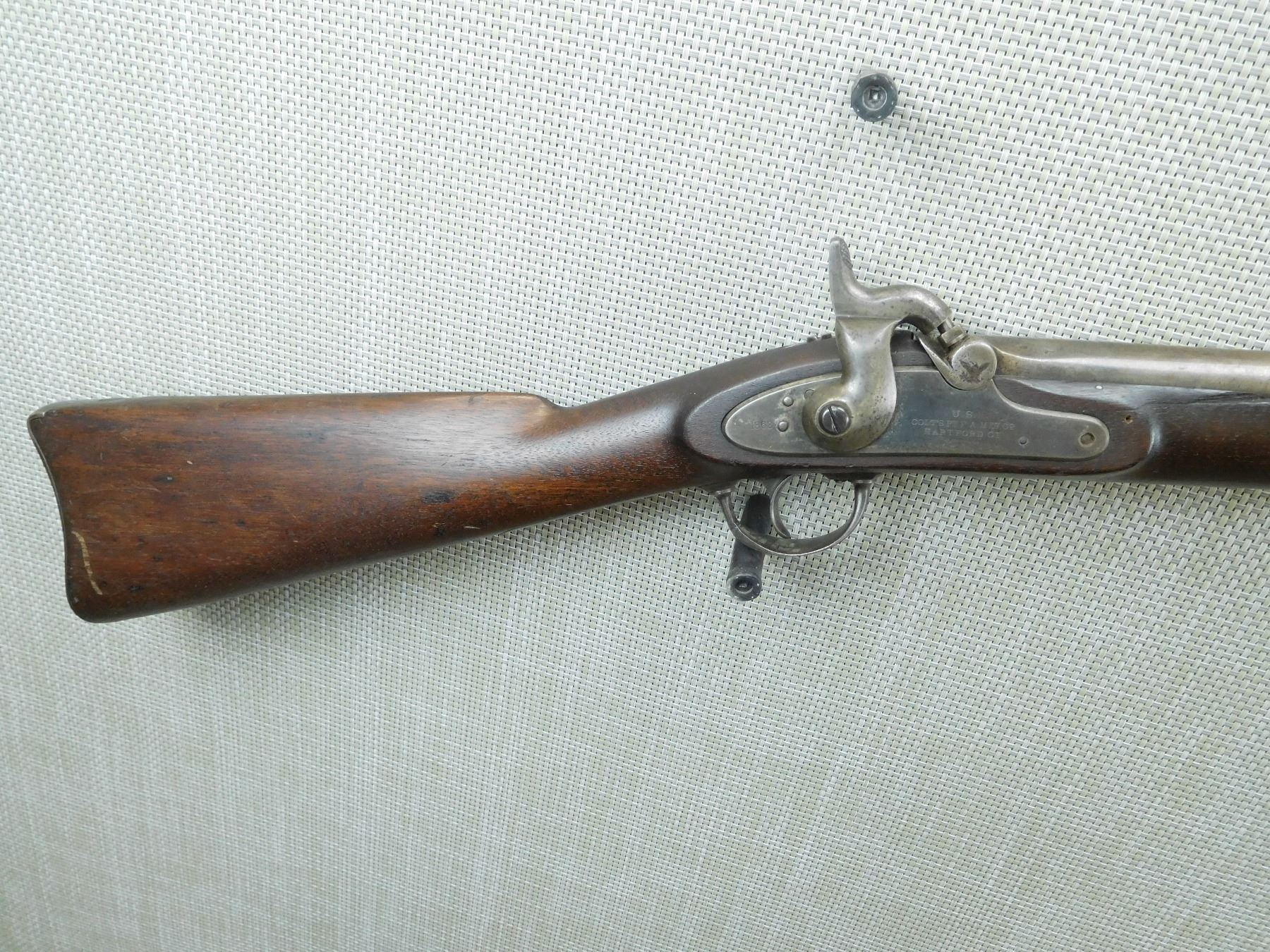 MADE IN 1863 AND CONVERTED TO A SHOTGUN FOR COMMERCIAL SALES, REBARRELED TO A SMOOTH BARREL, BEAD FRONT SIGHT, NO REAR SIGHT, WOOD HAS BEEN CUT BACK TO SPORTERIZED CONFIGURATION, HAS WOODEN RAM ROD, US MARKED LOCK PLATE WITH AMERICAN EAGLE MOTIF, ORIGINAL MILITARY BUTT STOCK, SHOWS EXTENSIVE HANDLING MARKS, IS MARKED US ON THE BUTT PLATE, HAS A CRACK IN THE FOREND , SERIAL # N/A , ACTION: SINGLE SHOT PERCUSSION RIFLE , BARREL LENGTH: 33" , CONDITION: ANTIQUE 5/10 , STOCK # , CLASS: CANADIAN ANTIQUE CLASS