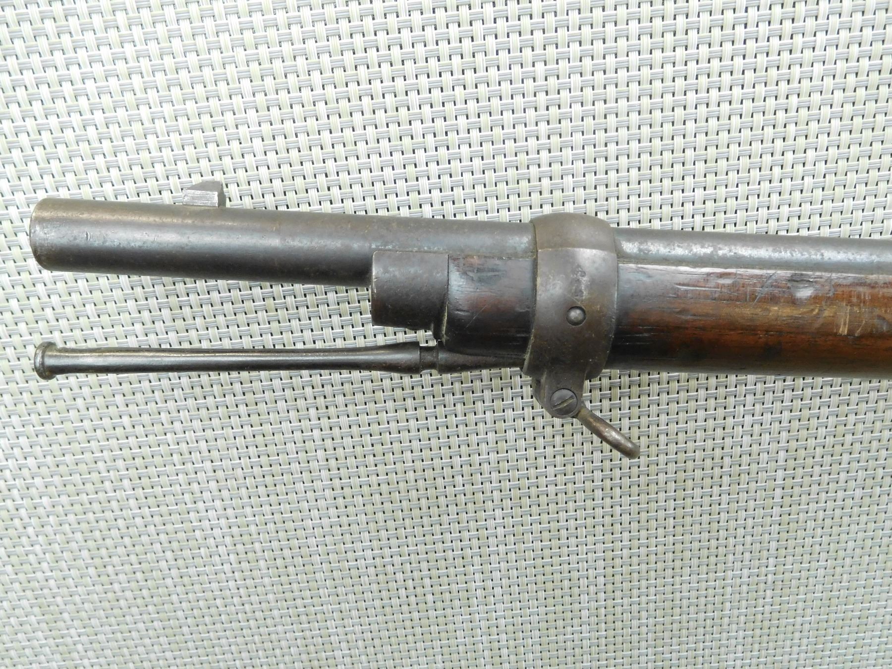 BORE IS DARK, LIGHTLY PITTED THROUGHOUT, ORIGINAL MILITARY CONFIGURATION, PITTED BUTT PLATE, SHOWS EXTENSIVE HANDLING MARKS, SHORT LEVER HAS EXTRA RETAINING SCREW, BLADE FRONT AND FULLY ADJUSTABLE REAR SIGHTS , SERIAL # 3642 , ACTION: MARTINI HENRY ACTION , BARREL LENGTH: 33" , CONDITION: ANTIQUE 5/10 , STOCK # , CLASS: CANADIAN ANTIQUE CLASS