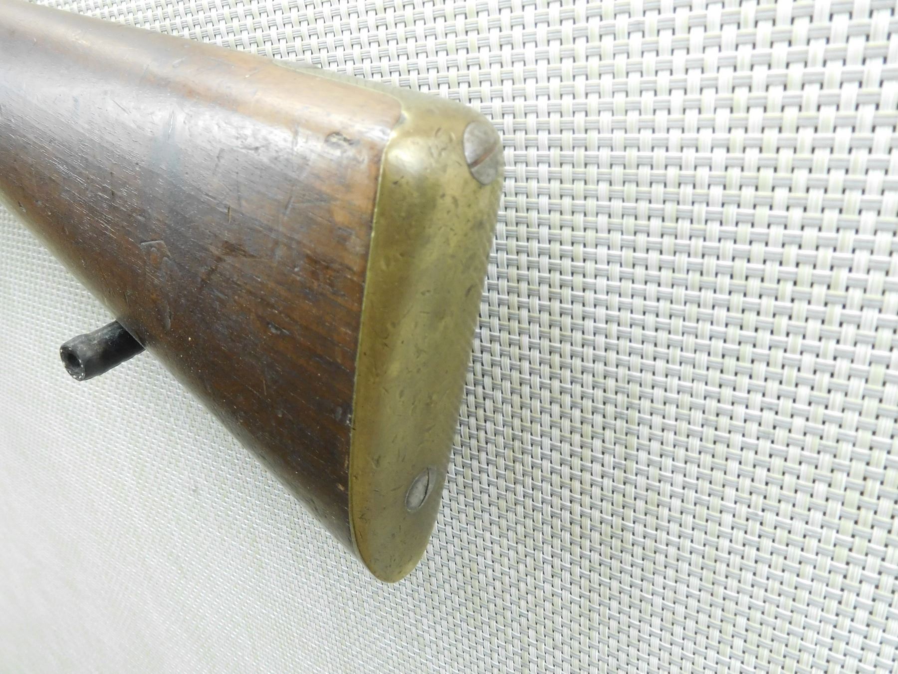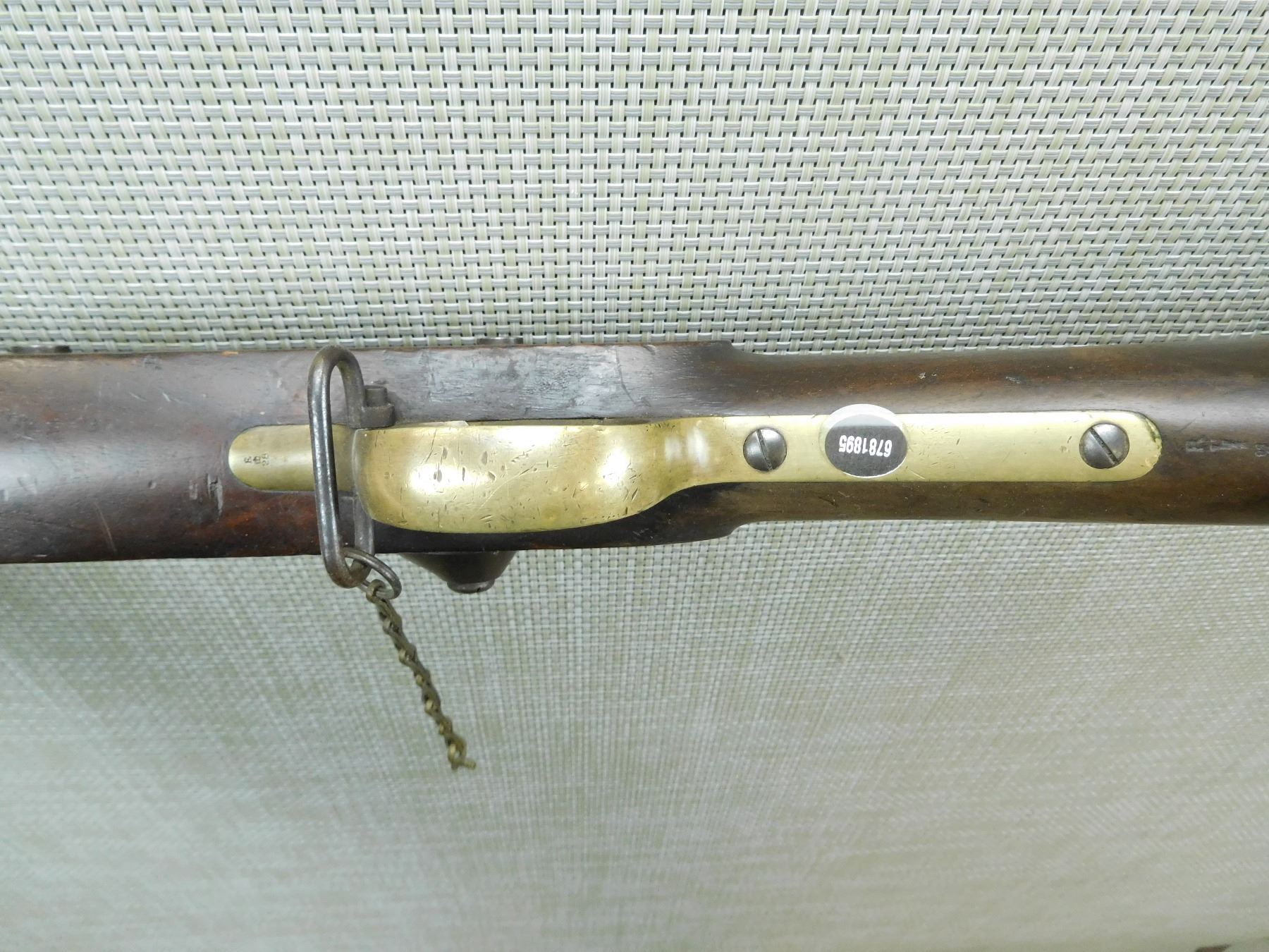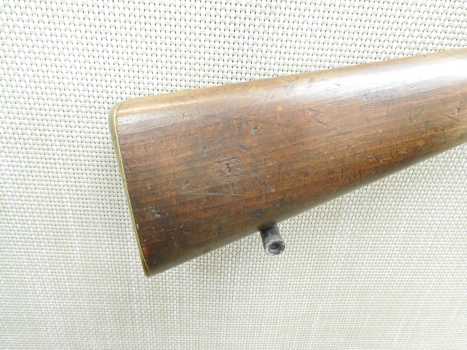MADE IN 1862, BLADE FRONT AND ADJUSTABLE REAR SIGHTS, RETAINS FULL MILITARY CONFIGURATION, NUMEROUS MILITARY MARKS, DARK BORE, SLING SWIVEL STUDS, RETAINS ORIGINAL NIPPLE PROTECTOR CHAIN BUT MISSING THE NIPPLE PROTECTOR, BRASS FURNITUIRE, ORIGINAL RAM ROD, SHOWS SOME HANDLING MARKS , SERIAL # 6532 , ACTION: SINGLE SHOT RIFLE , BARREL LENGTH: 39" , CONDITION: ANTIQUE 6/10 , STOCK # , CLASS: CANADIAN ANTIQUE CLASS