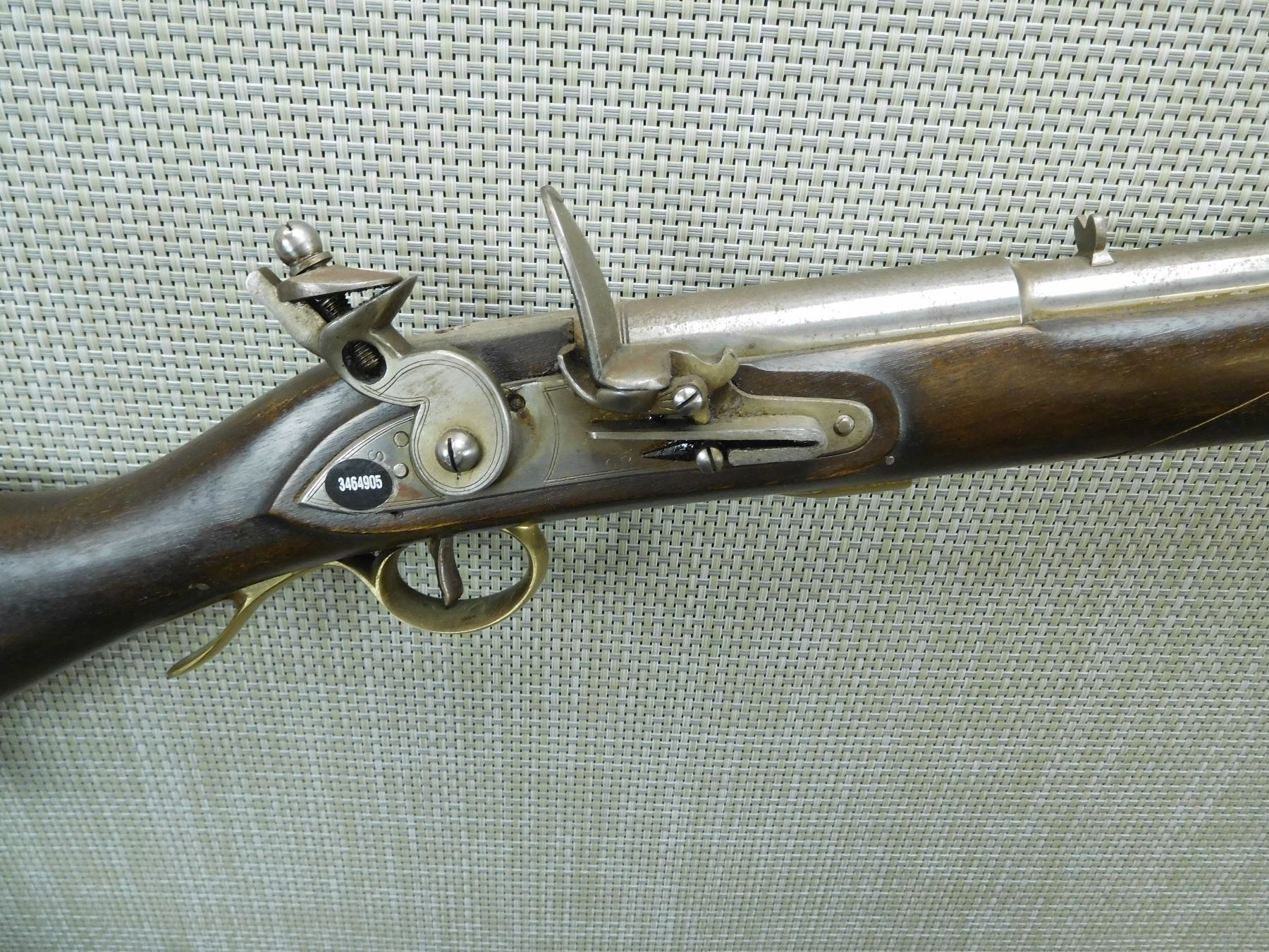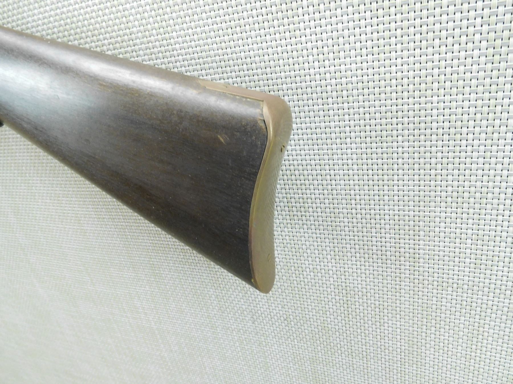 BEAD FRONT AND FIXED REAR SIGHTS, BRASS FURNITURE WITH FANCY TRIGGER GUARD, STOCK IS CRACKED IN 1/2 IN THE MIDDLE, BARREL IS IN THE WHITE, ACTION IS TIGHT, LOCK PLATE MARKED CROWN /OVER GR AND SAR ON THE TAIL OF THE TANG, STEEL RAM ROD , SERIAL # N/A , ACTION: SINGLE SHOT RIFLE , BARREL LENGTH: 32" , CONDITION: ANTIQUE 6/10 , STOCK # , CLASS: CANADIAN ANTIQUE CLASS