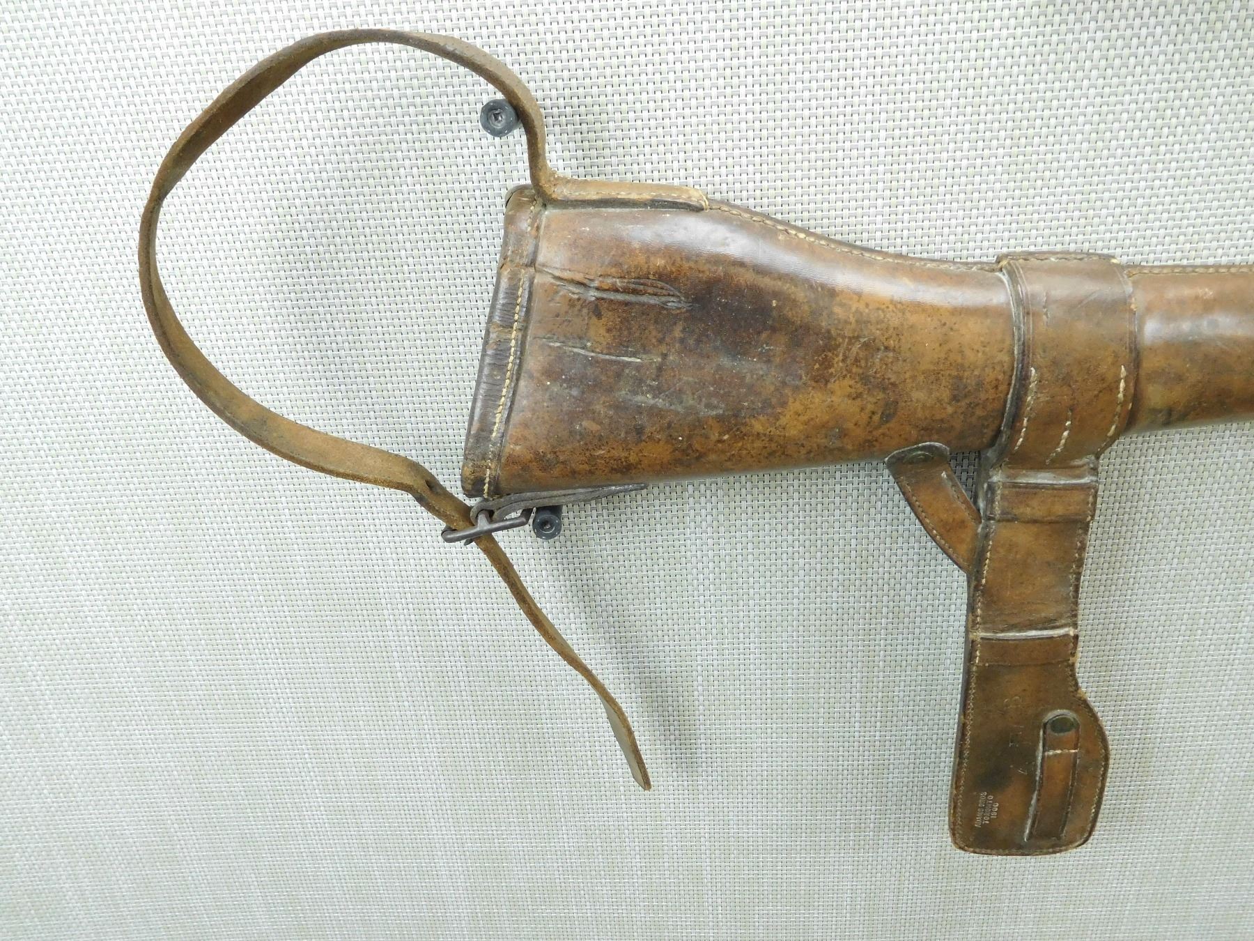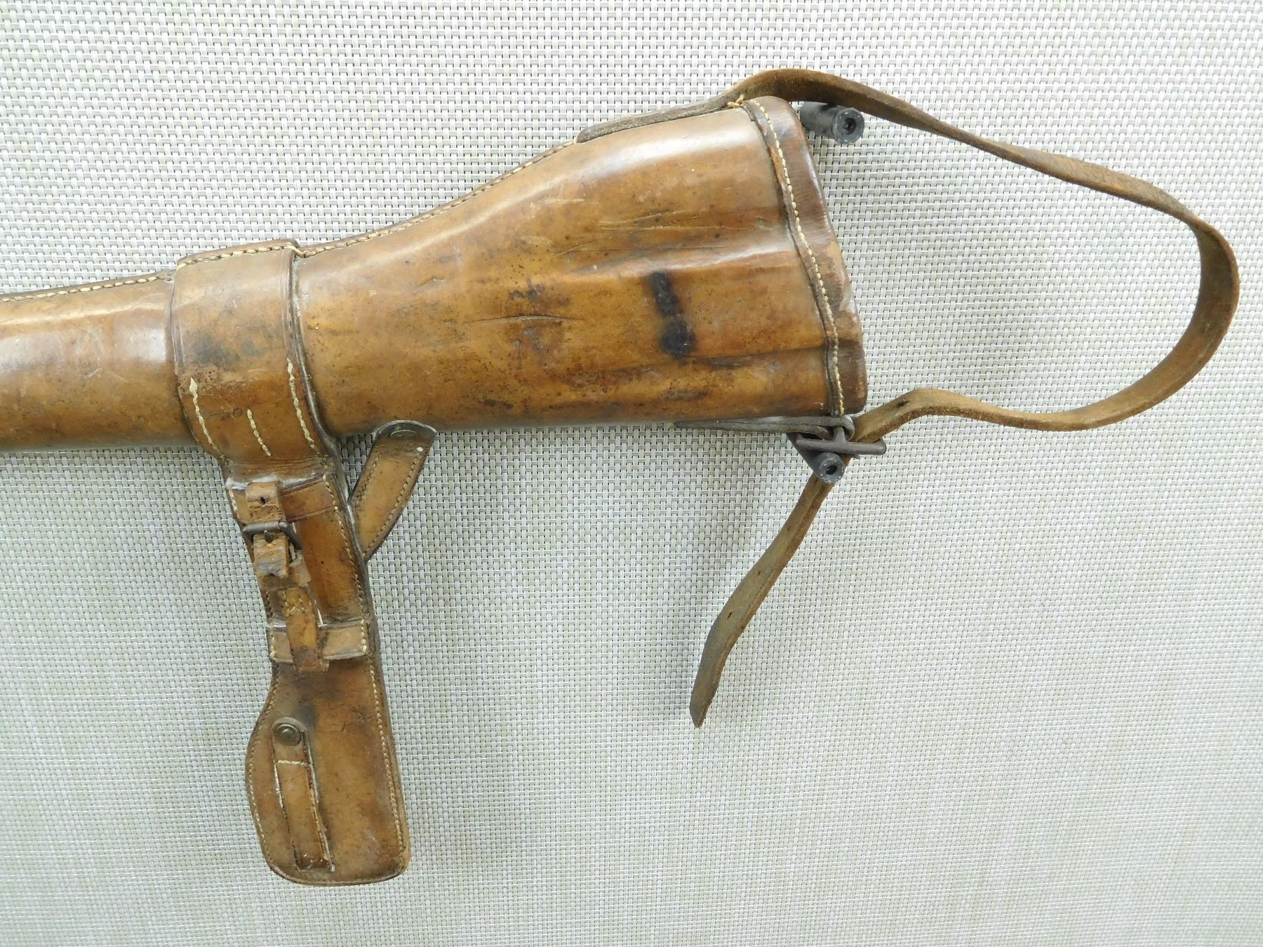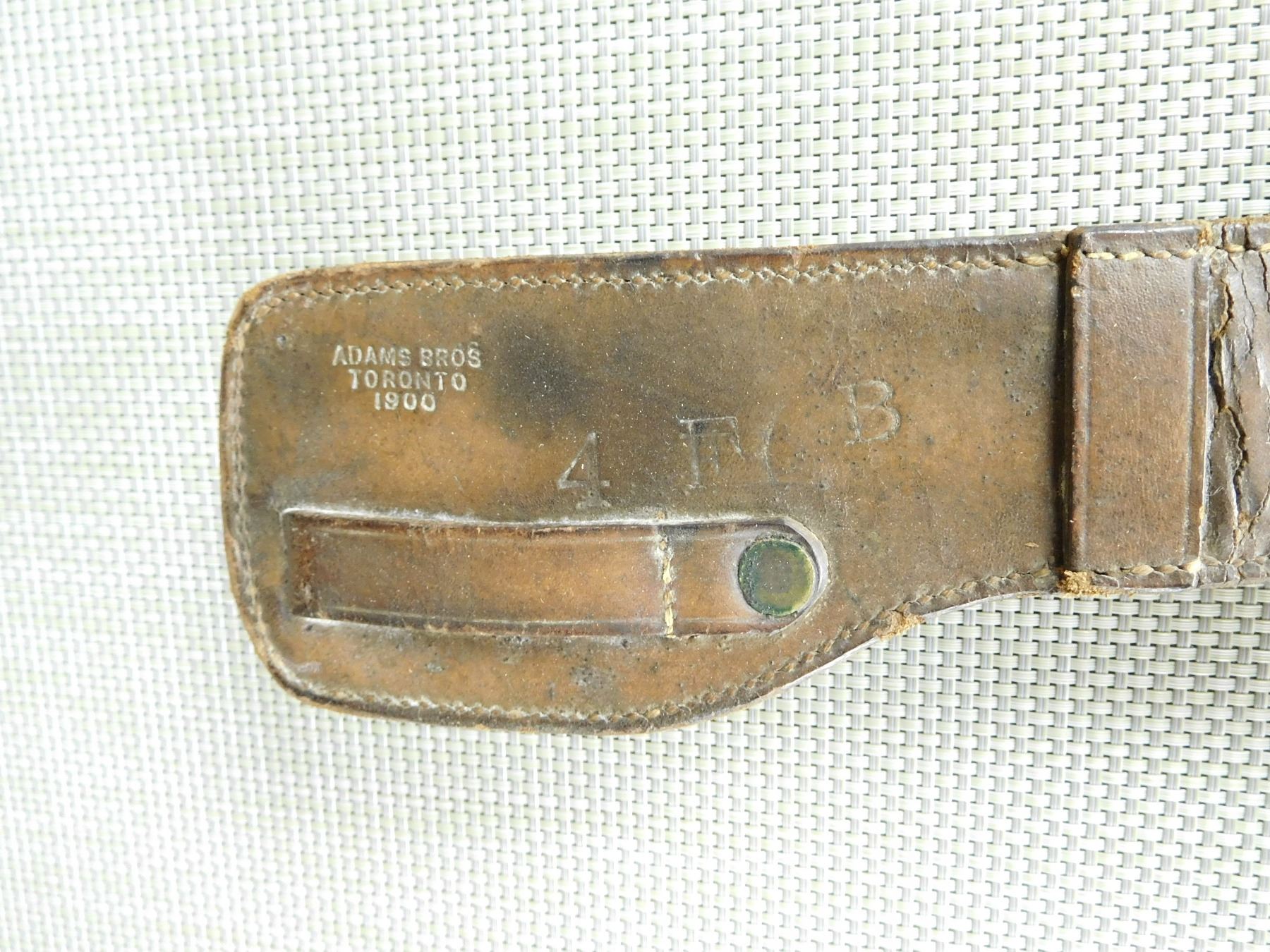 STAMPED ADAMS BROS. TORONTO 1900, THIS LEATHER SCABBARD HAS STRAPS FOR HORSE MOUNTING, VERY LIKELY A BOER WAR FIREARM, HAS COPPER RIVETS, STICHING IS INTACT, SHOWS NUMEROUS HANDLING MARKS, VERY RARE FIND , SERIAL # , ACTION: , BARREL LENGTH: , CONDITION: , STOCK # , CLASS: CANADIAN ANTIQUE CLASS