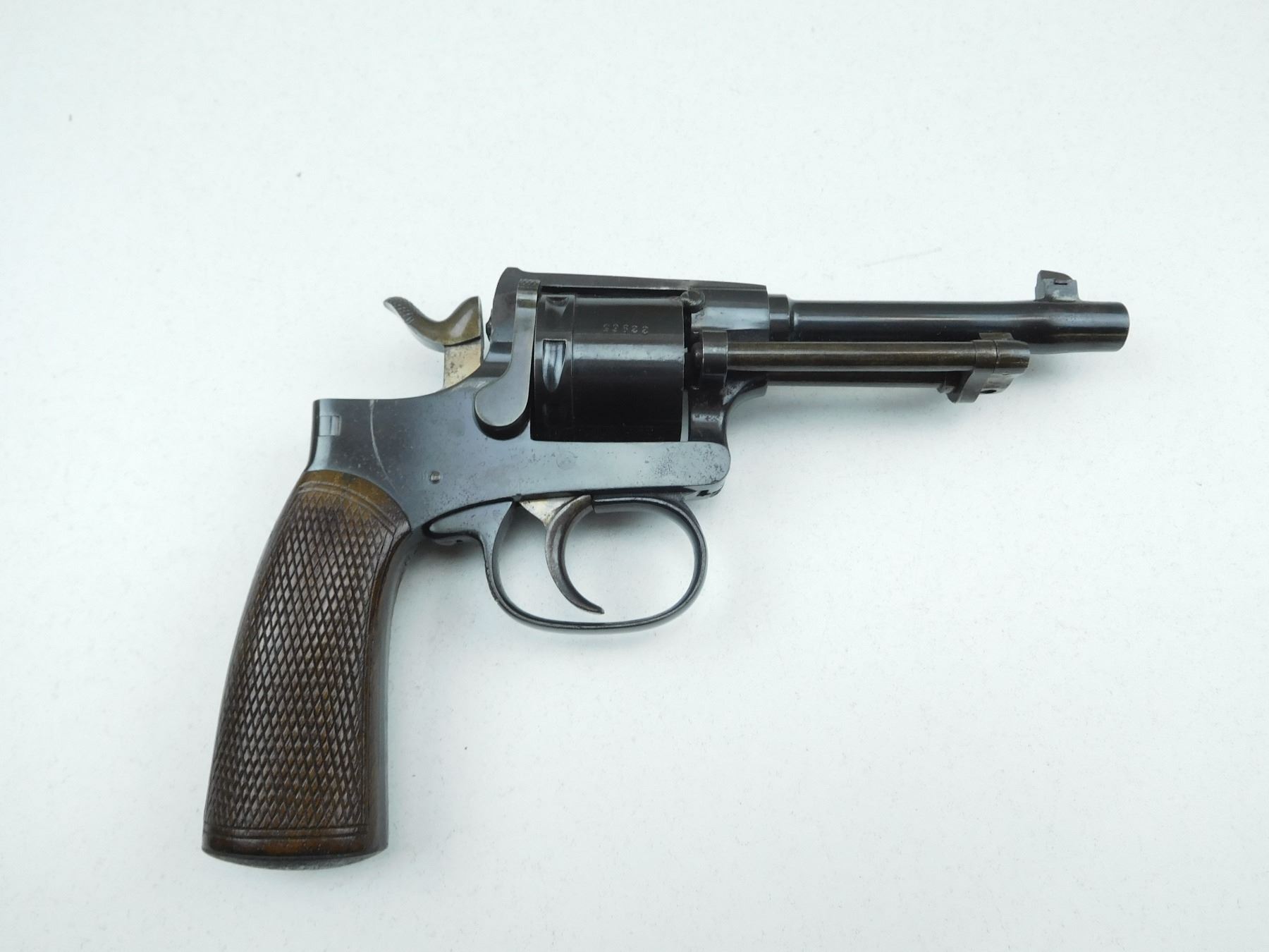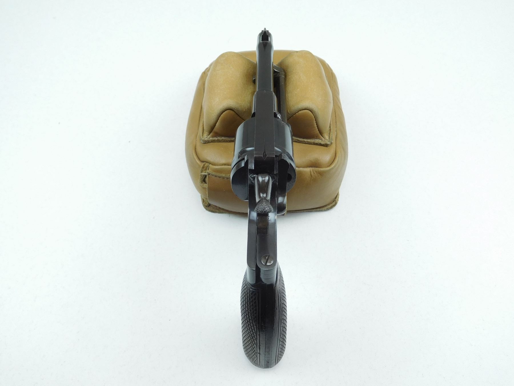 DEACTIVATED PLUGGED BARREL, AND WELDED ACTION, RAISED RAMP FRONT SIGHT AND GROOVED RECEIVER REAR SIGHT, CHECKERED WOOD GRIPS, MISSING THE LANYARD LOOP, SHOWS VERY LITTLE HANDLING MARKS , SERIAL # 22965 , ACTION: REVOLVER , BARREL LENGTH: 116MM , CONDITION: DEACTIVATED 8/10 , STOCK # , CLASS: CANADIAN DEACTIVATED