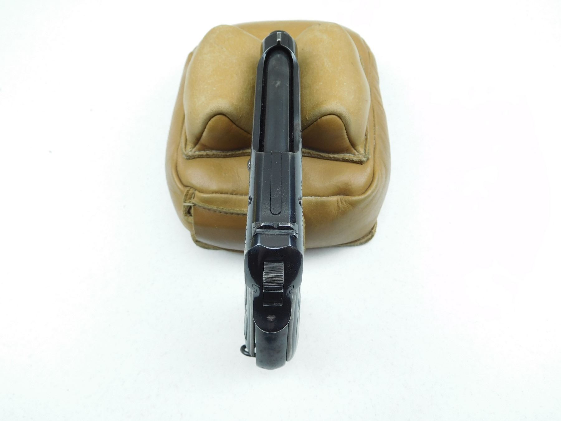 COMES WITH MAGAIZNE AND ORIGINAL MILITARY STYLE HOLSTER, DEACTIVATED PLUGGED BARREL, AND WELDED ACTION,ORIGINAL PLASTIC GRIPS, LANYARD LOOPS, RETAINS MOST OF THE ORIGINAL BLUEING, SHOWS VERY LITTLE HANDLING MARKS, BLADE FRONT AND NOTCHED REAR SIGHT , SERIAL # F66-735 , ACTION: SEMI AUTOMATIC HANDGUN , BARREL LENGTH: 95MM , CONDITION: DEACTIVATED 8/10 , STOCK # , CLASS: CANADIAN DEACTIVATED