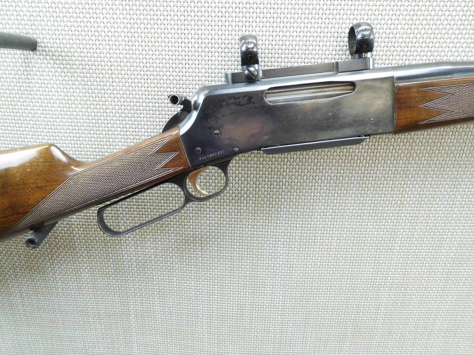 COMES WITH MAGAZINE, GOOD BORE, BROWNING RING AND SCOPE RAIL ATTACHED, MARKED MADE IN JAPAN, CHECKERED FOREND AND STRAIGHT GRIP STOCK, ORIGINAL RUBBER RECOIL PAD, BLADE FRONT AND ABSENT REAR SIGHT, KNURLED HAMMER EXTENSION, MOTTLED METAL FINISH, SLING SWIVEL STUDS , SERIAL # 24116NX327 , ACTION: LEVER ACTION RIFLE , BARREL LENGTH: 24" , CONDITION: 6/10 , STOCK # 7465 , CLASS: CANADIAN NON RESTRICTED CLASS