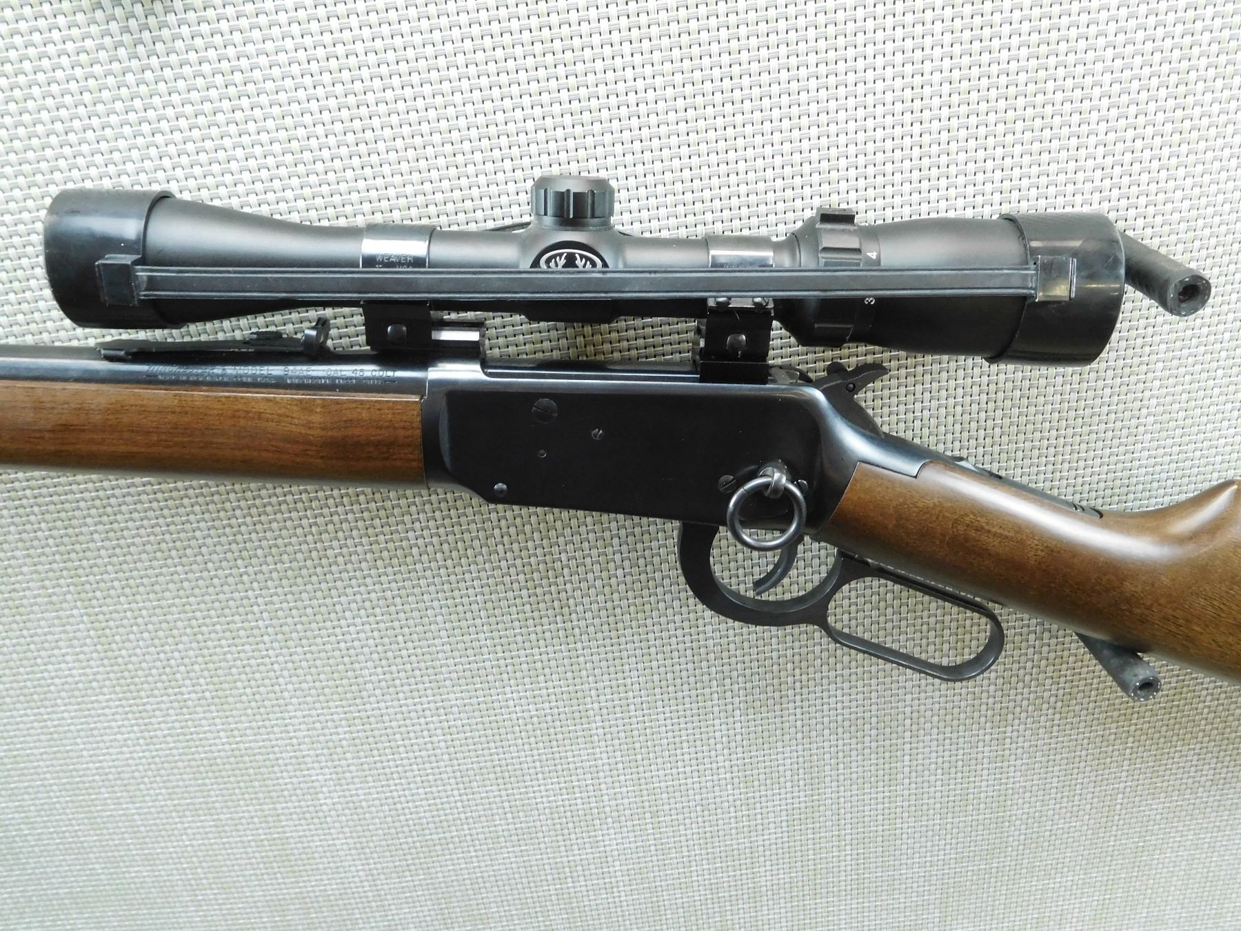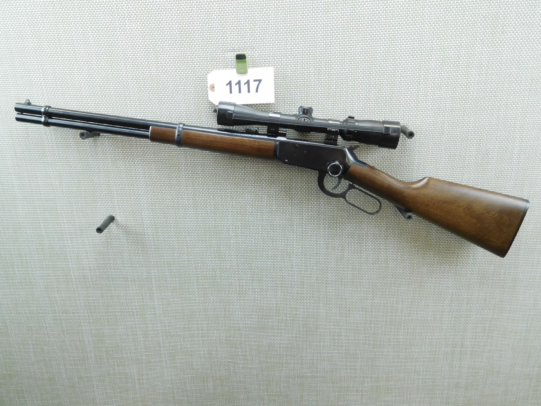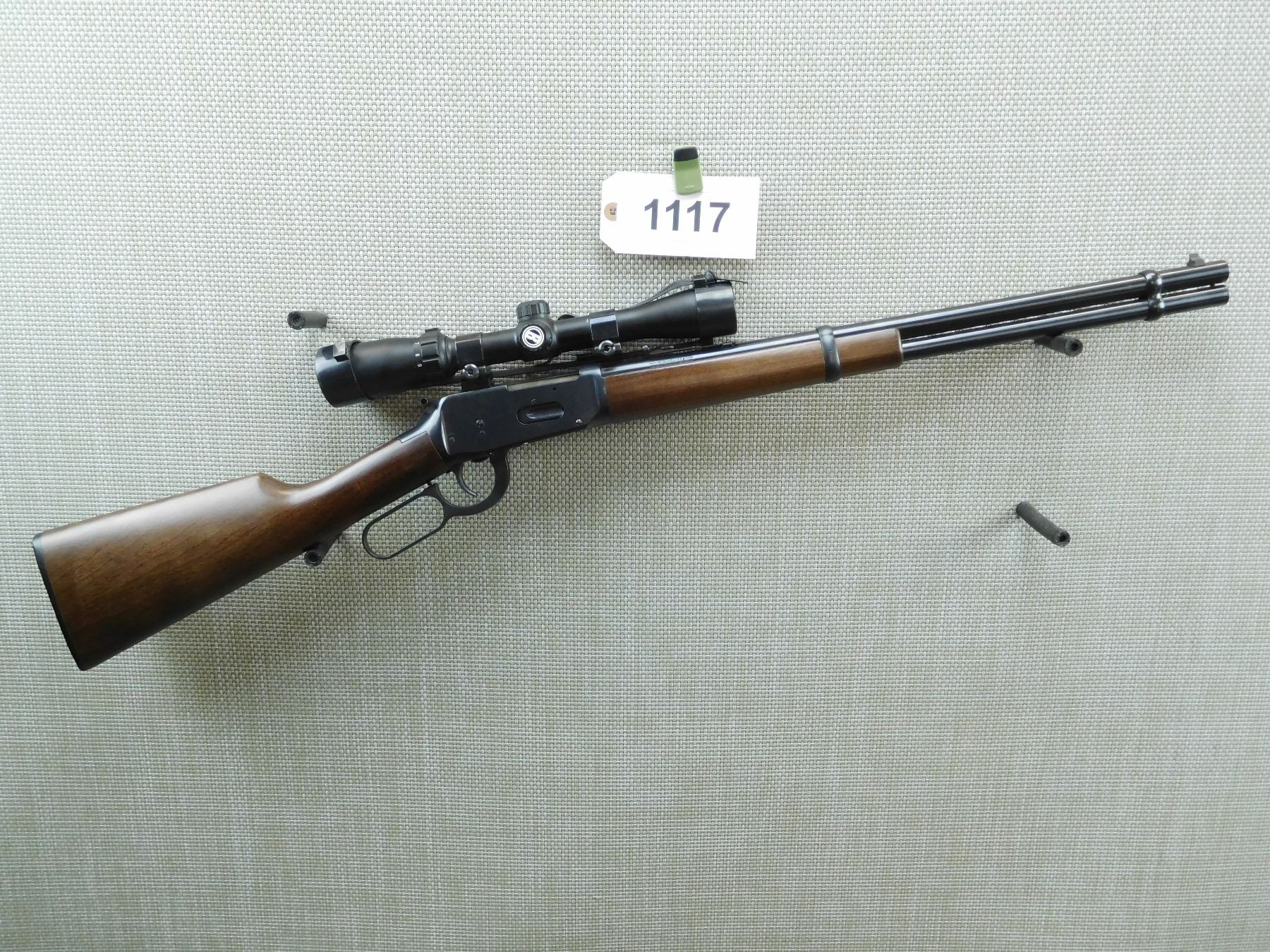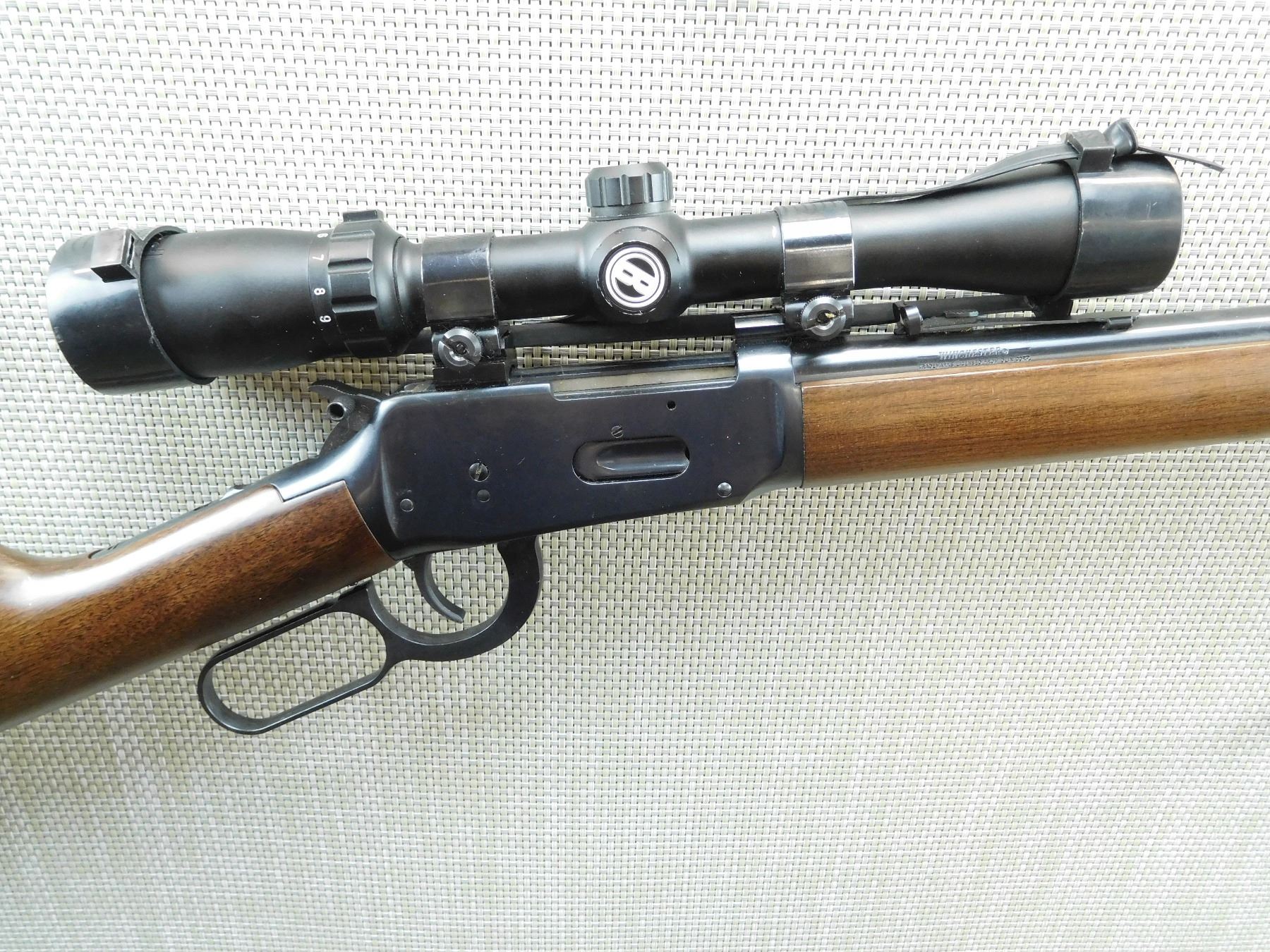 FEATURES SADDLE RING, BUSHNELL SCOPE 3 - 9, DOVETAIL FRONT AND ADJUSTABLE REAR SIGHT, EXCELLENT BORE , SERIAL # 6546782 , ACTION: LEVER ACTION RIFLE , BARREL LENGTH: 20" , CONDITION: 8/10 , STOCK # 7473 , CLASS: CANADIAN NON RESTRICTED CLASS