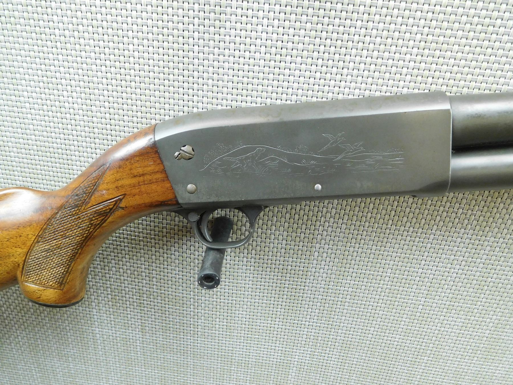 GOOD BORE, WHITE BEAD FRONT SIGHT, EXTERNAL ADJUSTABLE CHOKE WITH MUZZLE BREAK, CAPPED PISTOL GRIP AND BUTT STOCK WITH VENTITLATED RUBBER RECOIL PAD, GREY FINISH, SHOWS SOME HANDLING MARKS, SMALL CRACK ABOVE TRIGGER GUARD, GOOD BORE , SERIAL # 4888854 , ACTION: PUMP ACTION SHOTGUN , BARREL LENGTH: 28" , CONDITION: 5/10 , STOCK # 7482 , CLASS: CANADIAN NON RESTRICTED CLASS
