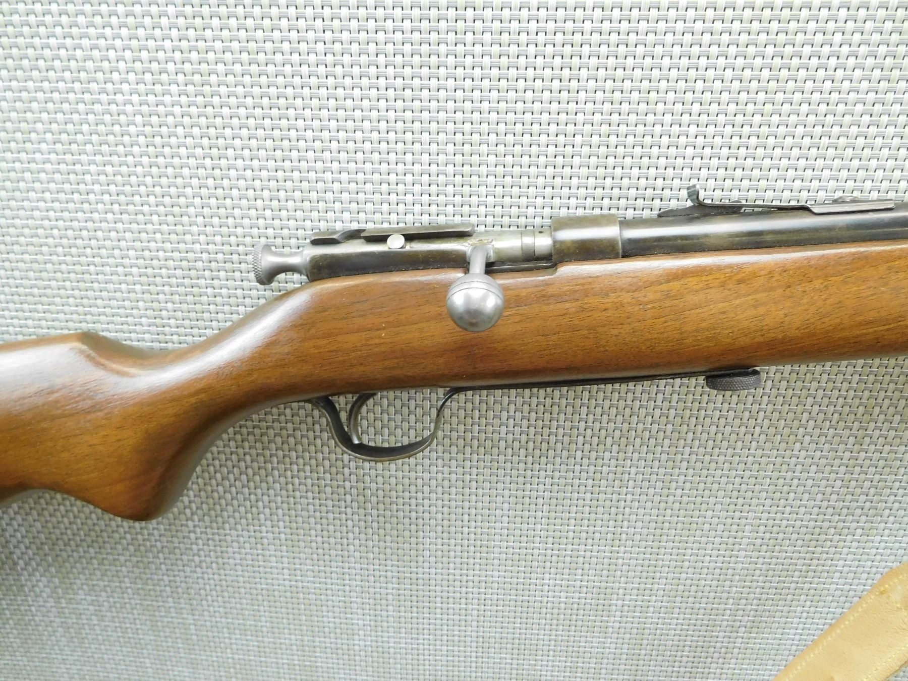RECEIVER IS DRILLED FOR A SCOPE MOUNT, BORE IS DARK, SLING SWIVELS WITH LEATHER SLING, DOVETAIL FRONT AND ADJUSTABLE REAR SIGHT , SERIAL # 457 , ACTION: BOLT ACTION RIFLE , BARREL LENGTH: 24" , CONDITION: 6/10 , STOCK # 7496 , CLASS: CANADIAN NON RESTRICTED CLASS
