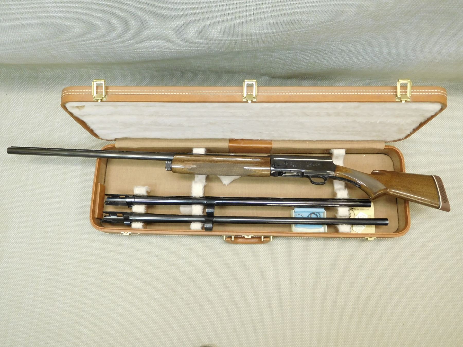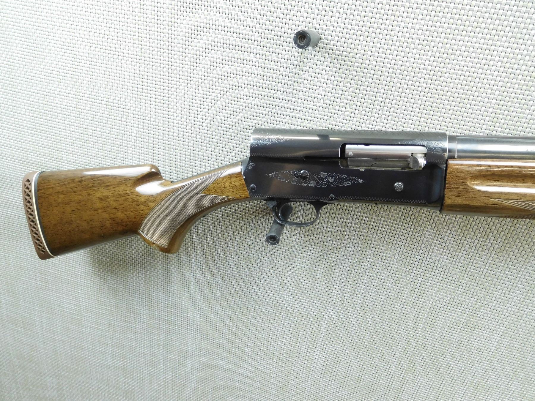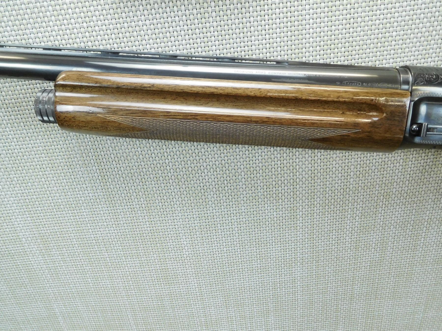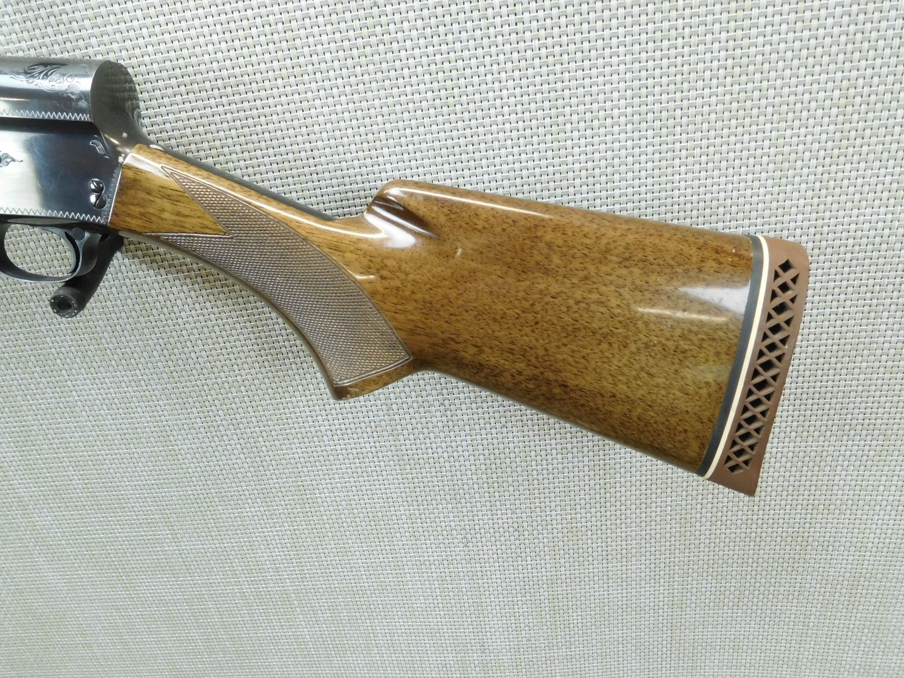 COMES CASED WITH 3 BARRELS AND 12 GA FRICTION RINGS IN THE CASE, THE FIREARM HAS THE 12GA X 3" 32" BARREL ATTACHED, FIXED FULL CHOKE, VENTED RIB BARREL WITH FRONT BEAD SIGHT, BORE IS EXCELLENT, BELGIAN MADE, RICHLY ENGRAVED RECEIVER, CHECKERED FOREND AND SEMI PISTOL GRIP BUTT STOCK WITH VENTED RUBBER RECOIL PAD, 2ND BARREL IS 12GA X 3 " X 28" WITH FULLY VENTED RIB, FIXED MODIFIED CHOKE AND A BEAD FRONT SIGHT, THE 3RD BARREL IS 12GA X 3" 30" EXCELLENT BORE, BARREL WITH A RAISED BEAD FRONT SIGHT FIXED FULL CHOKE, BORE IS EXCELLENT , SERIAL # 72V18013 , ACTION: SEMI AUTOMATIC SHOTGUN , BARREL LENGTH: VARIOUS , CONDITION: 8/10 , STOCK # 7504 , CLASS: CANADIAN NON RESTRICTED CLASS