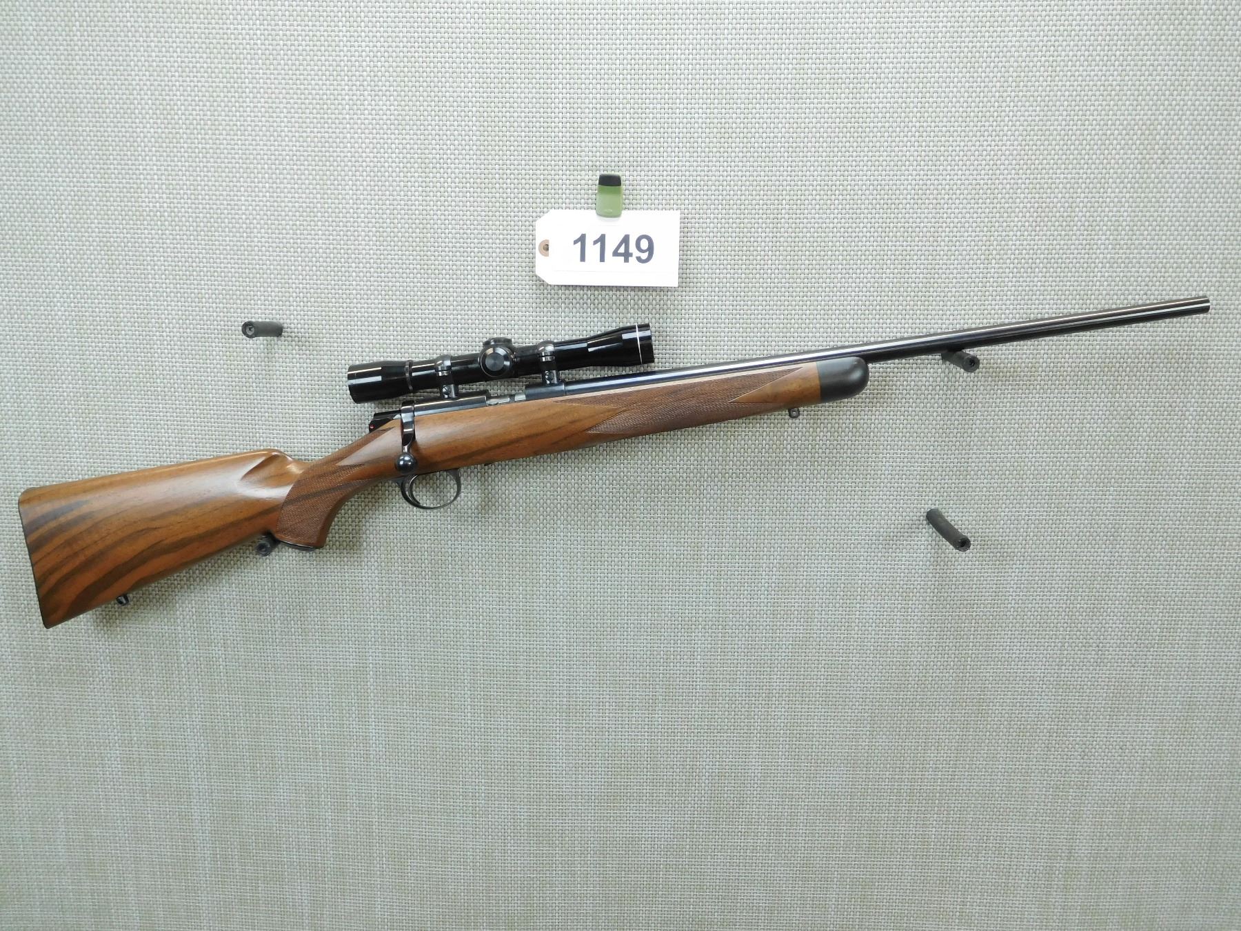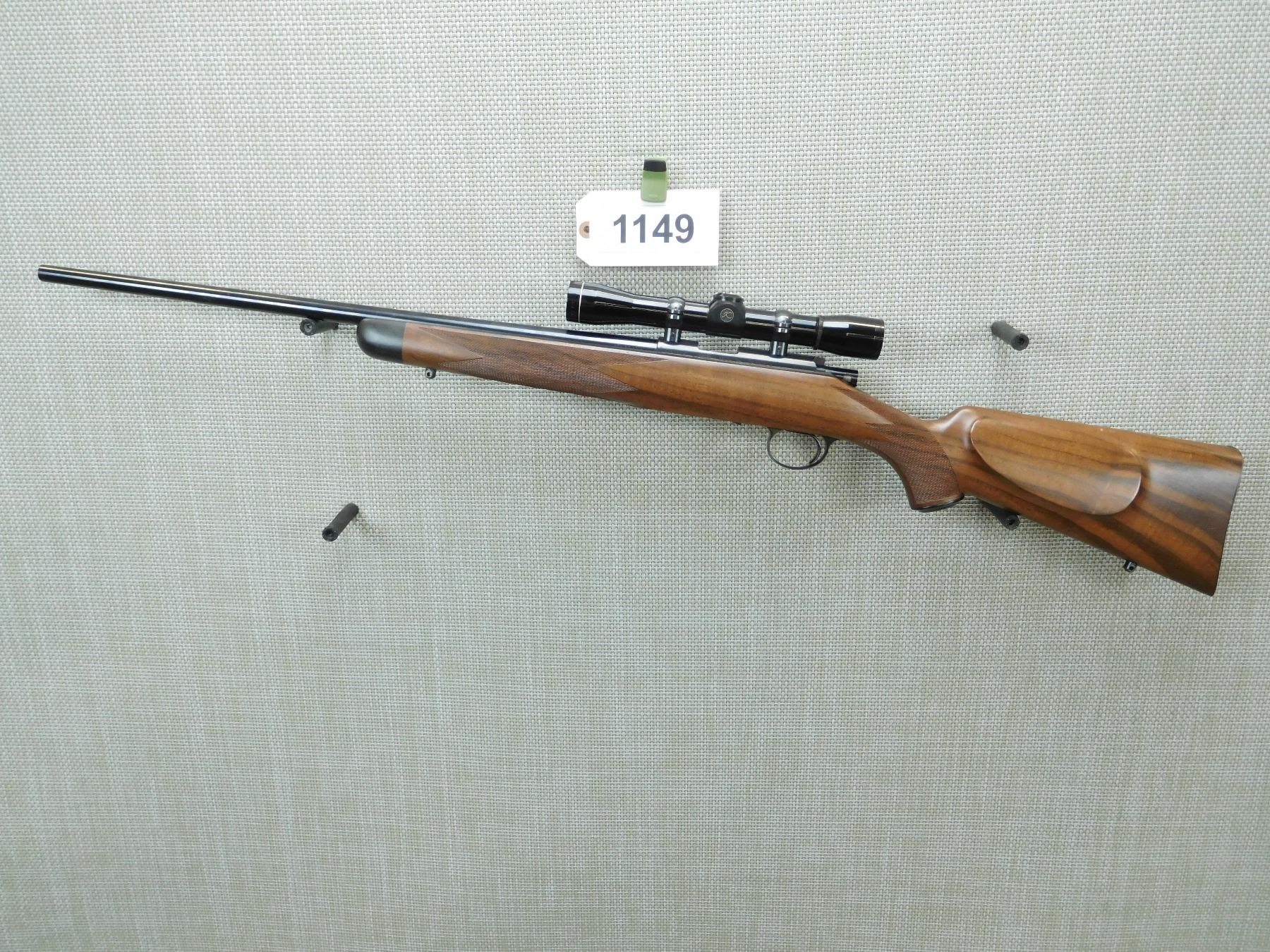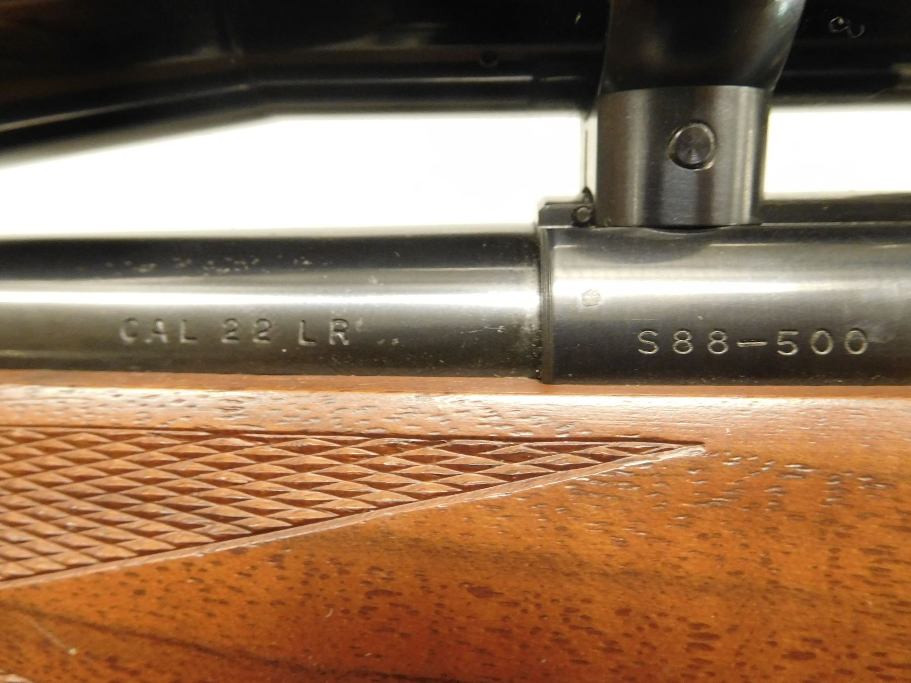 DOES NOT COME WITH MAGAZINE, MANUFACTURED BY KIMBER OREGON, HAS A 4 X KIMBER SCOPE, DOES NOT HAVE SIGHTS, VERY GOOD BORE, SLING SWIVEL STUDS, CHECKERED FOREND AND CAPPED PISTOL GRIP BUTT STOCK WITH STEEL BUTT PLATE , SERIAL # S88500 , ACTION: BOLT ACTION , BARREL LENGTH: 22" , CONDITION: 8/10 , STOCK # 7505 , CLASS: CANADIAN NON RESTRICTED CLASS