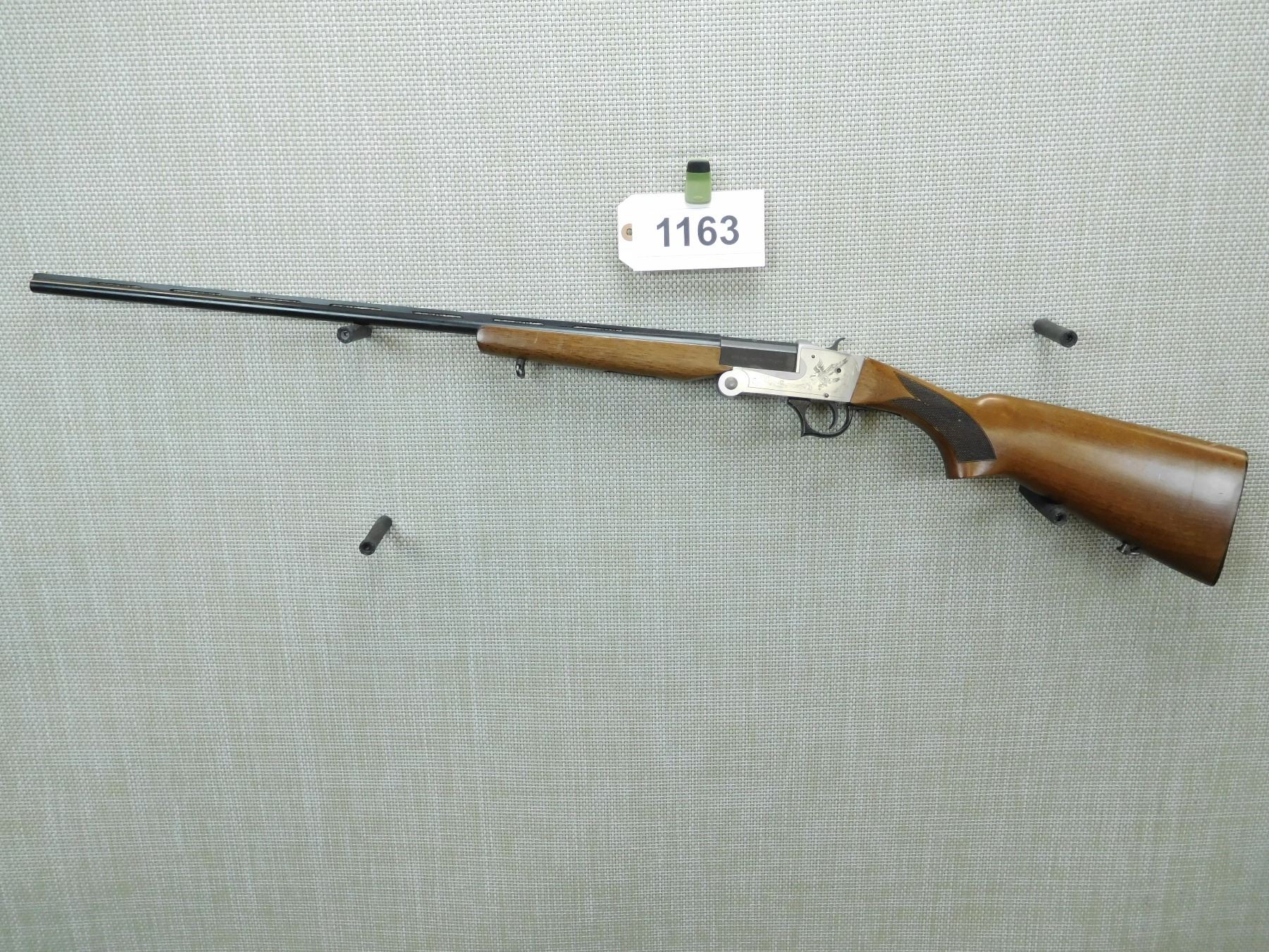 BEAD FRONT AND VENTED RIB BARREL , SLING SWIVELS, FOLDS DIRECTLY IN 1/2 FOR EASY TRANSPORT, 2 TONE FINISH, SHOW SOME HANDLING MARKS, BORE IS EXCELLENT , SERIAL # 11221833 , ACTION: BREAK ACTION FOLDING SHOTGUN , BARREL LENGTH: 26" , CONDITION: 8/10 , STOCK # 7519 , CLASS: CANADIAN NON RESTRICTED CLASS