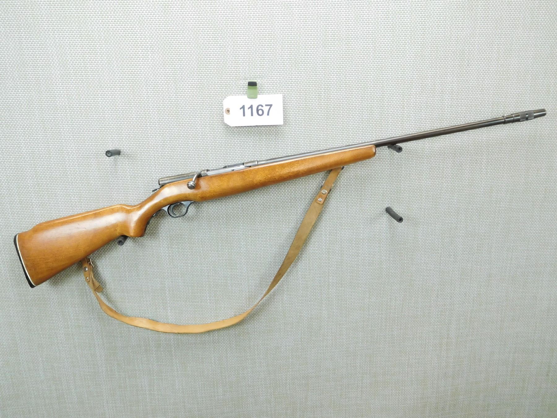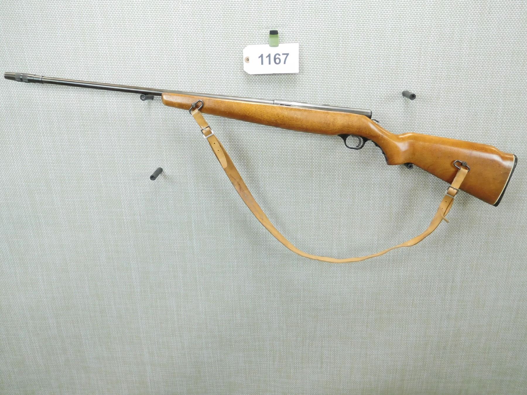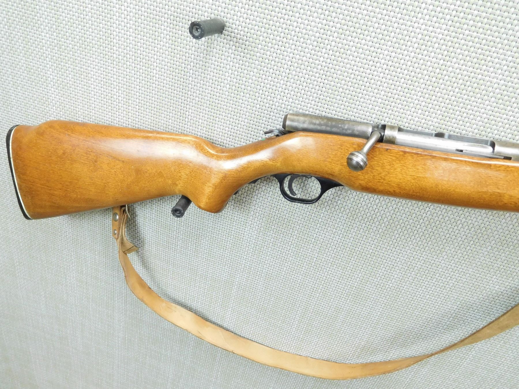 EXTERNAL ADJUSTABLE CHOKE, VERY GOOD BORE, SLING SWIVELS WITH LEATHER SLING, INTERNAL BOX MAGAZINE, PLASTIC BUTT PLATE WITH WHITE LINE SPACER, WORN FINISH , SERIAL # N/A , ACTION: BOLT ACTION RIFLE , BARREL LENGTH: 24" , CONDITION: 6/10 , STOCK # 7523 , CLASS: CANADIAN NON RESTRICTED CLASS