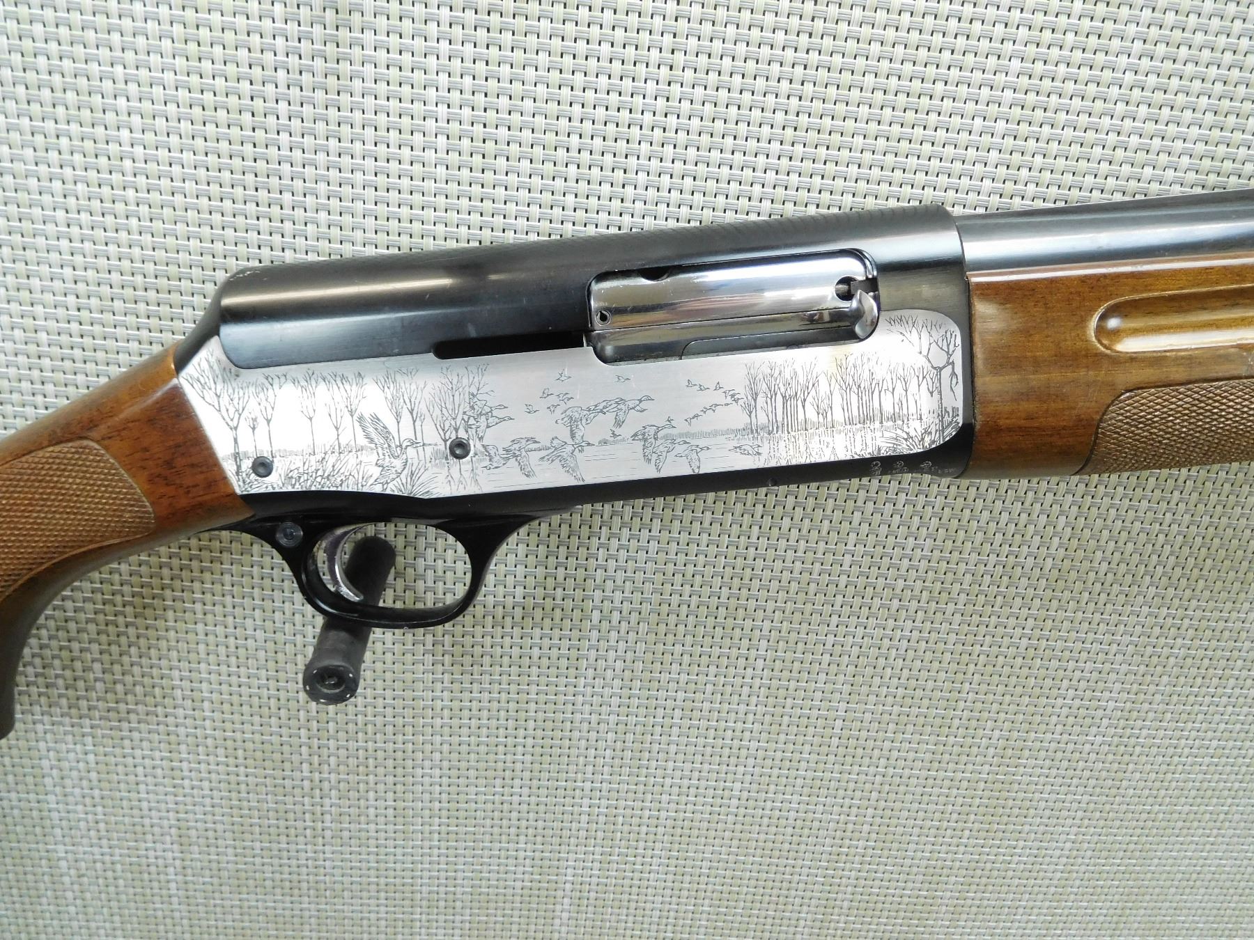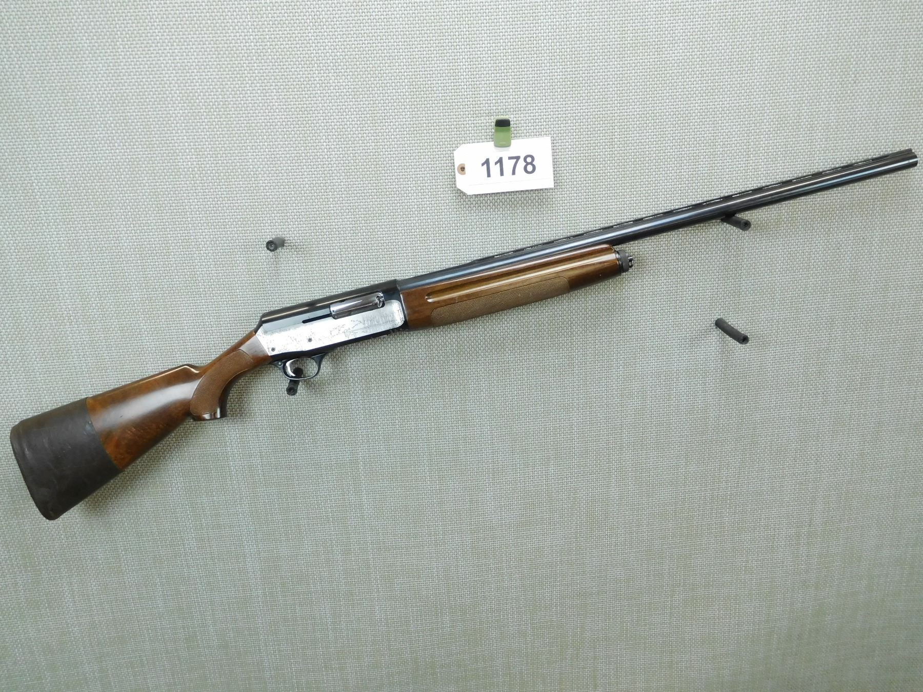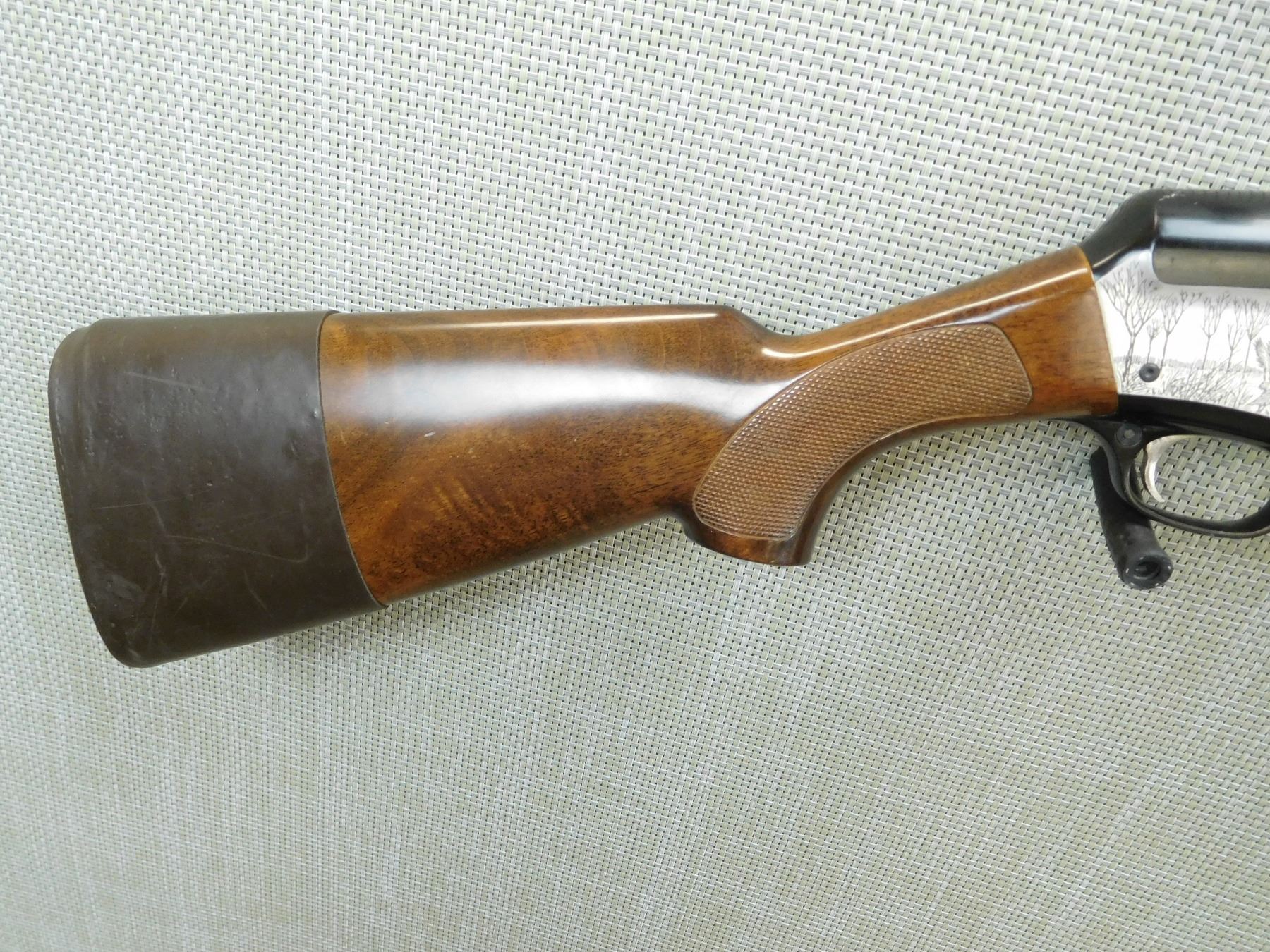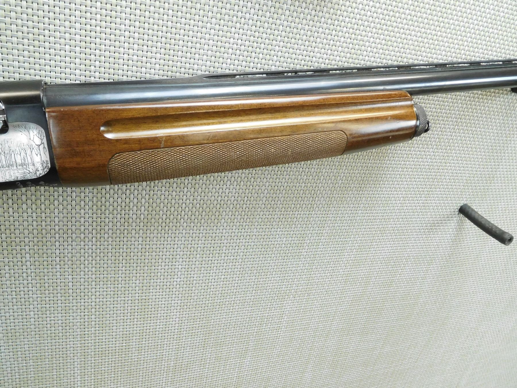 COMES WITH BOX, FIXED FULL CHOKE, BORE IS VERY GOOD, BEAD FRONT SIGHT ON VENTED RIB BARREL, ENGRAVED TWO TONE RECEIVER FRAME, CHECKERED FOREND AND SEMI PISTOL GRIP FORESTOCK WITH RUBBER BUTT COVER , SERIAL # B26608 , ACTION: SEMI AUTOMATIC SHOTGUN , BARREL LENGTH: 28" , CONDITION: 7/10 , STOCK # 7534 , CLASS: CANADIAN NON RESTRICTED CLASS