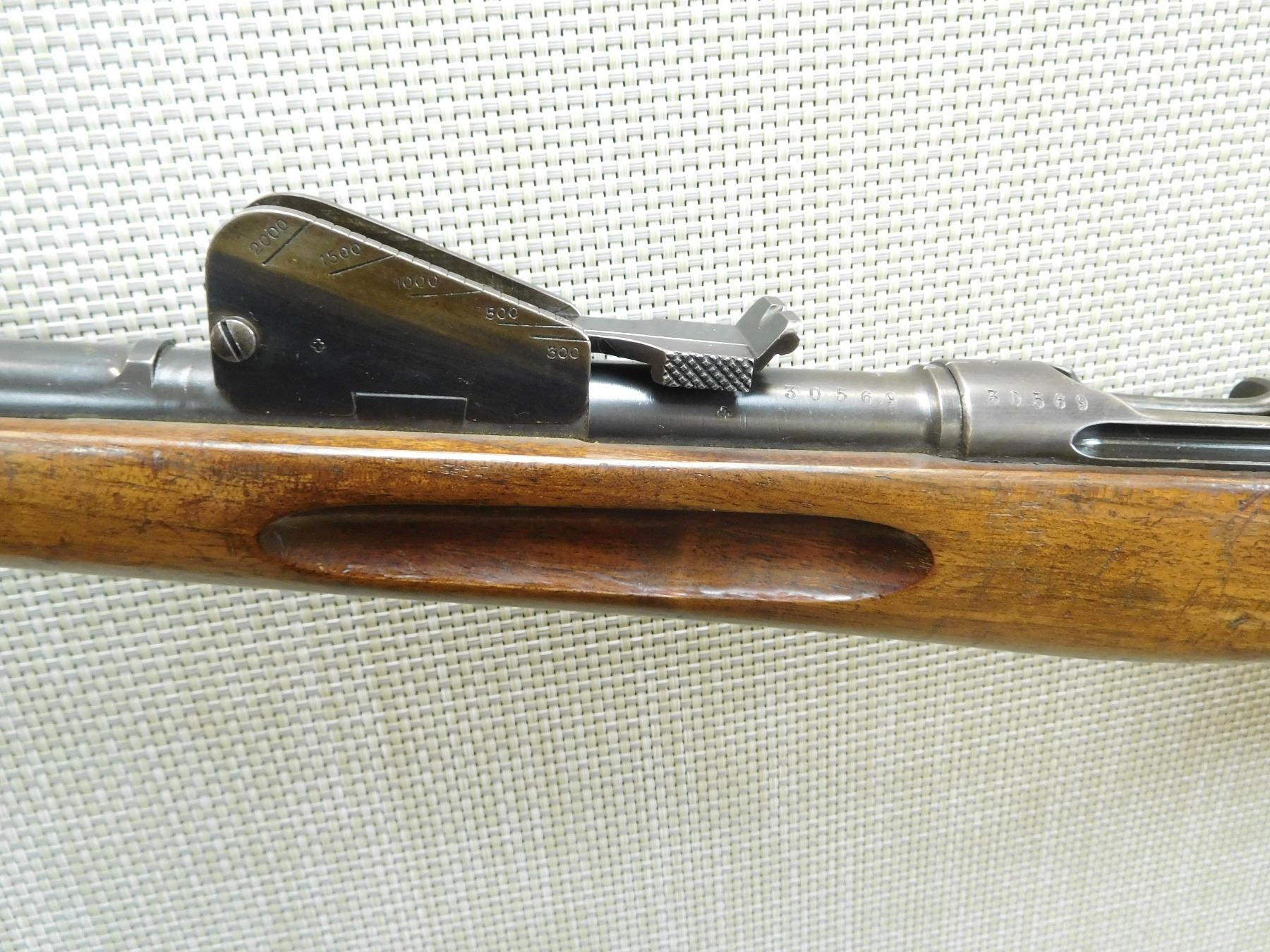 DOES NOT COME WITH MAGAZINE, BORE IS VERY GOOD, RAISED BLOCK FRONT SIGHT AND ORIGINAL MILITARY REAR SIGHT, STEEL BUTT PLATE, SLING SWIVELS , SERIAL # 30569 , ACTION: BOLT ACTION RIFLE , BARREL LENGTH: 22" , CONDITION: 6/10 , STOCK # 7545 , CLASS: CANADIAN NON RESTRICTED CLASS