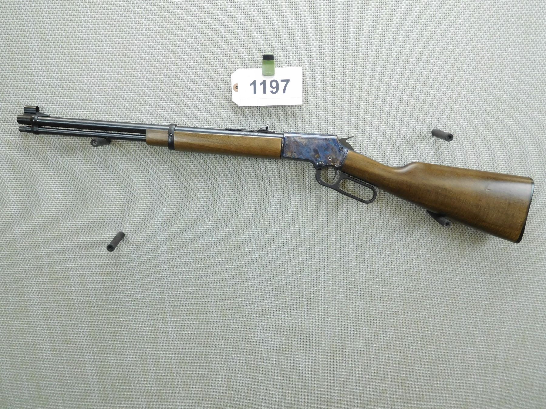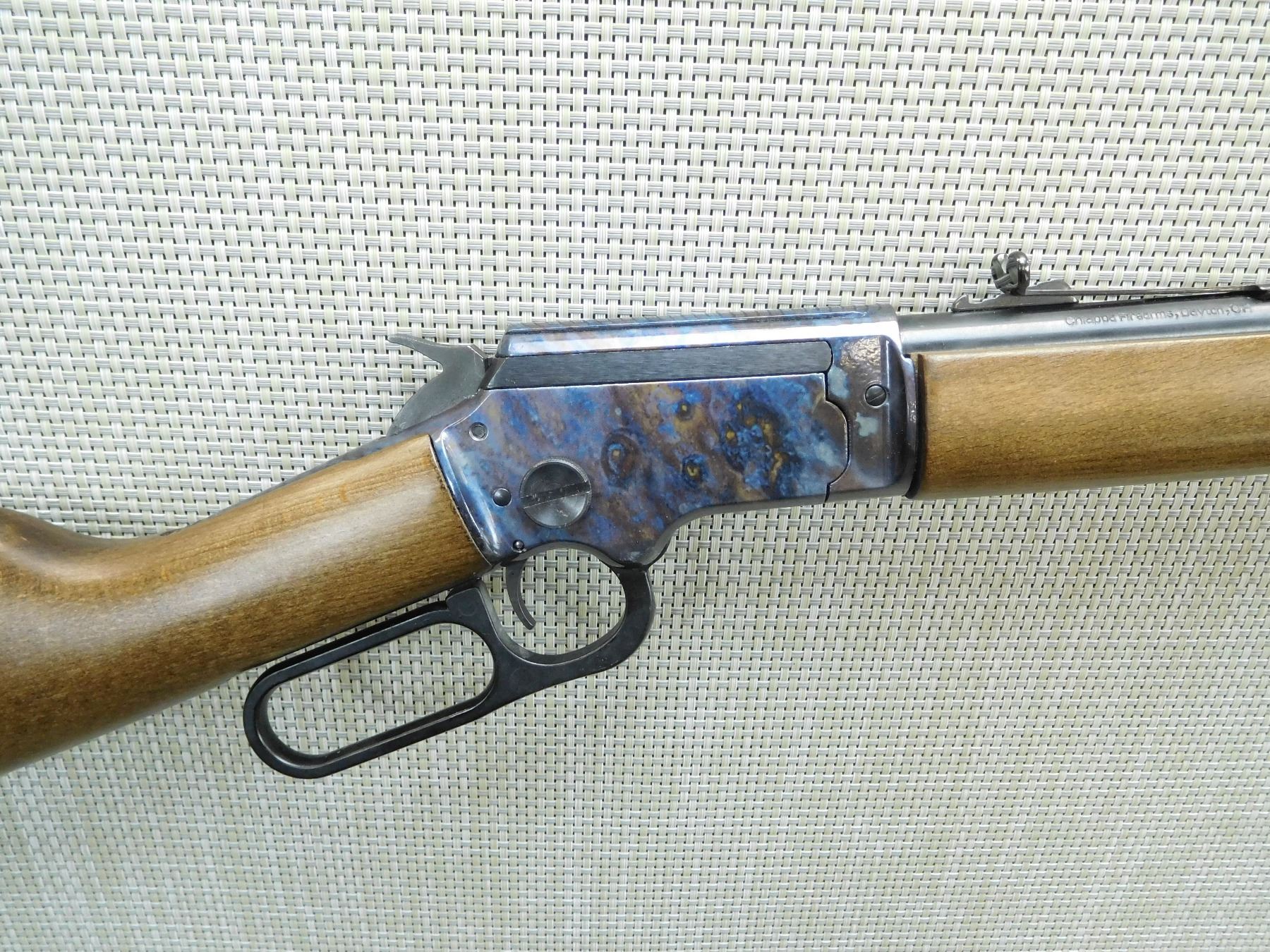 AS NEW, BORE IS EXCELLENT, HOODED FRONT SIGHT AND FULLY ADJUSTABLE REAR SIGHT, TAKE DOWN FEATURE, APPLIED CASE HARDENING, PLASTIC BUTT PLATE, NO HANDLING MARKS , SERIAL # 15A02680 , ACTION: LEVER ACTION RIFLE , BARREL LENGTH: 19" , CONDITION: NEW , STOCK # 7553 , CLASS: CANADIAN NON RESTRICTED CLASS