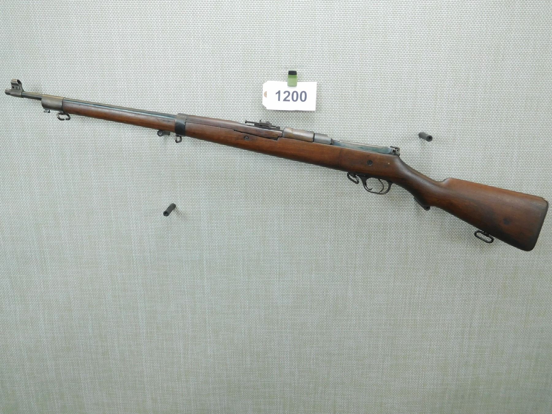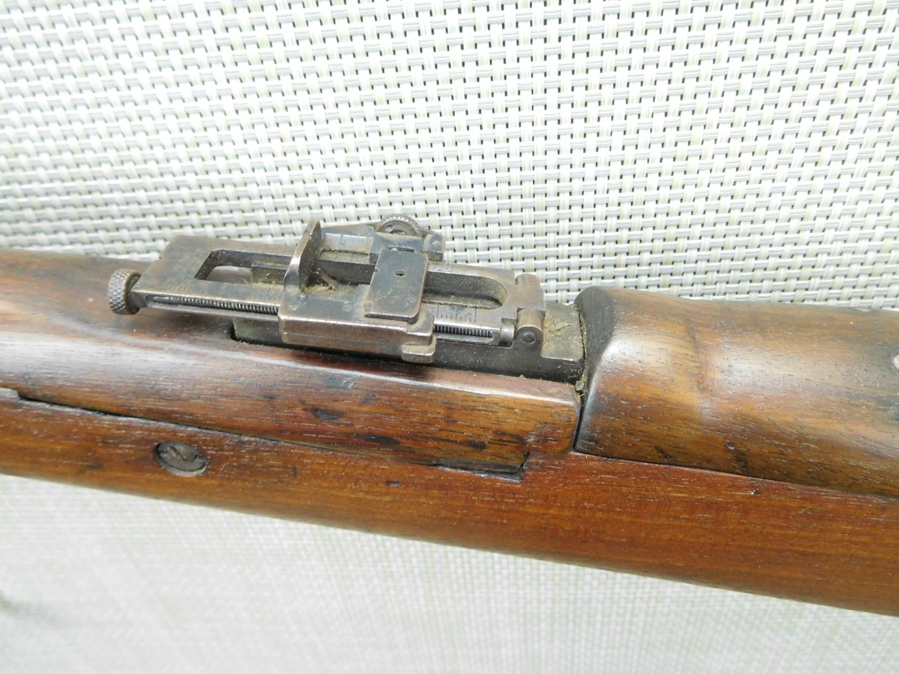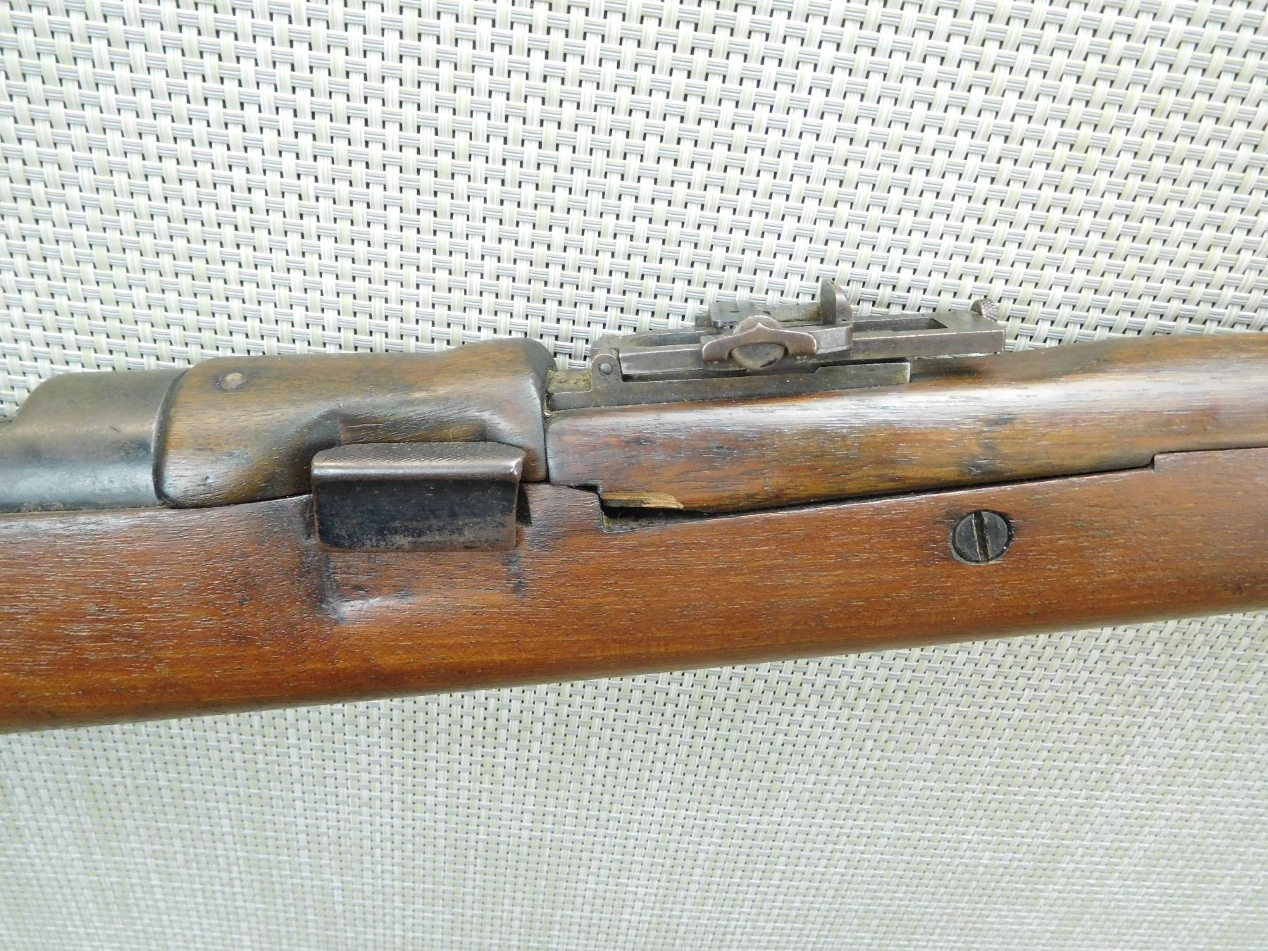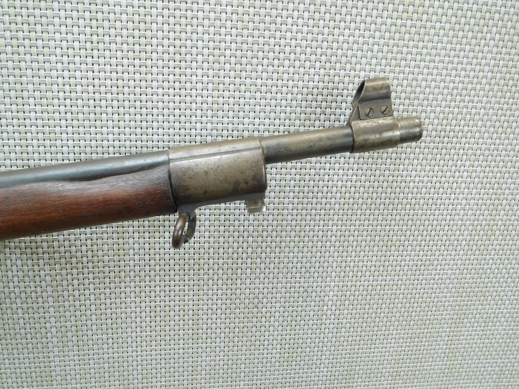 MADE IN 1909, MODEL AND SERIAL # AND YEAR OF MANUFACTURE STILL VISIBLE ON THE STOCK WHICH IS VERY RARE, HOODED FRONT AND ADJUSTABLE REAR SIGHT, SMALL CHIP ON THE FOREND CAP AS WELL AS THE FRONT FOREND, SLING SWIVELS, SHOWS SOME HANDLING MARKS, BORE IS VERY GOOD , SERIAL # 898 , ACTION: BOLT ACTION RIFLE , BARREL LENGTH: 27 1/2" , CONDITION: 7/10 , STOCK # 7556 , CLASS: CANADIAN NON RESTRICTED CLASS