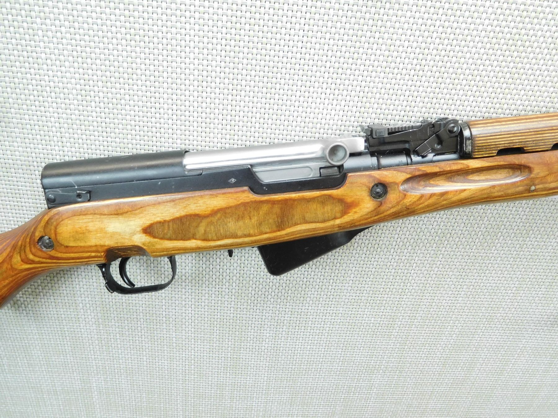 TULA ARSENAL, MANUFACTURED 1952, LAMINATED STOCK, TRIGGER GROUP AND MAGAZINE NUMBER DO NOT MATCH EVERYTHING ELSE DOES, COMES WITH BLADE BAYONET, CLEANING KIT IN THE BUTT AND CLEANING ROD ATTACHED, SHOWS VERY HANDLING MARKS, EXCELLENT BORE, HOODED FRONT AND FULLY ADJUSTABLE REAR SIGHT, RETAINS FULL MILITARY CONFIGURATION , SERIAL # 3561 , ACTION: SEMI AUTOMATIC RIFLE , BARREL LENGTH: 20 1/2" , CONDITION: 8/10 , STOCK # 7565 , CLASS: CANADIAN NON RESTRICTED CLASS