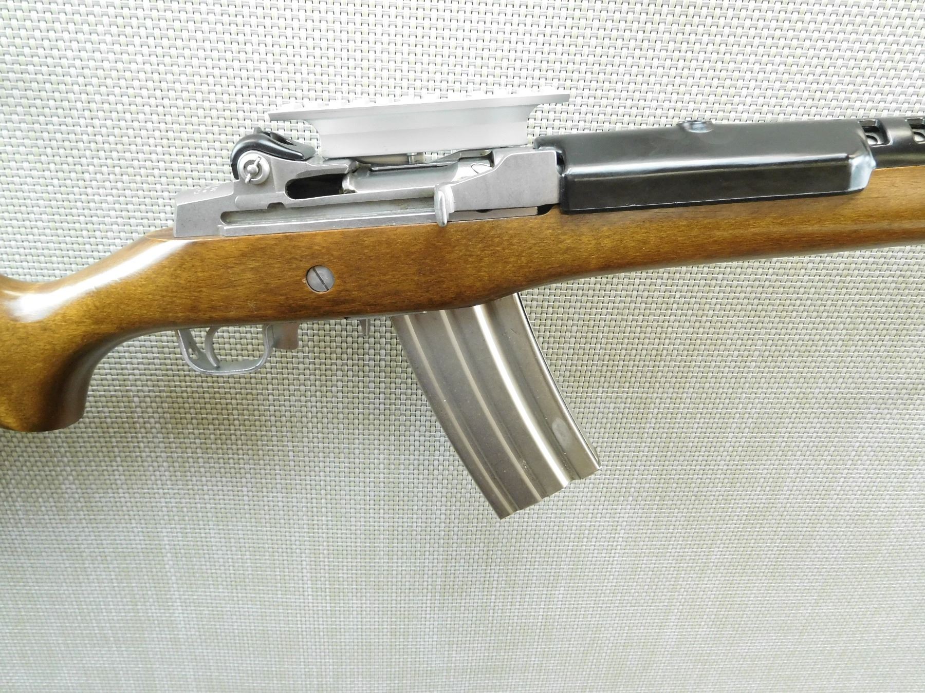 COMES WITH PINNED TO 5 5/30 MAGAZINE, BORE IS VERY GOOD, FLASH HIDER, STAINLESS STEEL FINISH, SLING SWIVELS, STEEL BUTT PLATE, SIDE MOUNTED ACCESSORY RAIL , SERIAL # 18419118 , ACTION: SEMI AUTOMATIC RIFLE , BARREL LENGTH: 18 3/4" , CONDITION: 8/10 , STOCK # 7575 , CLASS: CANADIAN NON RESTRICTED CLASS