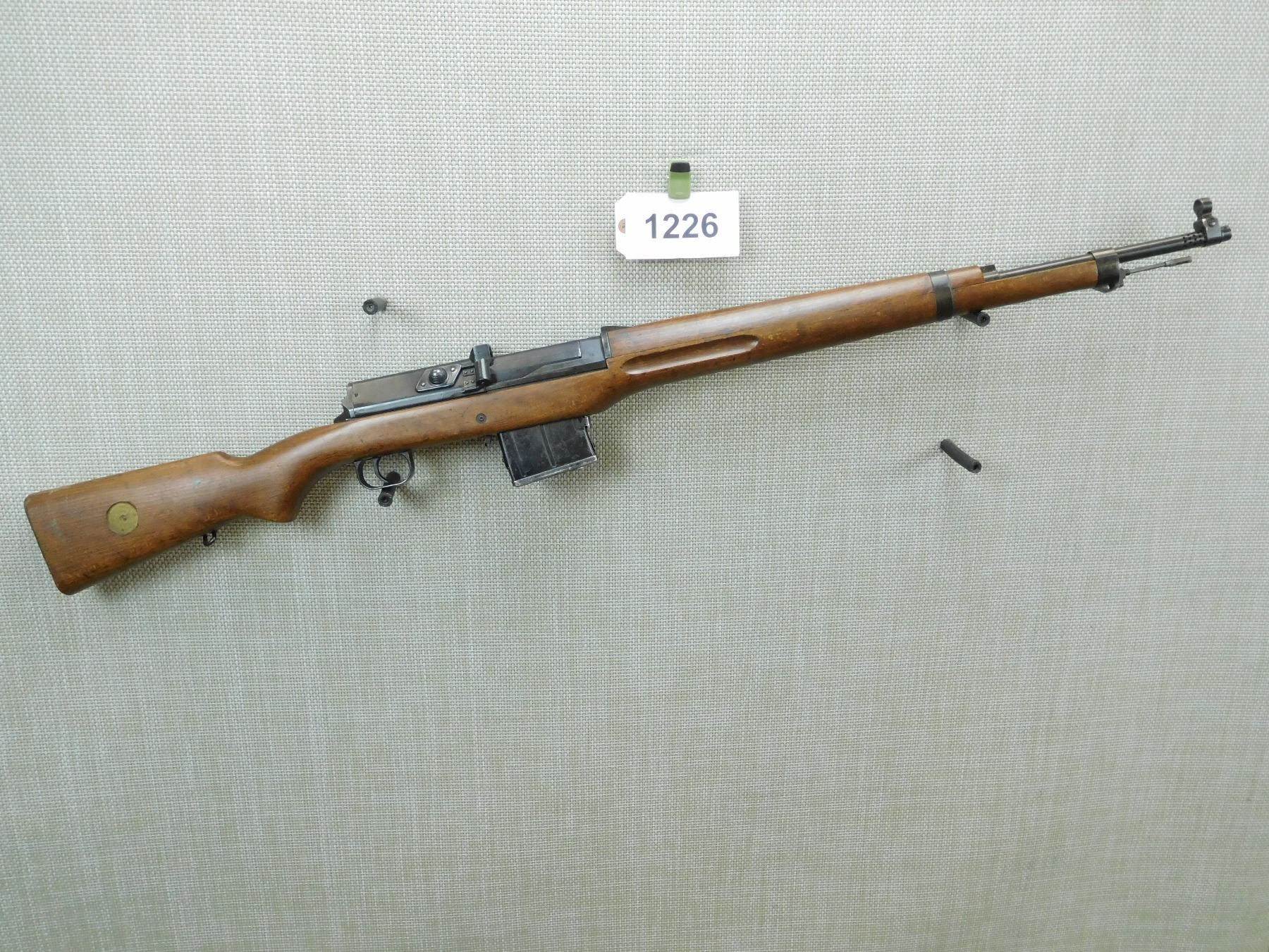 COMES WITH MAGAZINE, WWII ERA MADE IN 1943, RETAINS FULL MILITARY ORIGINAL CONFIGURATION, BORE IS VERY GOOD, DUST COVER , SERIAL # 4380 , ACTION: SEMI AUTOMATIC RIFLE , BARREL LENGTH: 25 1/2" , CONDITION: 8/10 , STOCK # 7582 , CLASS: CANADIAN NON RESTRICTED CLASS