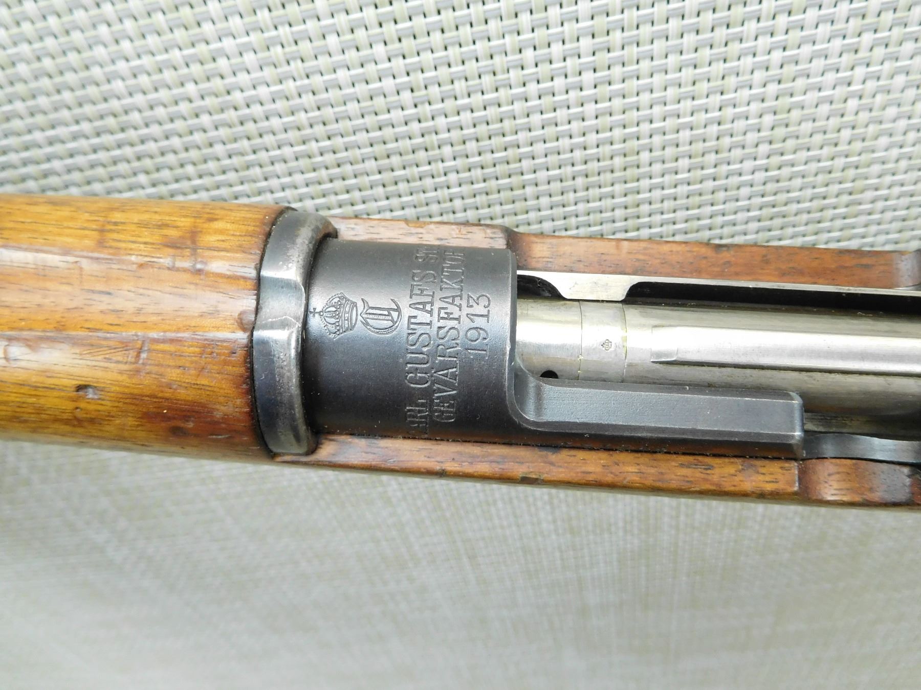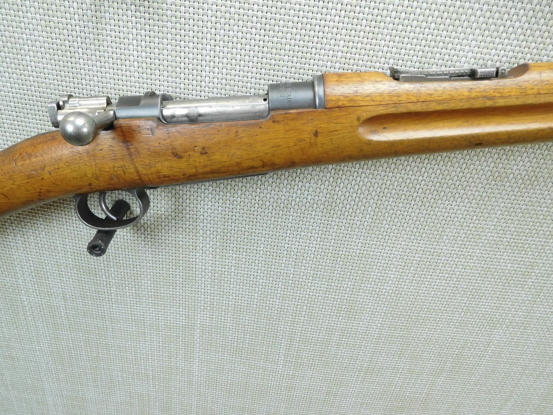MADE IN 1913, SWEDISH, GOOD BORE, RETAINS FULL MILITARY CONFIGURATION, SHOWS SOME HANDLING MARKS, SLING LOOPS, BOLT AND RECEIVER MATCH , SERIAL # 323966 , ACTION: BOLT ACTION RIFLE , BARREL LENGTH: 30" , CONDITION: 7/10 , STOCK # 7585 , CLASS: CANADIAN NON RESTRICTED CLASS