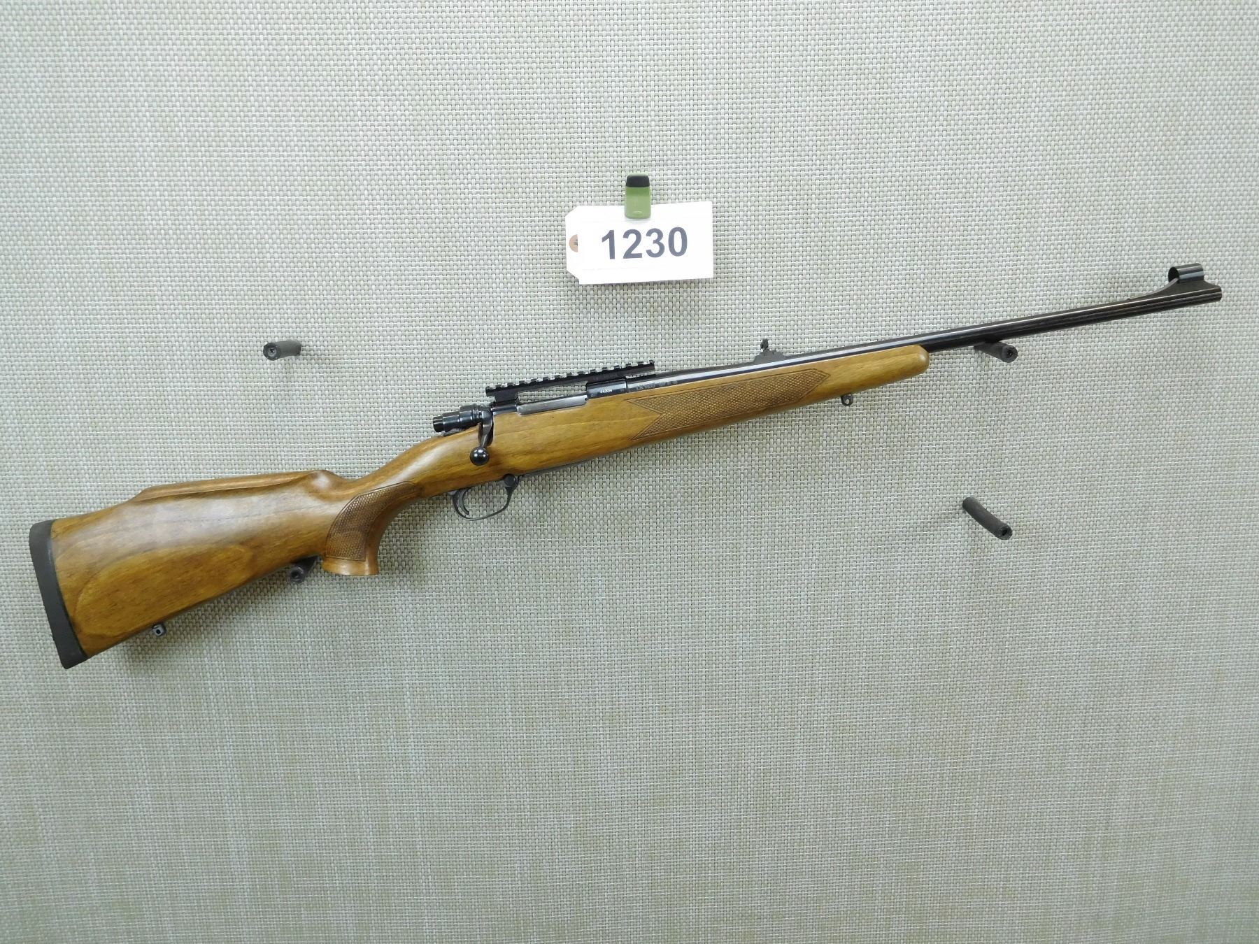 COUNTRY OF MANUFACTURE SERBIA, VERY GOOD BORE, HOODED FRONT SIGHT, AND FLIP ADJUSTABLE REAR SIGHT, EQUIPPED WITH A SCOPE RAIL, SLING SWIVEL STUDS, CHECKERED FOREND AND PISTOL GRIP, RUBBER RECOIL PAD , SERIAL # 44334 , ACTION: BOLT ACTION RIFLE , BARREL LENGTH: 20" , CONDITION: 8/10 , STOCK # 7586 , CLASS: CANADIAN NON RESTRICTED CLASS