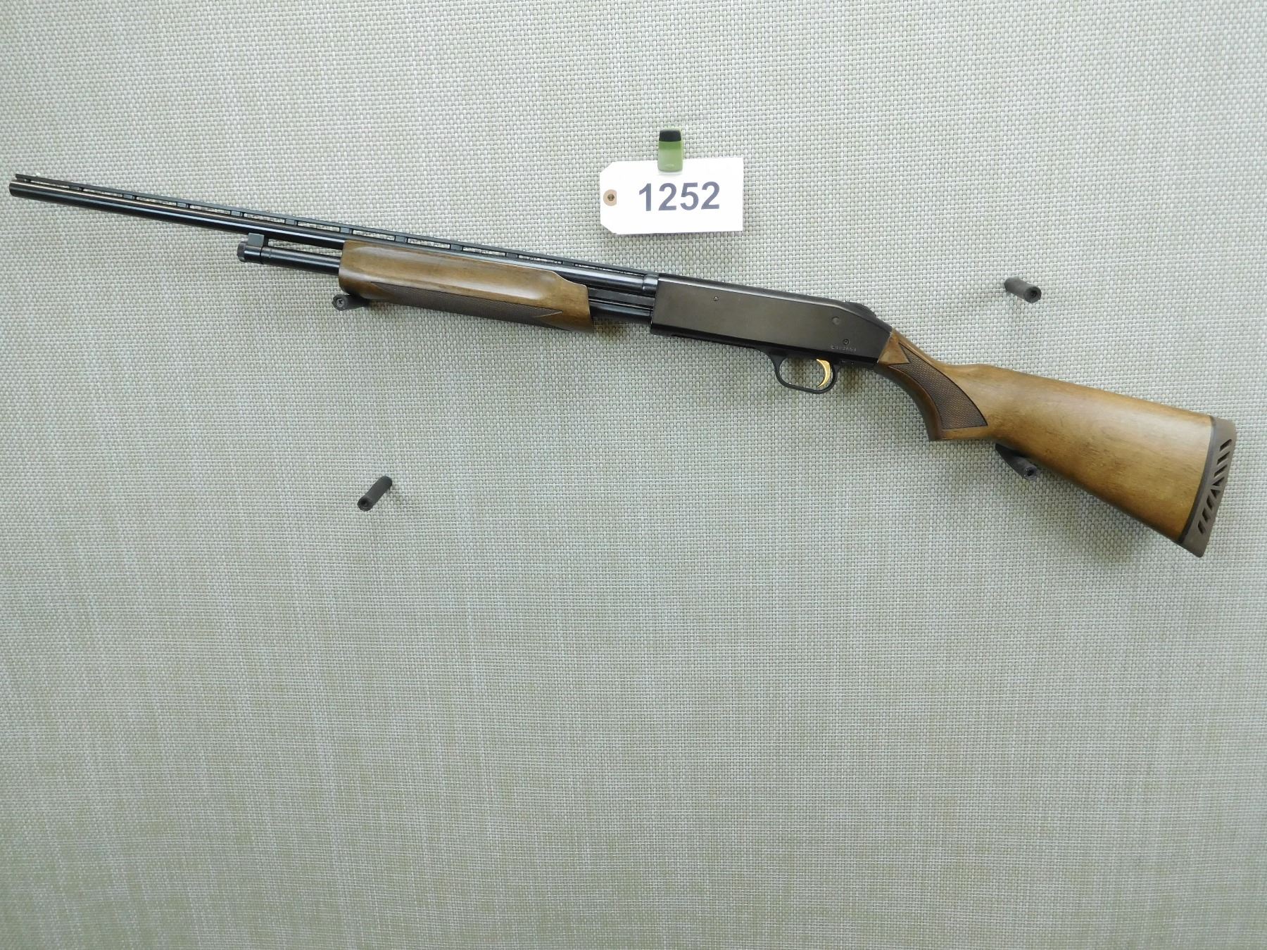 BRAND NEW, FIXED FULL CHOKE, WHITE BEAD FRONT SIGHT AND BRASS MID BEAD ON RAISED VENTED RIB BARREL, PRESSED CHECKERED FORENED AND SEMI PISTOL GRIP FORESTOCK, VENTED RUBBER RECOIL PAD , SERIAL # L472851 , ACTION: PUMP ACTION SHOTGUN , BARREL LENGTH: 24" , CONDITION: NEW , STOCK # 7608 , CLASS: CANADIAN NON RESTRICTED CLASS