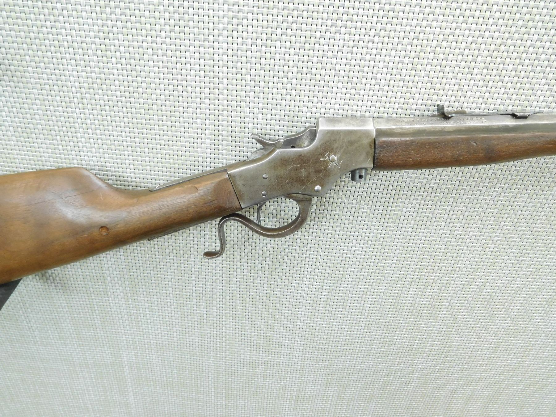 1/2 ROUND 1/2 OCTAGONAL BARREL, BLADE FRONT AND ADJUSTABLE REAR SIGHTS , SERIAL # 714 , ACTION: FALLING BLOCK ACTION , BARREL LENGTH: 22" , CONDITION: 5/10 , STOCK # 7621 , CLASS: CANADIAN NON RESTRICTED CLASS
