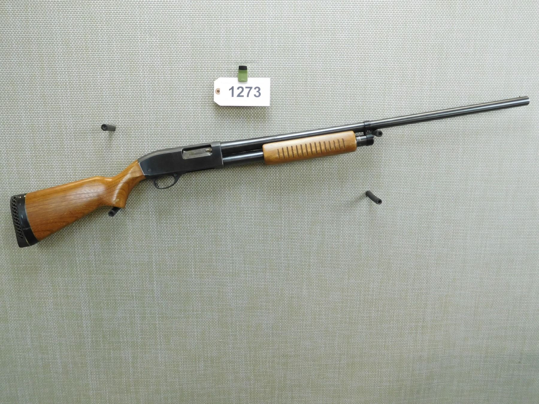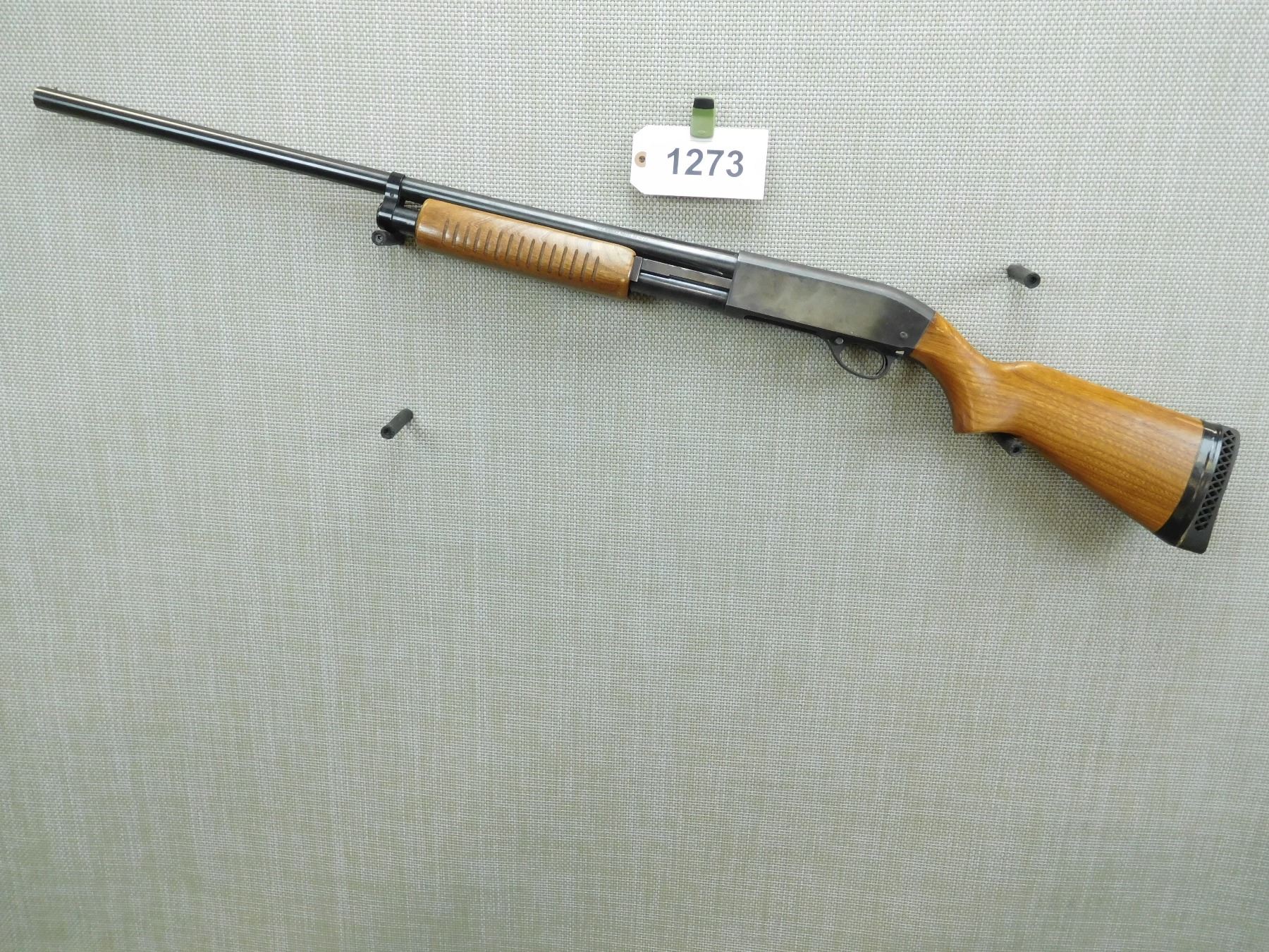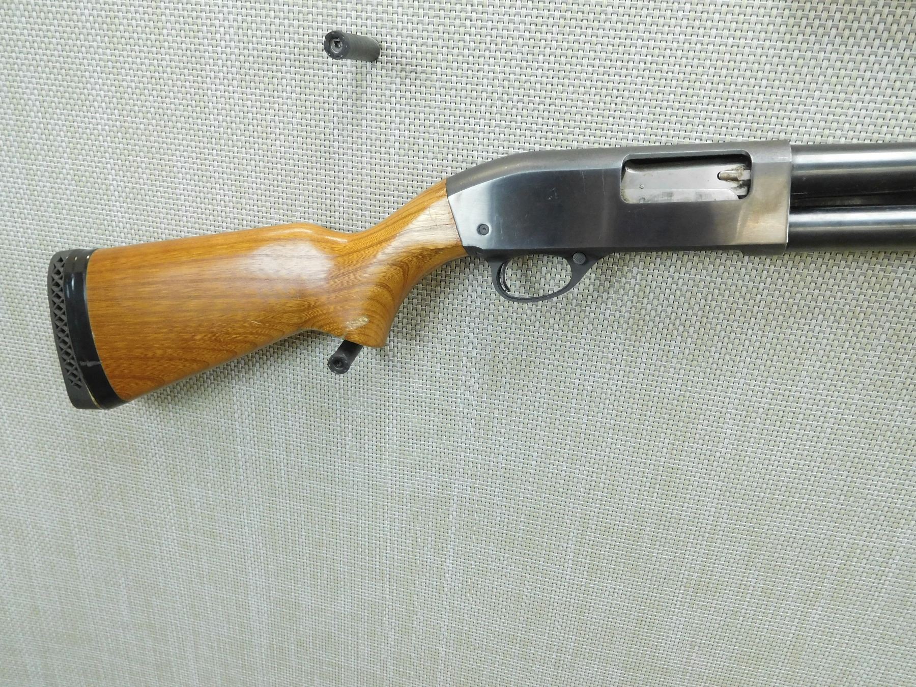 FIXED FULL CHOKE, BEAD FRONT SIGHT, BUTT PLATE HAS ELECTRICAL TAPE HOLDING IT ON, VENTED RUBBER RECOIL PAD , SERIAL # N/A , ACTION: PUMP ACTION SHOTGUN , BARREL LENGTH: 28" , CONDITION: 5/10 , STOCK # 7629 , CLASS: CANADIAN NON RESTRICTED CLASS