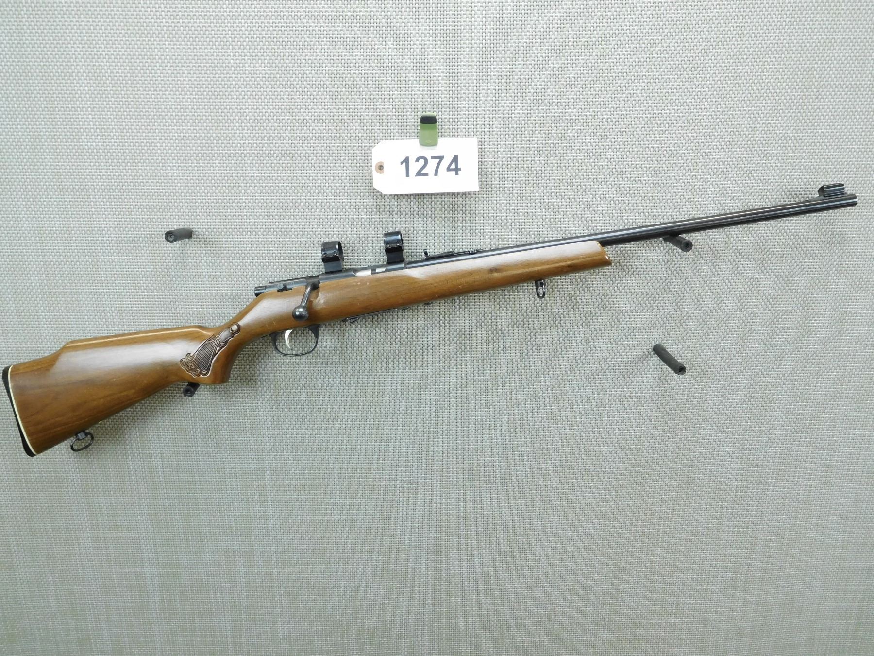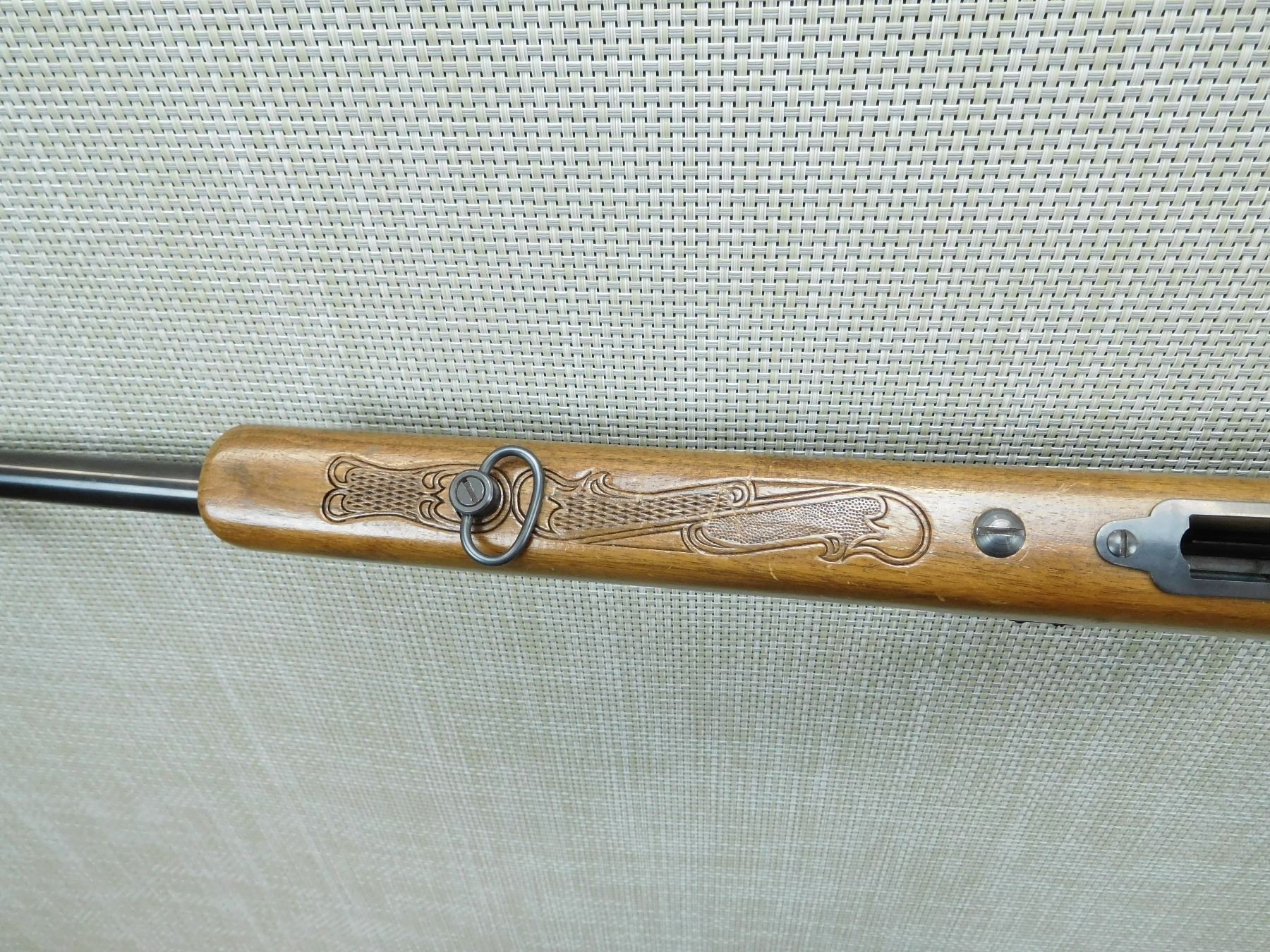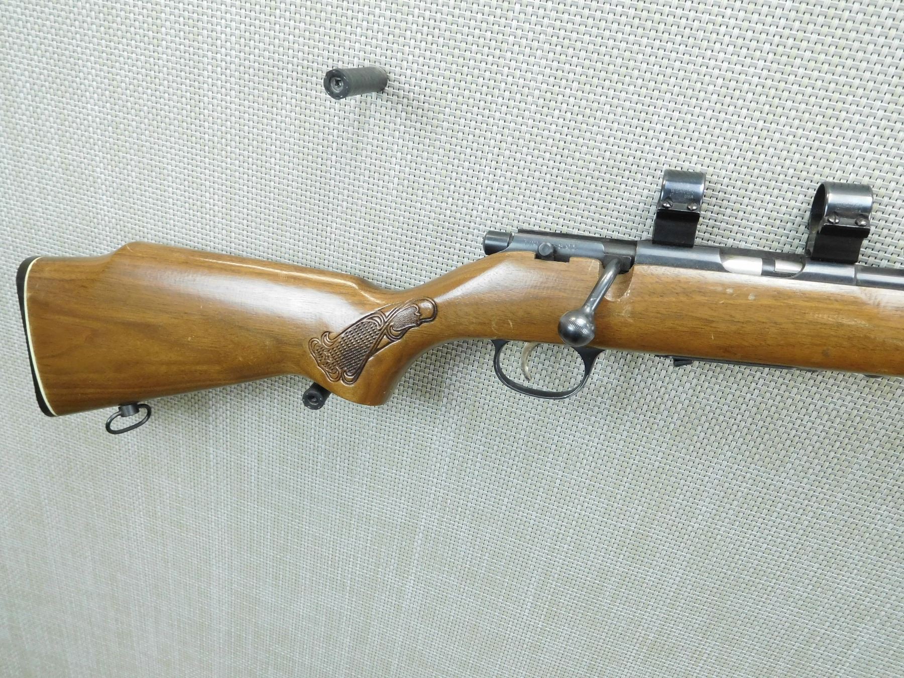 DOES NOT COME WITH MAGAZINE, BORE IS GOOD, HOODED FRONT SIGHT AND ADJUSTABLE REAR SIGHT, COMES WITH SCOPE RINGS, PRESSED CHECKERED MONTE CARLO STOCK WITH SLING SWIVELS, PLASTIC BUTT PAD WITH WHITE LINE SPACER, SHOWS SOME HANDLING MARKS , SERIAL # 22756981 , ACTION: BOLT ACTION RIFLE , BARREL LENGTH: 22" , CONDITION: 6/10 , STOCK # 7630 , CLASS: CANADIAN NON RESTRICTED CLASS