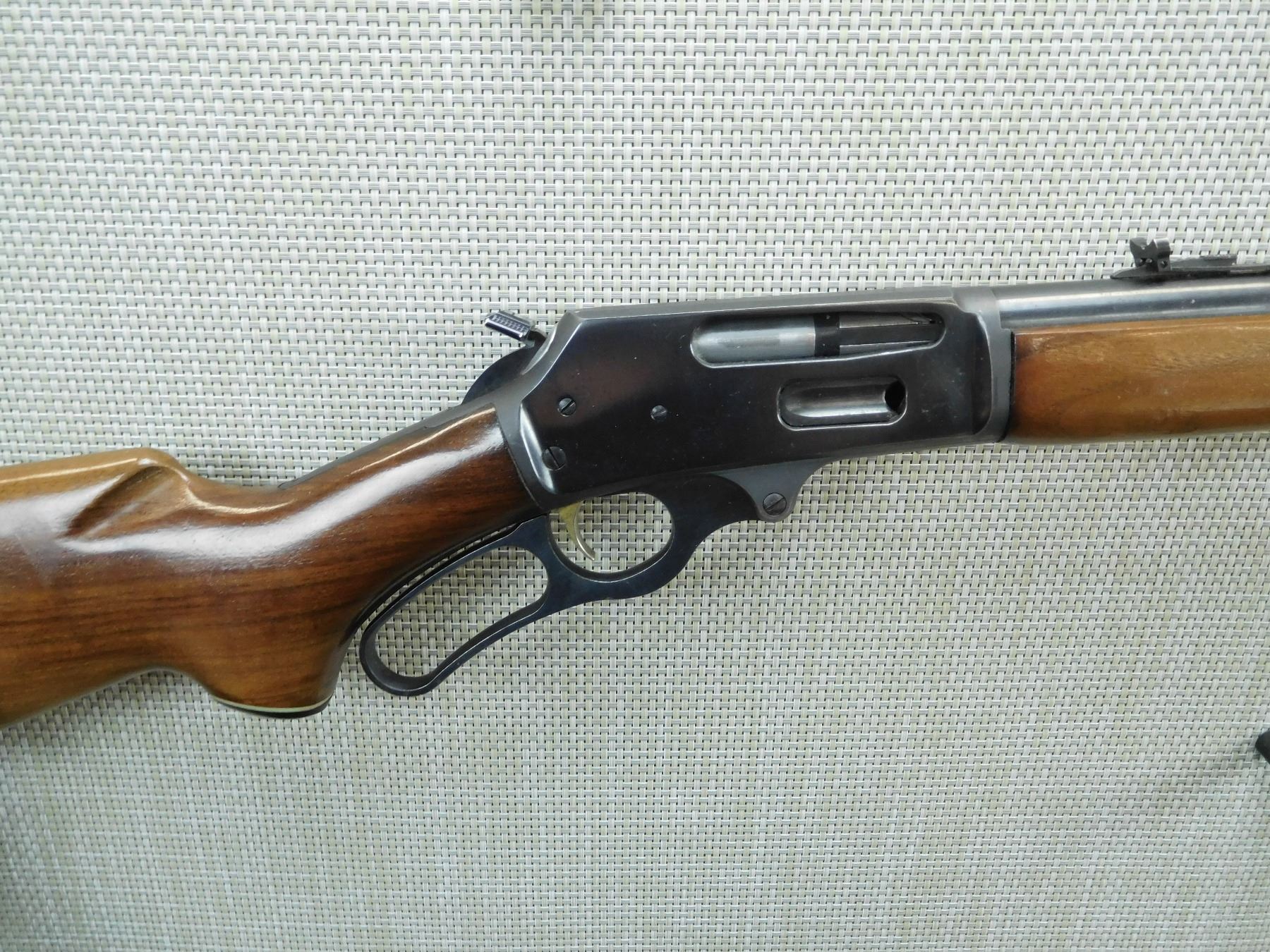 BORE IS GOOD, RAISED DOVETAIL FRONT SIGHT AND ADJUSTABLE REAR SIGHT, SLING SWIVEL STUDS, CAPPED PISTOL GRIP STOCK WITH WHITE LINE SPACER, SHOWS SOME HANDLING MARKS , SERIAL # 25114511 , ACTION: LEVER ACTION RIFLE , BARREL LENGTH: 20" , CONDITION: 7/10 , STOCK # 7632 , CLASS: CANADIAN NON RESTRICTED CLASS
