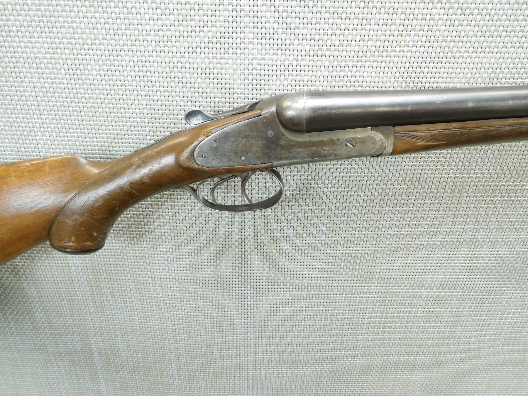 BORES ARE DARK, FIXED FULL AND MODIFIED, SHOWS SOME HANDLING MARKS, STEEL BUTT PLATE , SERIAL # 2493 , ACTION: SIDE BY SIDE BREAK ACTION SHOTGUN , BARREL LENGTH: 30" , CONDITION: 5/10 , STOCK # 7639 , CLASS: CANADIAN NON RESTRICTED CLASS