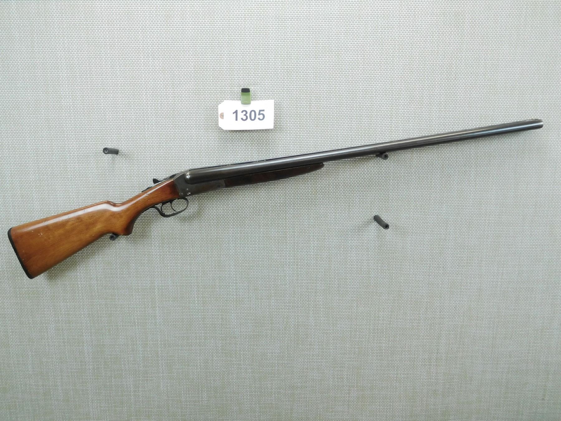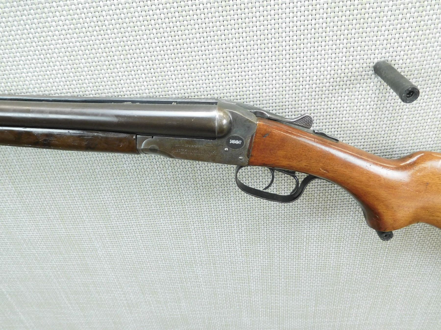 MANUFACTURED BY J STEVENS ARMS, CHOKES ARE FIXED FULL, BORES ARE VERY GOOD, SYNTHETIC FOREND AND WOOD BUTT STOCK MISMATCHED, SHOWS EXTENSIVE HANDLING MARKS, BEAD FRONT SIGHT, BARREL RIB MAY HAVE BEEN REPAIRED , SERIAL # N/A , ACTION: BREAK ACTION SIDE BY SIDE , BARREL LENGTH: 30" , CONDITION: 4/10 , STOCK # 7661 , CLASS: CANADIAN NON RESTRICTED CLASS