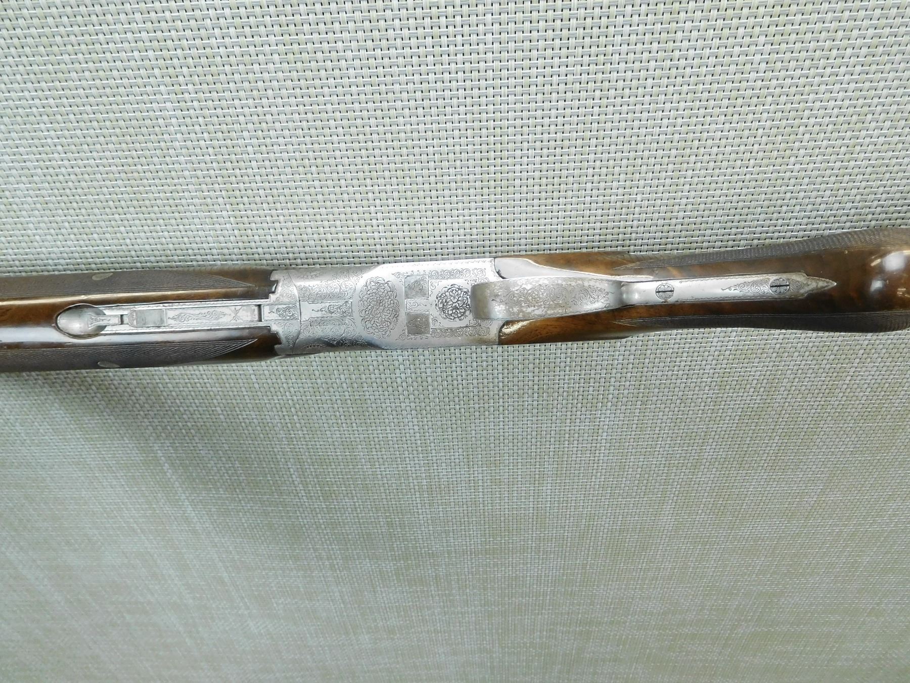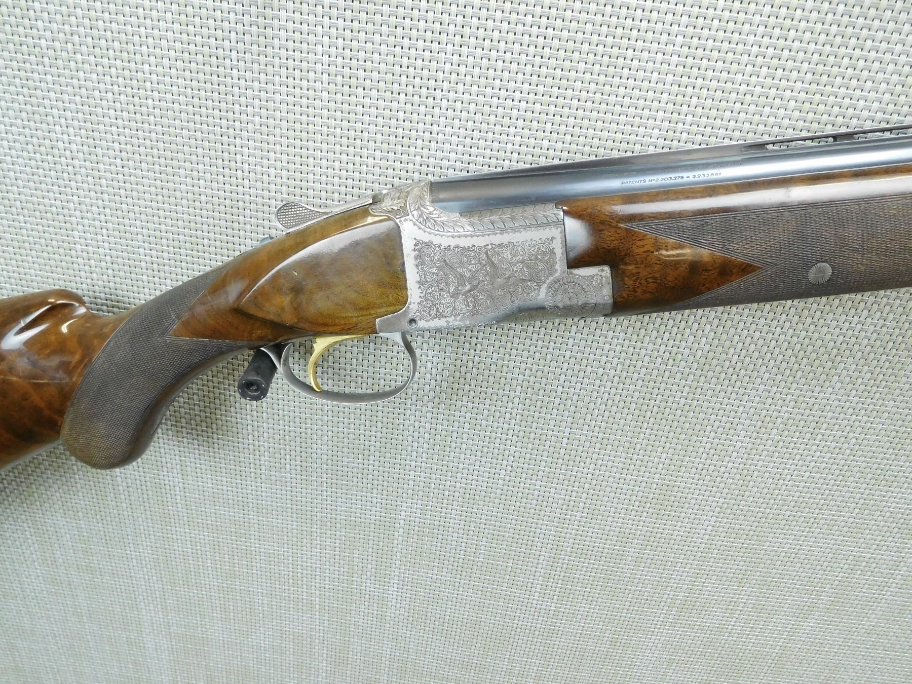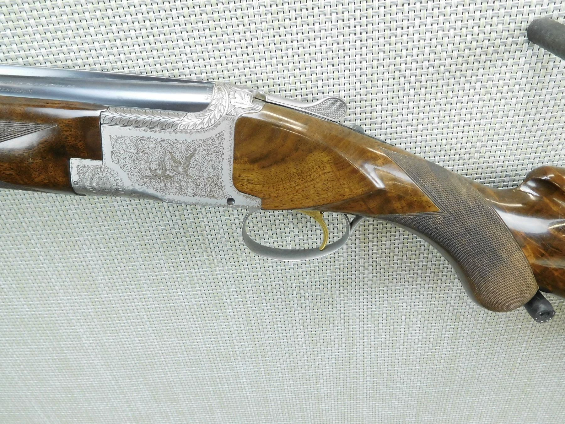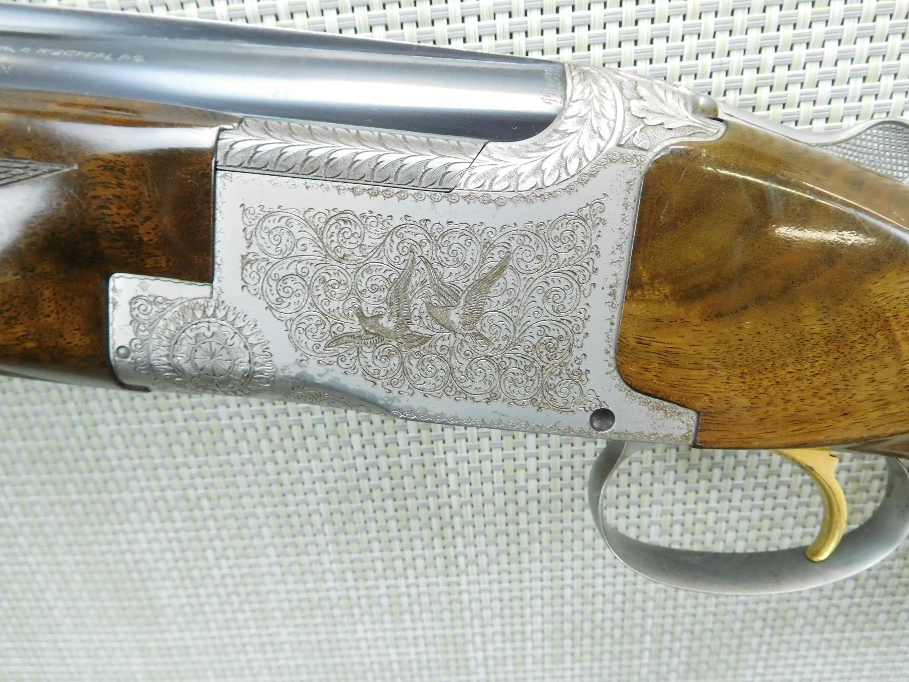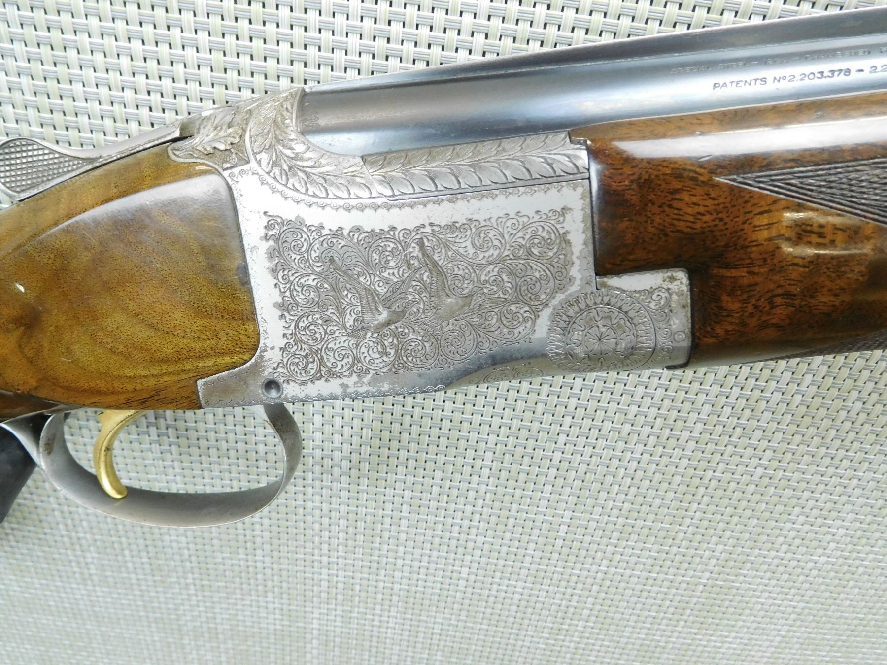 HAS EJECTORS, FIXED FULL AND MODIFIED CHOKE BARRELS, BORES ARE EXCELLENT, BEAD FRONT SIGHT ON VENTED RIB BARREL, CHECKERED FOREND AND SEMI PISTOL GRIP BUTT STOCK, FANCY WOOD, VENTED RUBBER RECOIL PAD, RICHLEY ENGRAVED RECEIVER, RECEIVER SHOWS SOME HANDLING MARKS, SINGLE GOLD TRIGGER , SERIAL # 50280S6 , ACTION: OVER UNDER BREAK ACTION SHOTGUN , BARREL LENGTH: 30" , CONDITION: 7/10 , STOCK # 7662 , CLASS: CANADIAN NON RESTRICTED CLASS