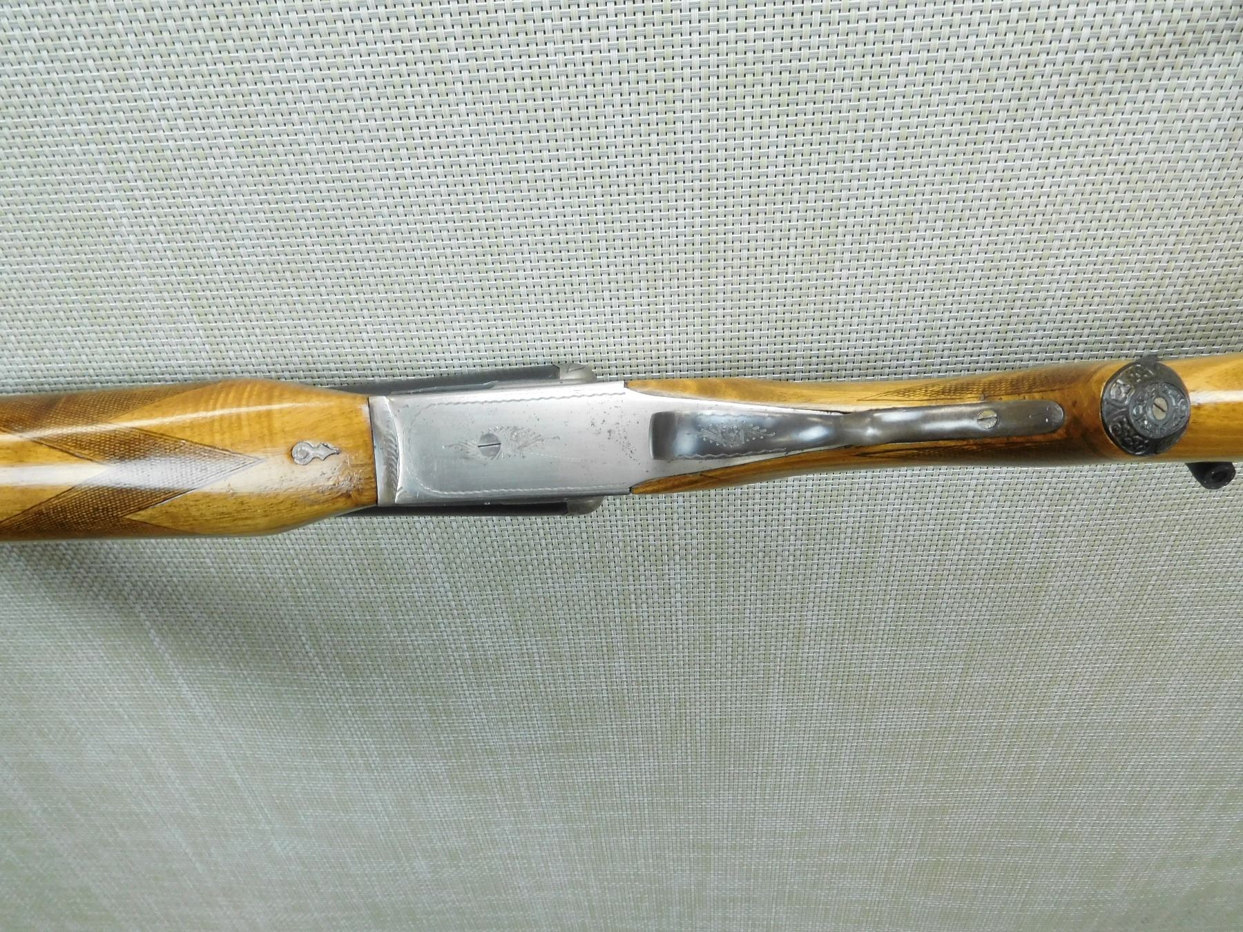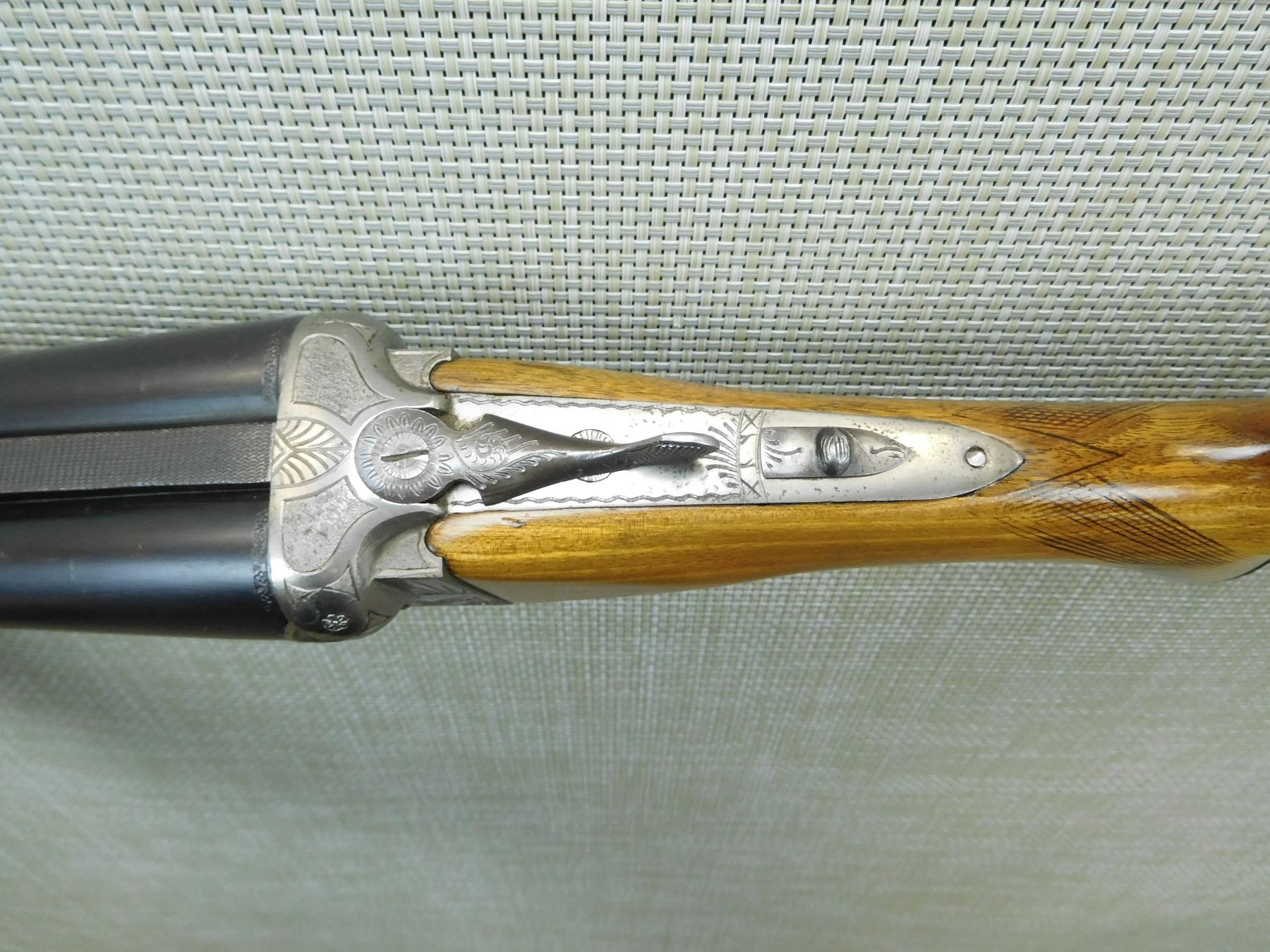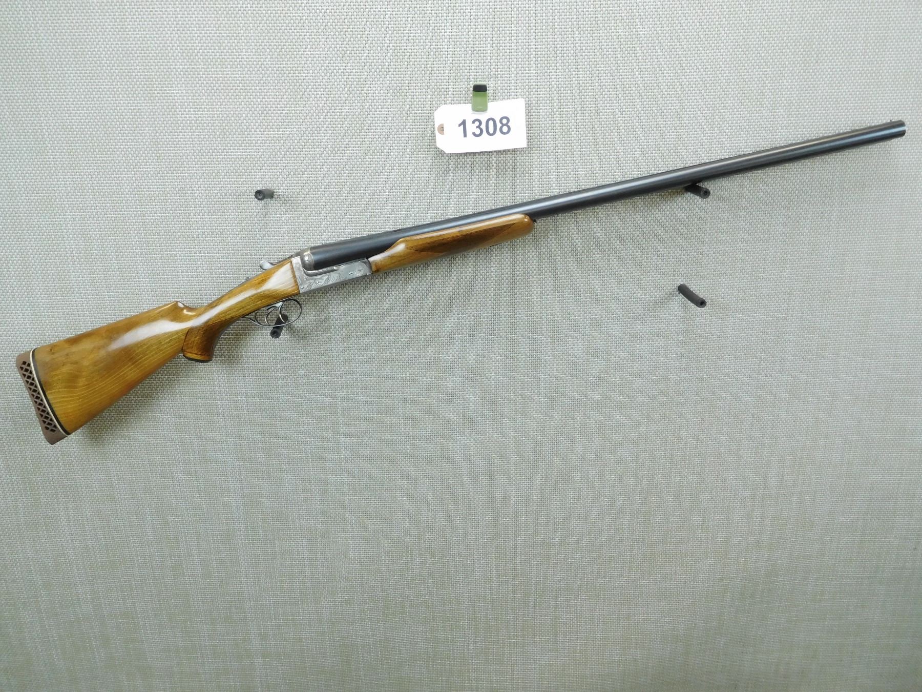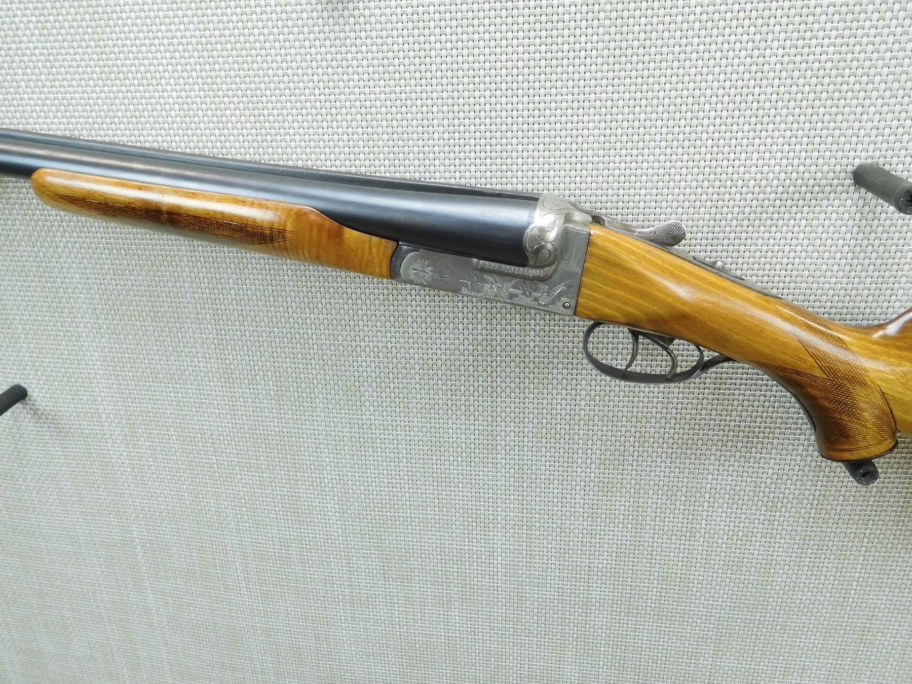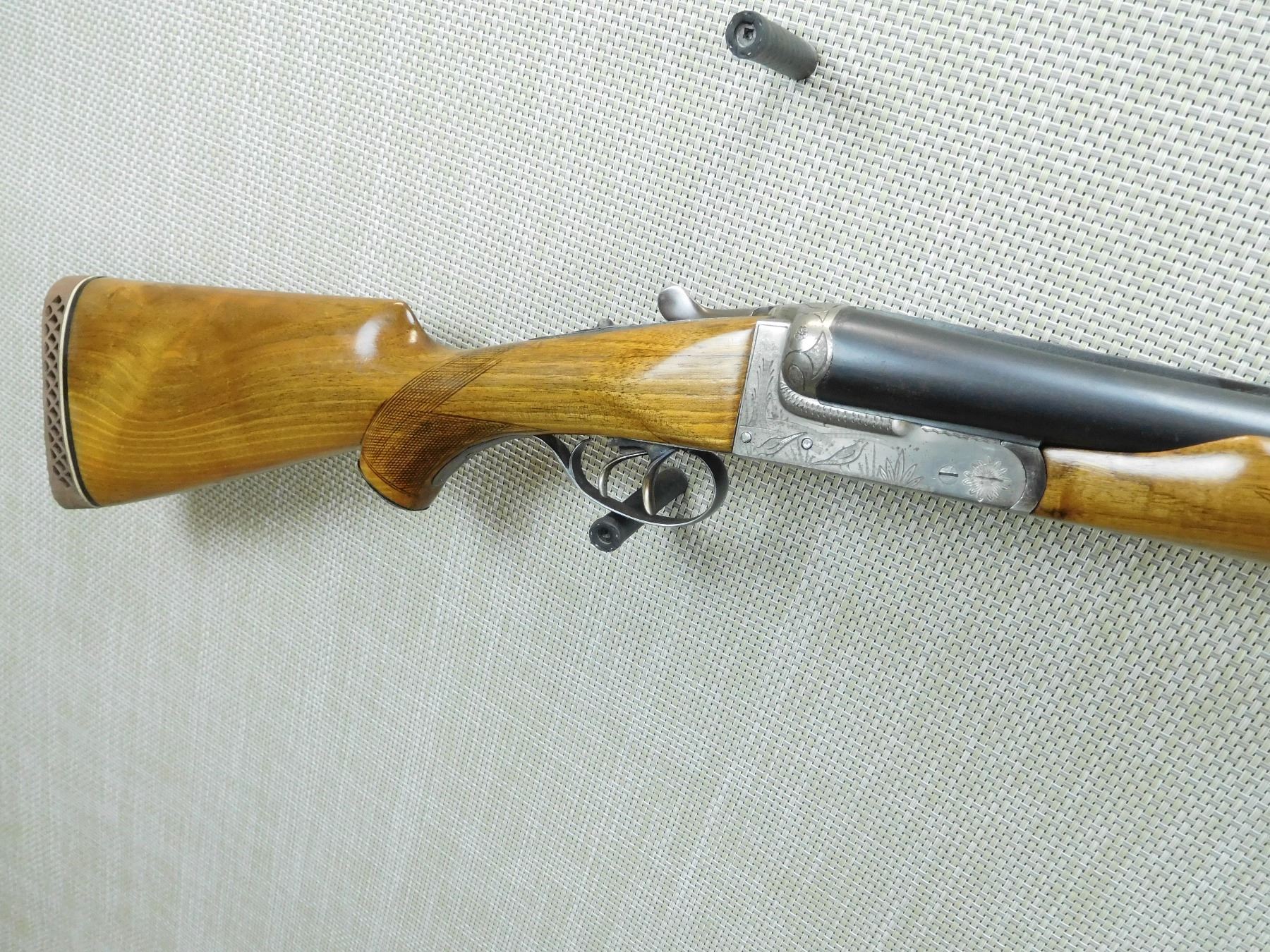 IMPORTED BY RUKO, HAS FIXED MODIFIED AND FULL CHOKE, BORES ARE VERY GOOD, BEAD FRONT SIGHT, CHECKERED BEAVERTAIL FOREND, CAPPED PISTOL GRIP BUTT STOCK WITH VENTED RUBBER RECOIL PAD, SHOWS SOME HANDLING MARKS, ENGRAVED GAME SCENE ON RECEIVER FRAMER, DOUBLE TRIGGERS , SERIAL # 31267 , ACTION: SIDE BY SIDE BREAK ACTION SHOTGUN , BARREL LENGTH: 32" , CONDITION: 7/10 , STOCK # 7664 , CLASS: CANADIAN NON RESTRICTED CLASS